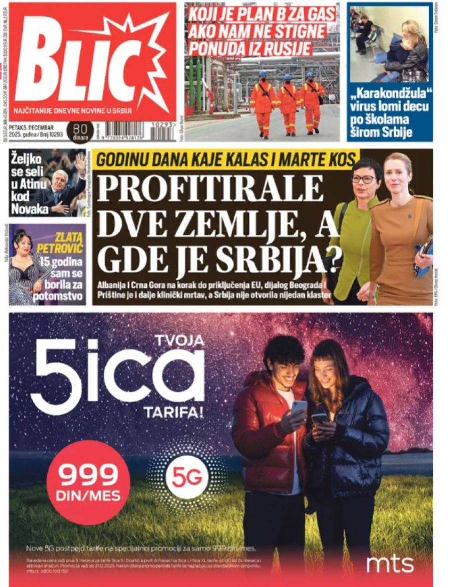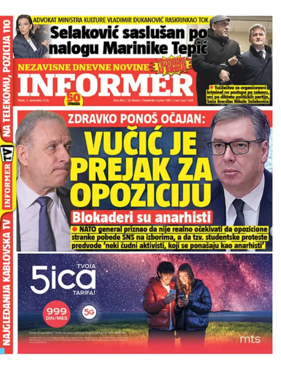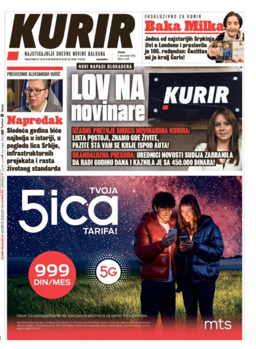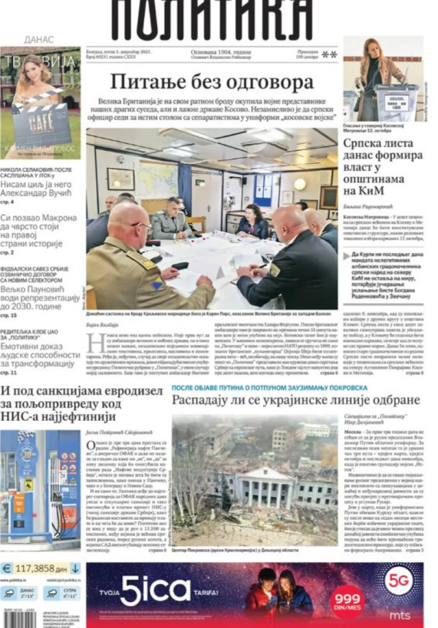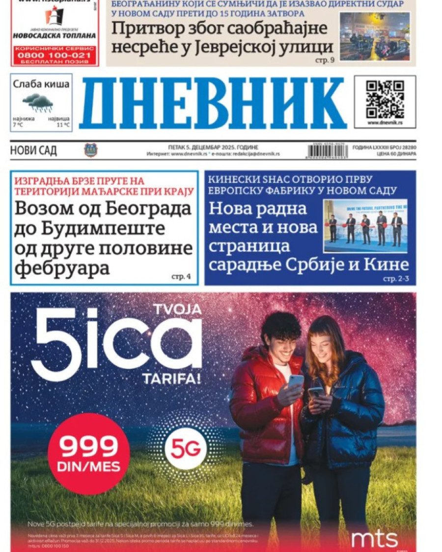 Naslovne strane dnevnih novina: Prelistavanje štampe za 5. decembar 2025. godine