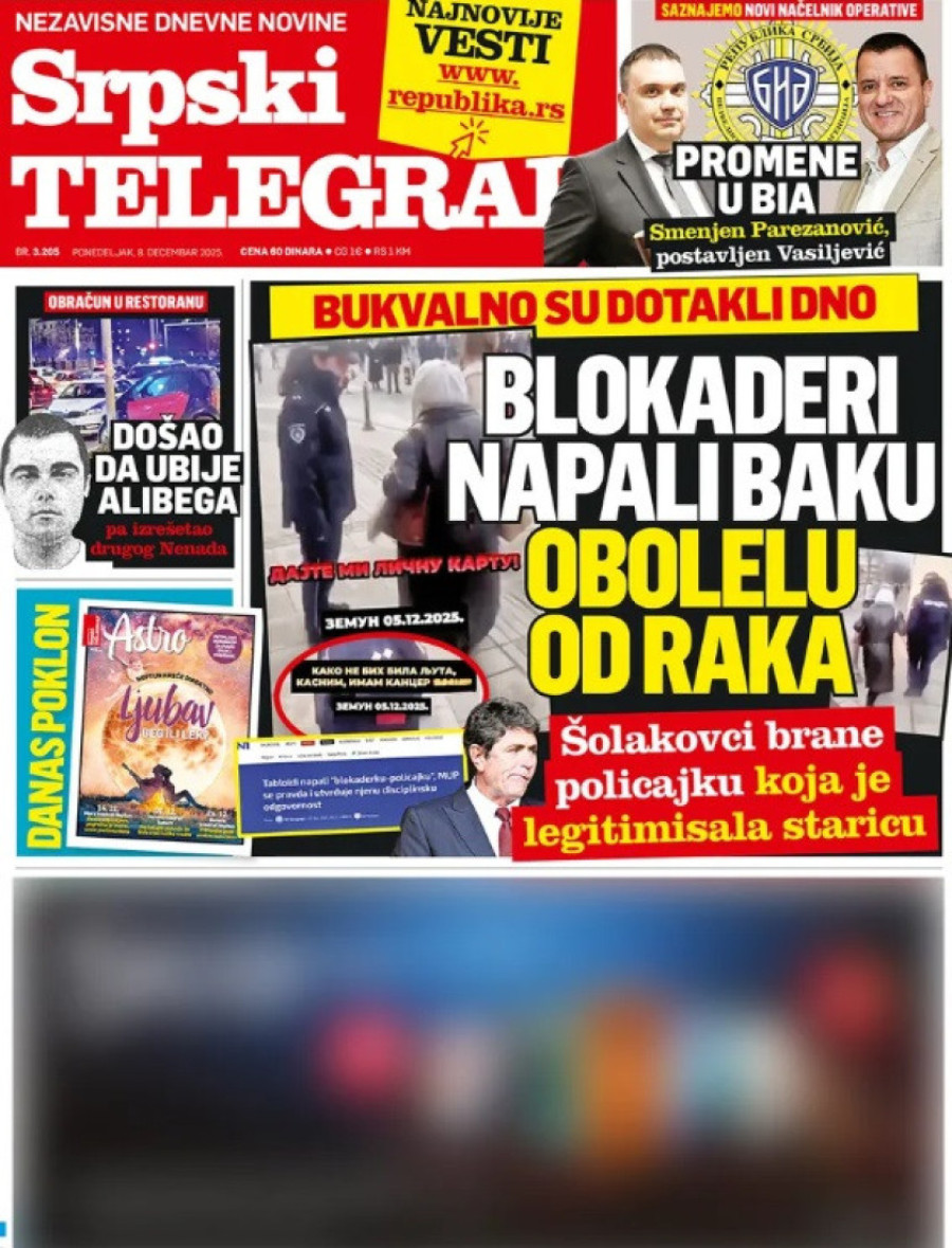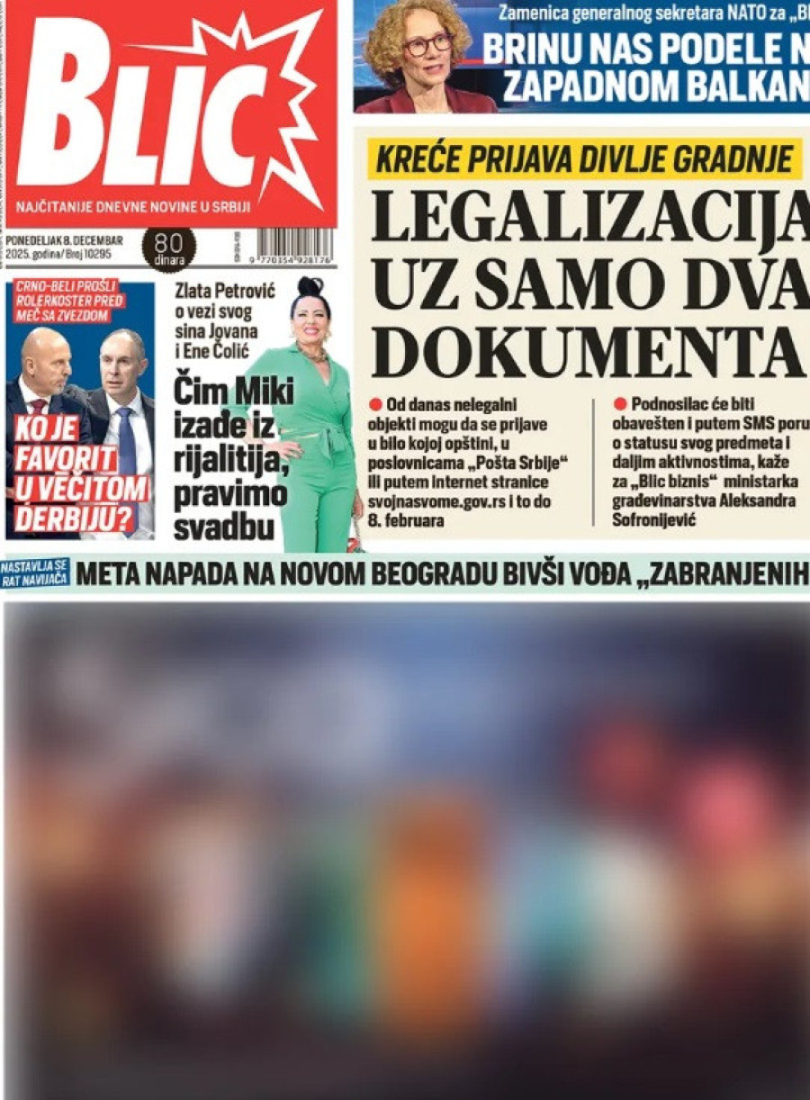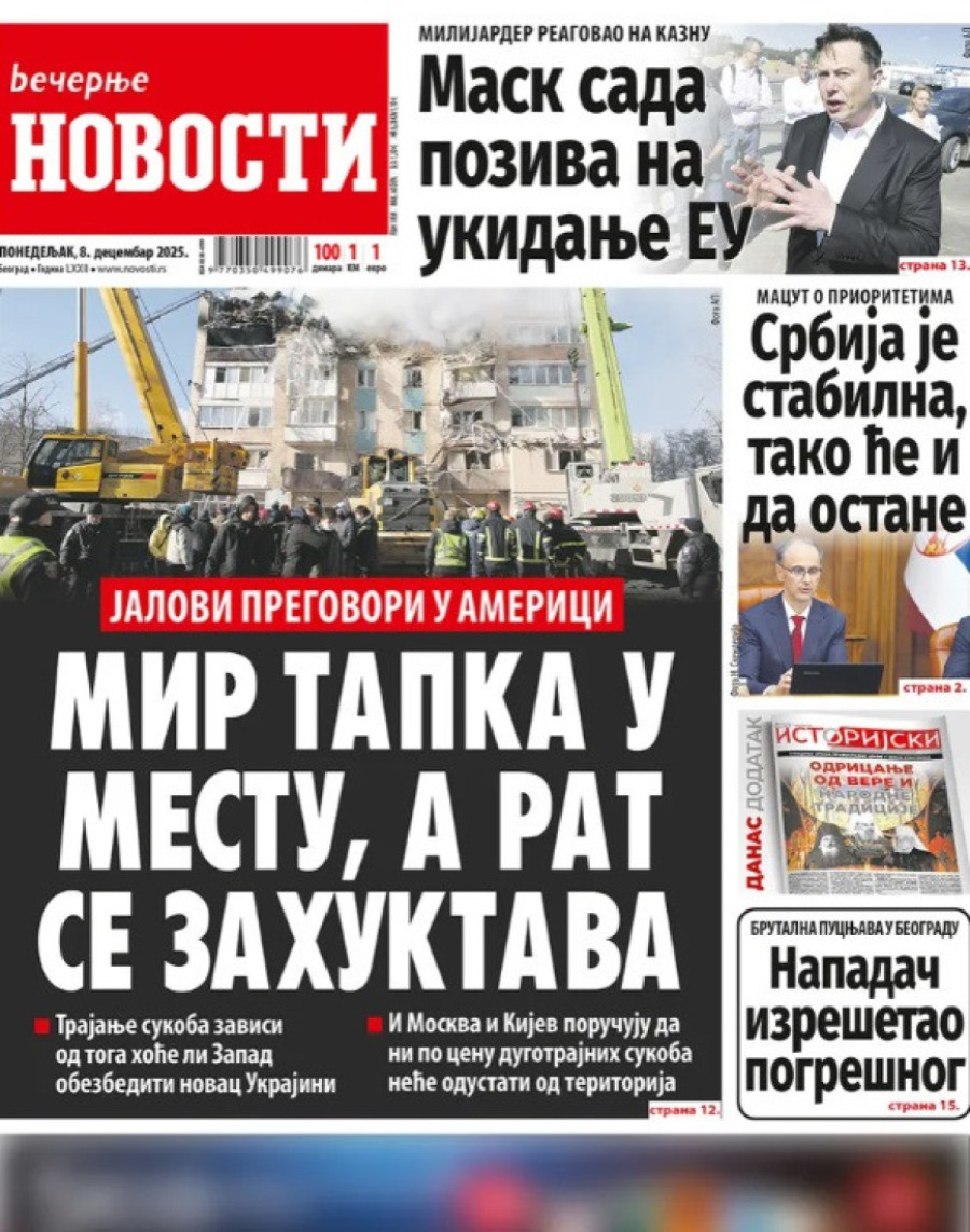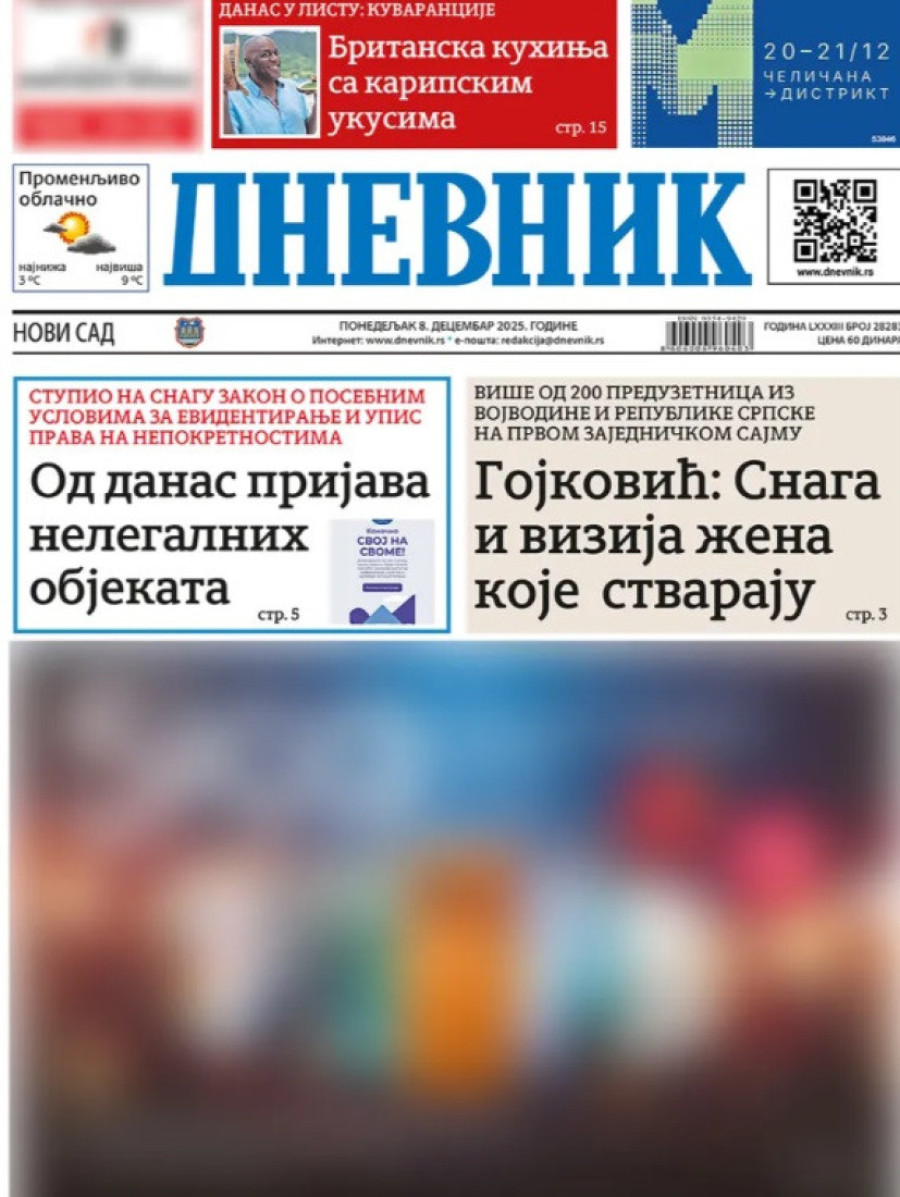 Naslovne strane dnevnih novina: Prelistavanje štampe za 8. decembar 2025. godine