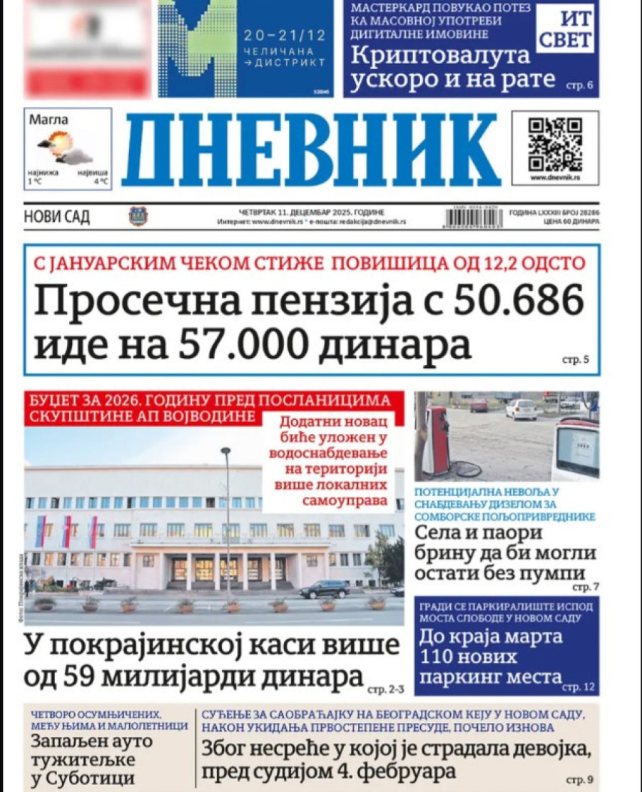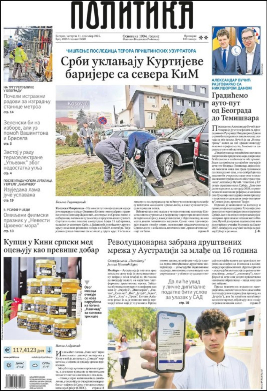 Naslovne strane dnevnih novina: Prelistavanje štampe za 11. decembar 2025. godine