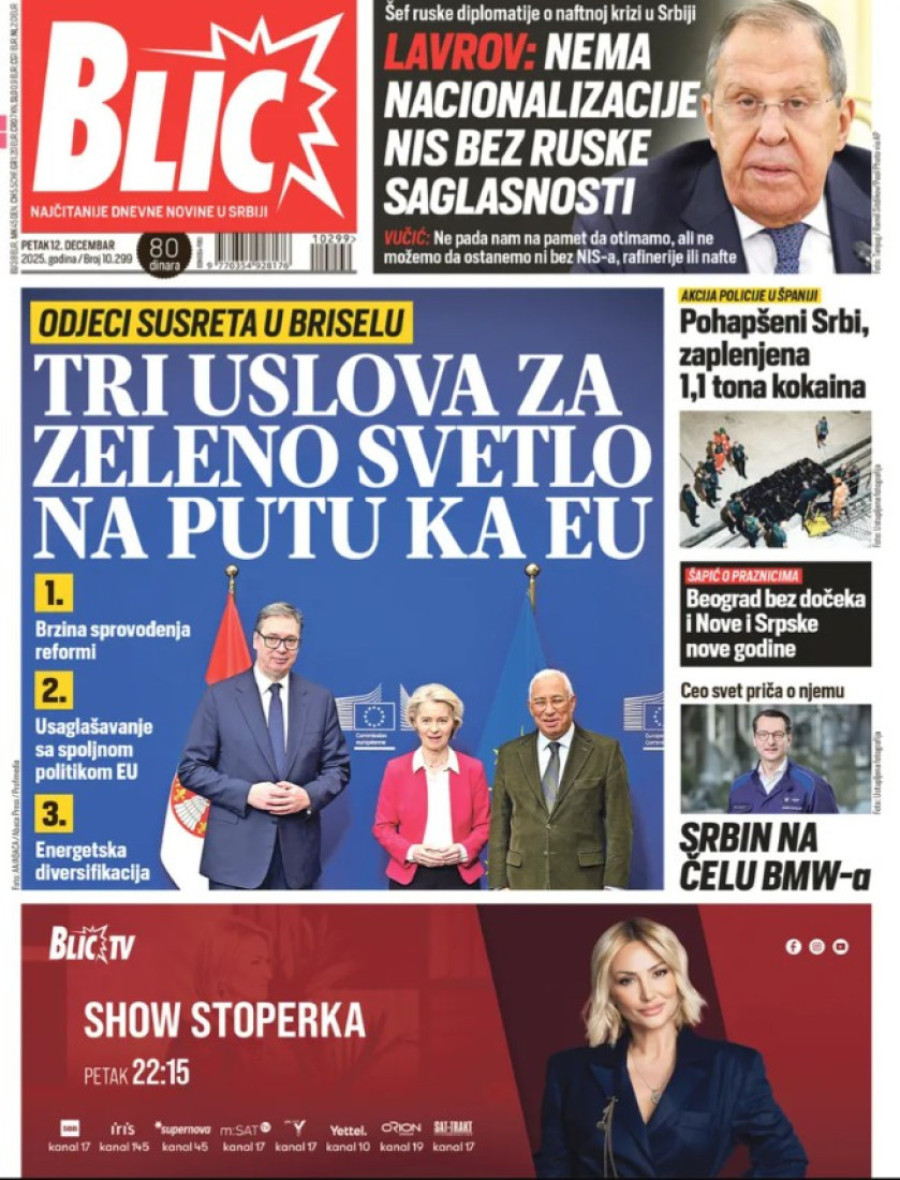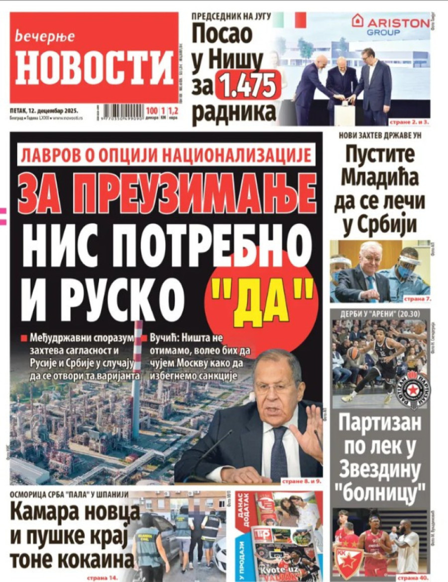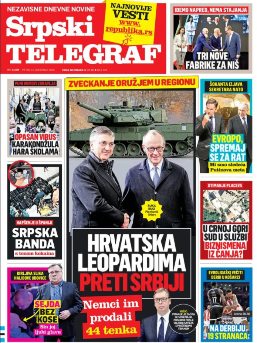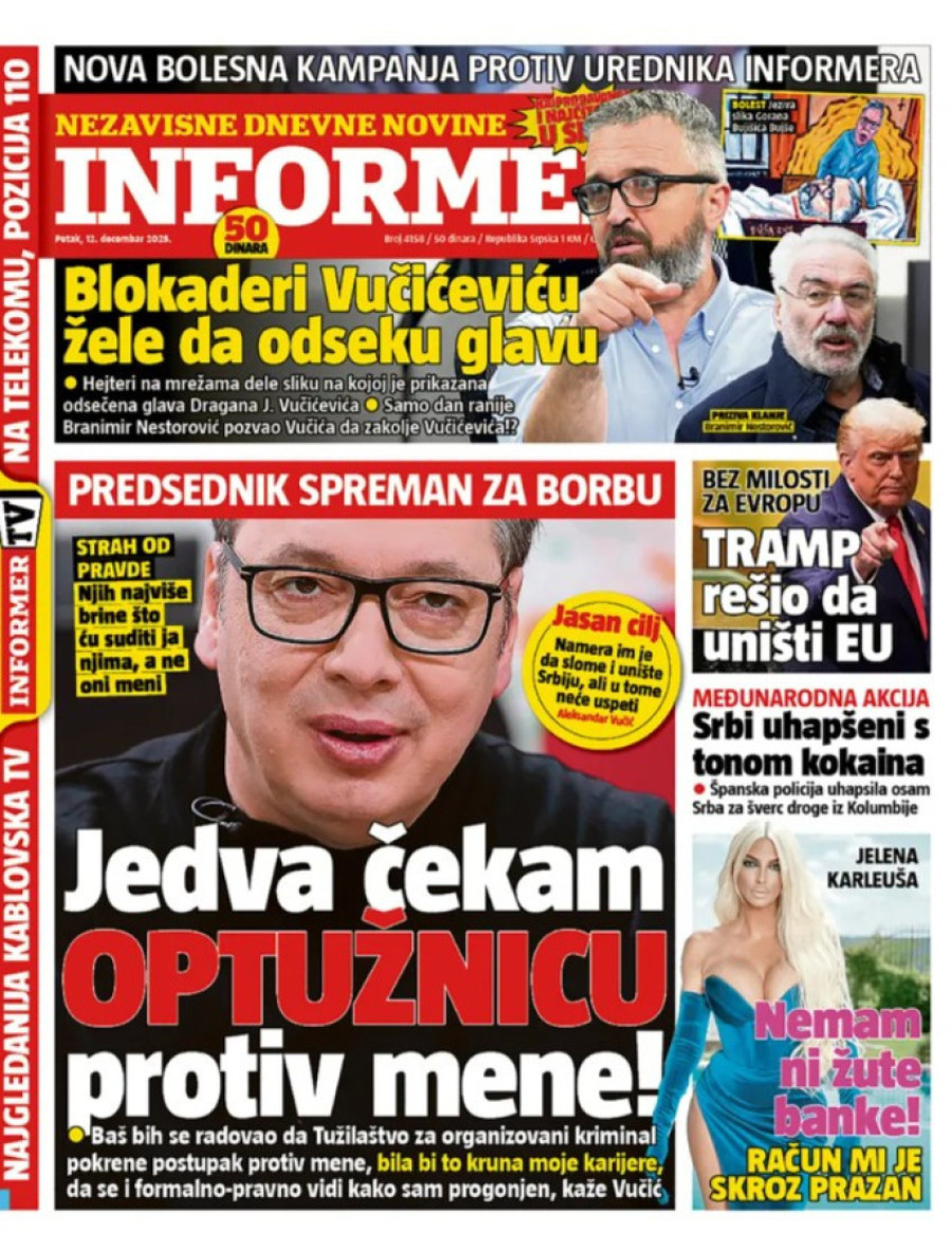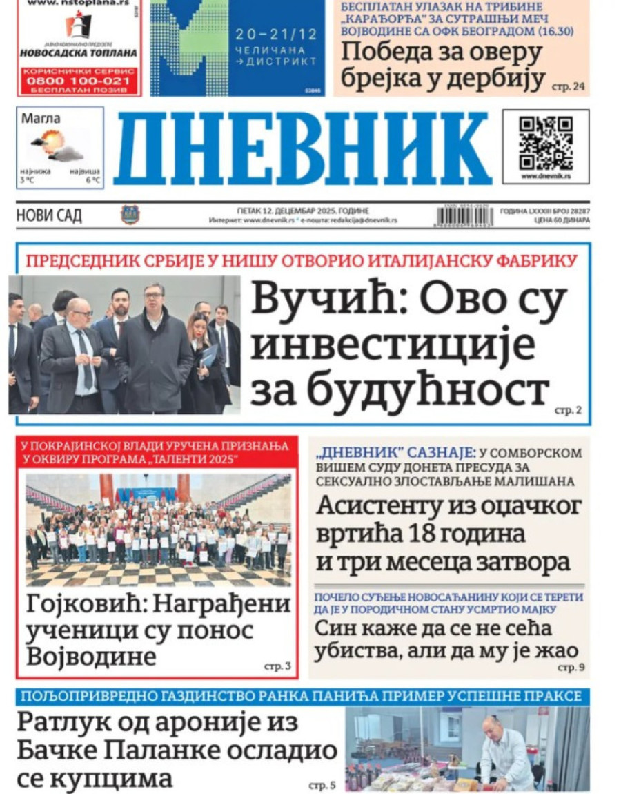 Naslovne strane dnevnih novina: Prelistavanje štampe za 12. decembar 2025. godine