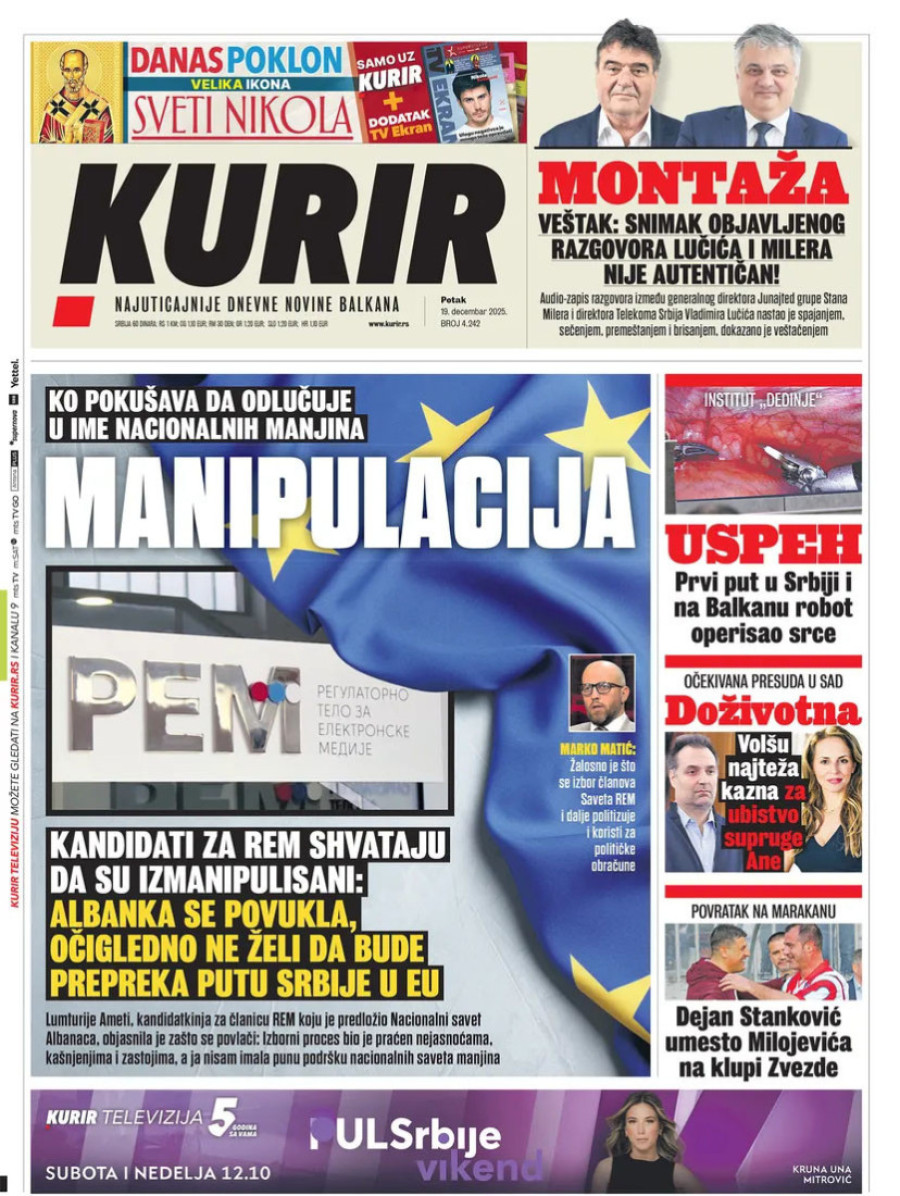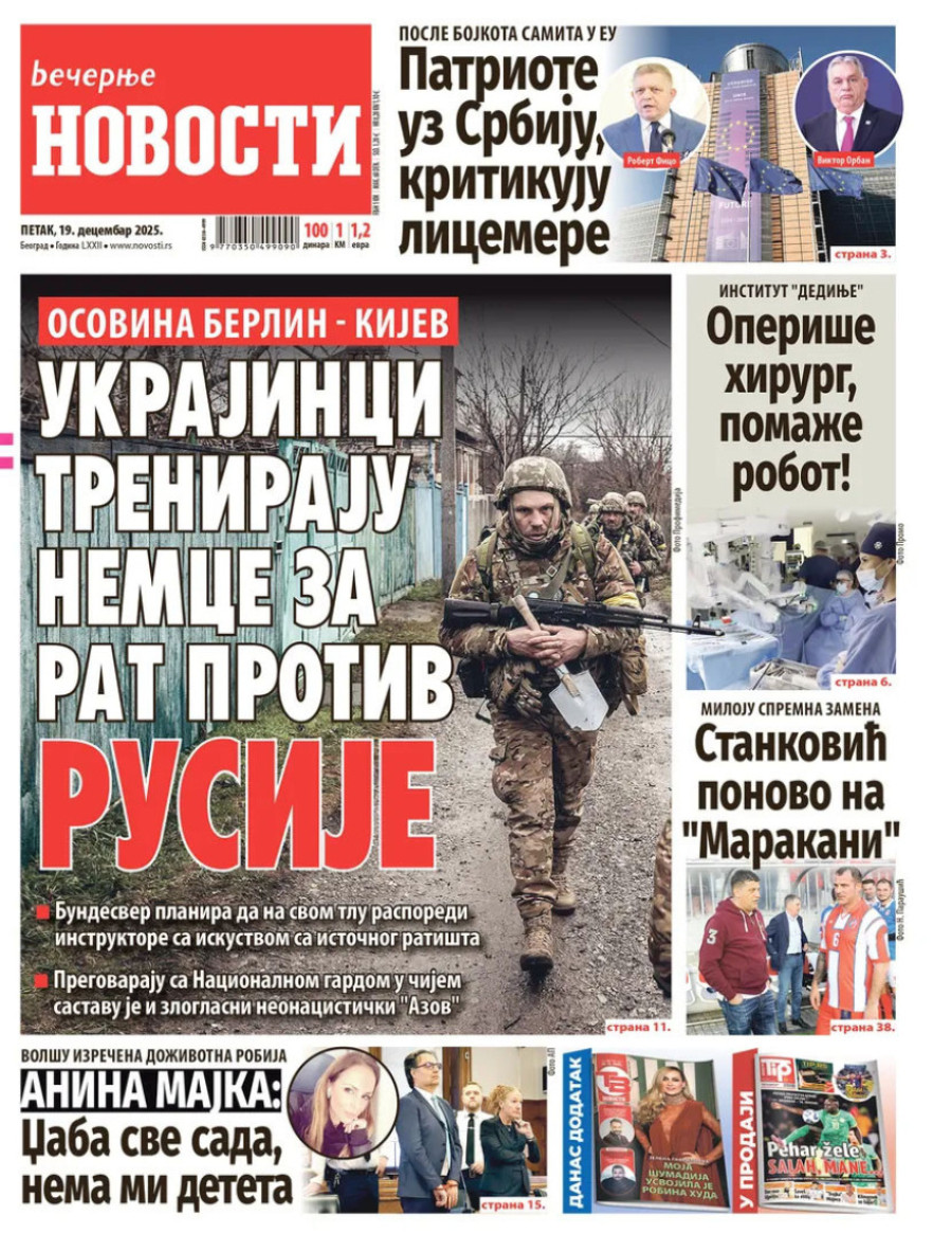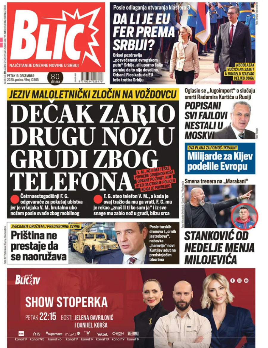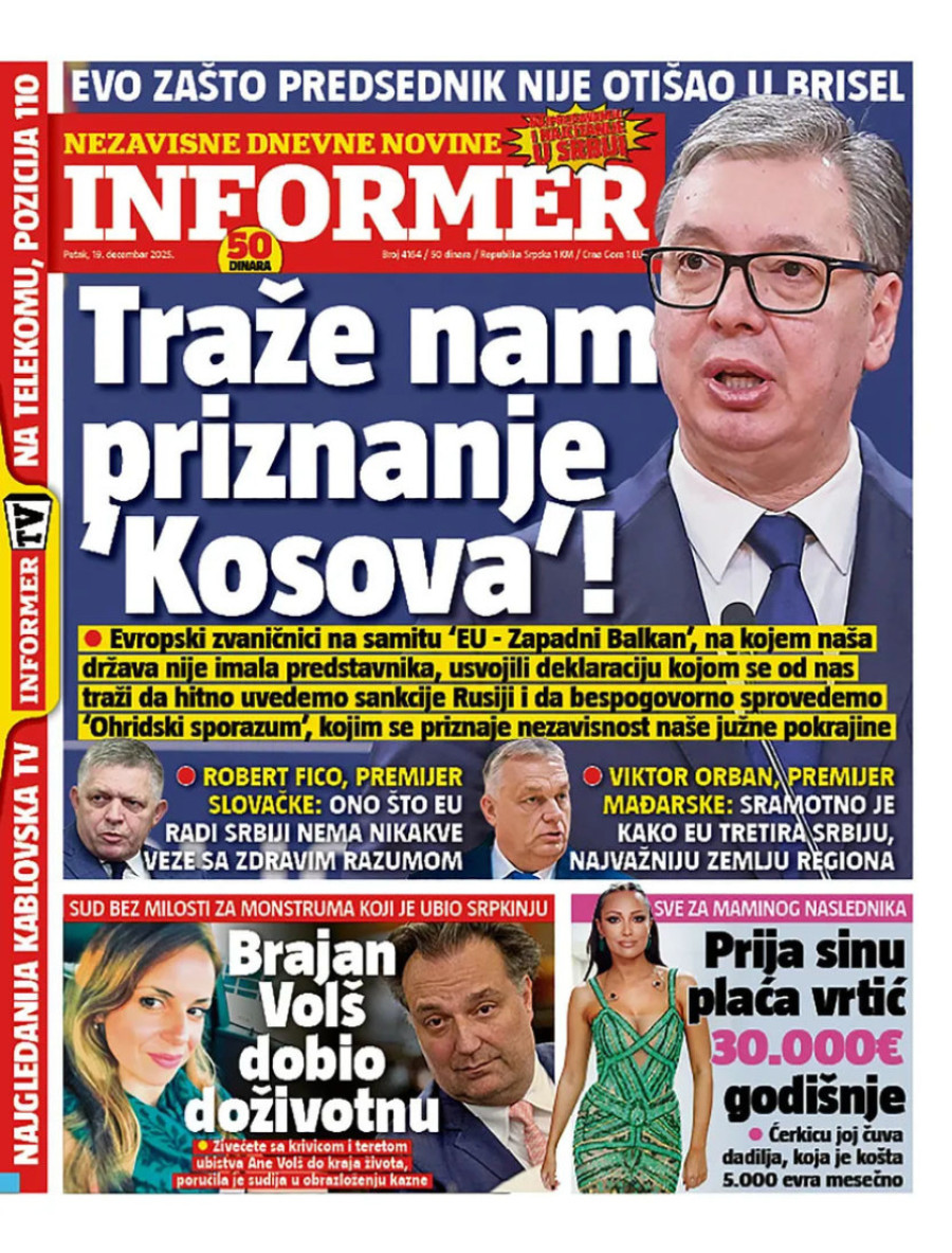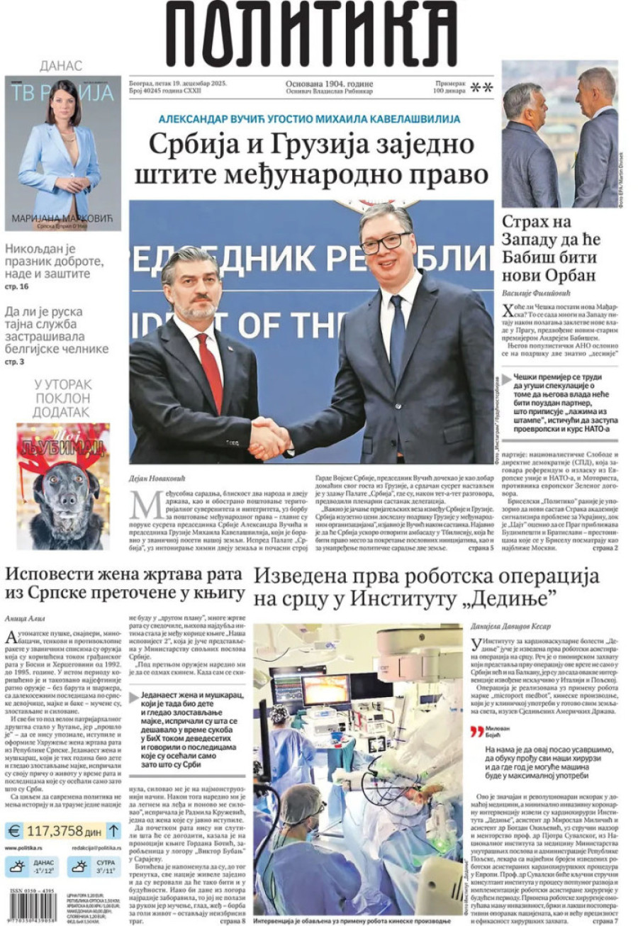 Naslovne strane dnevnih novina: Prelistavanje štampe za 19. decembar 2025. godine