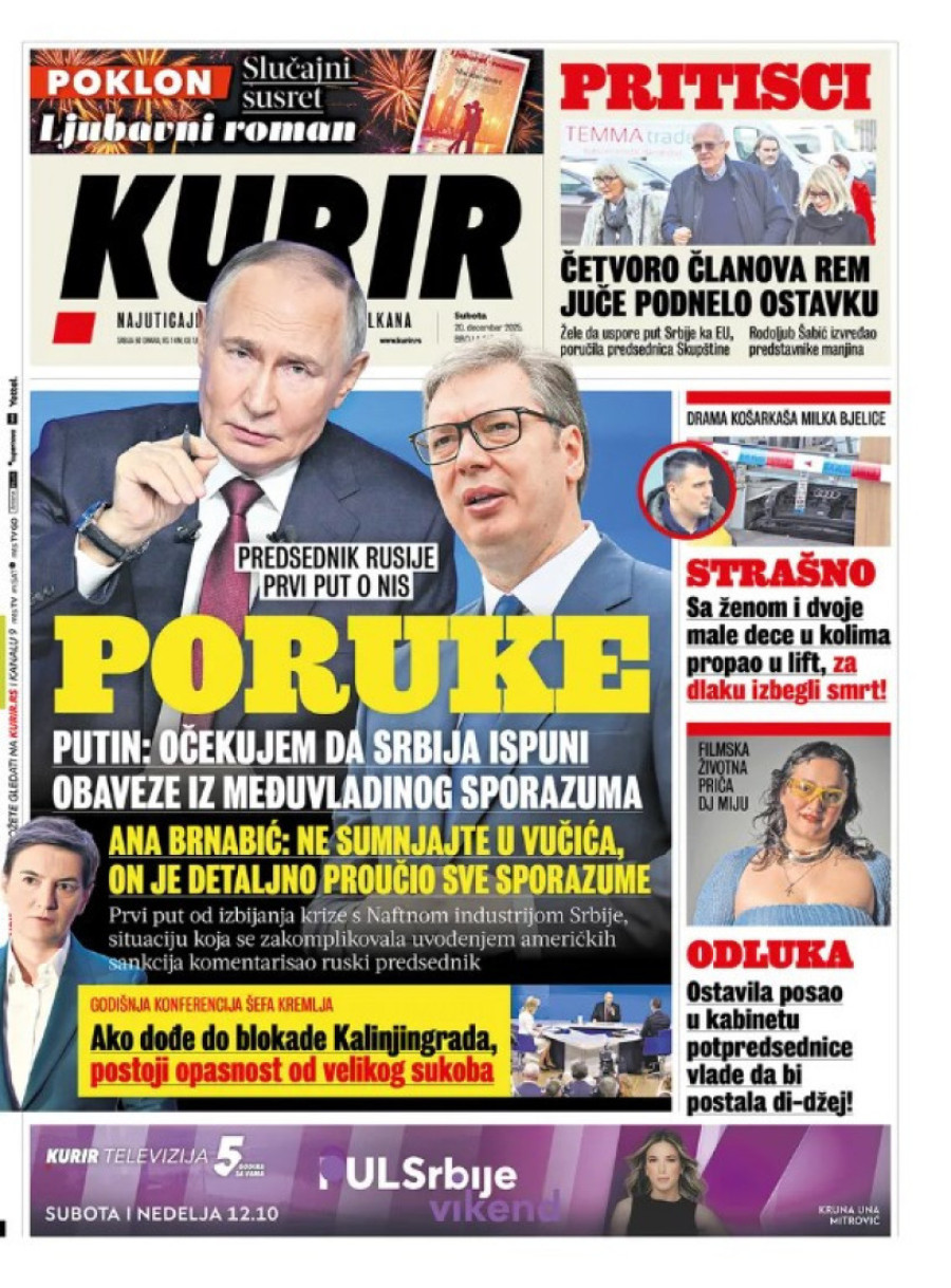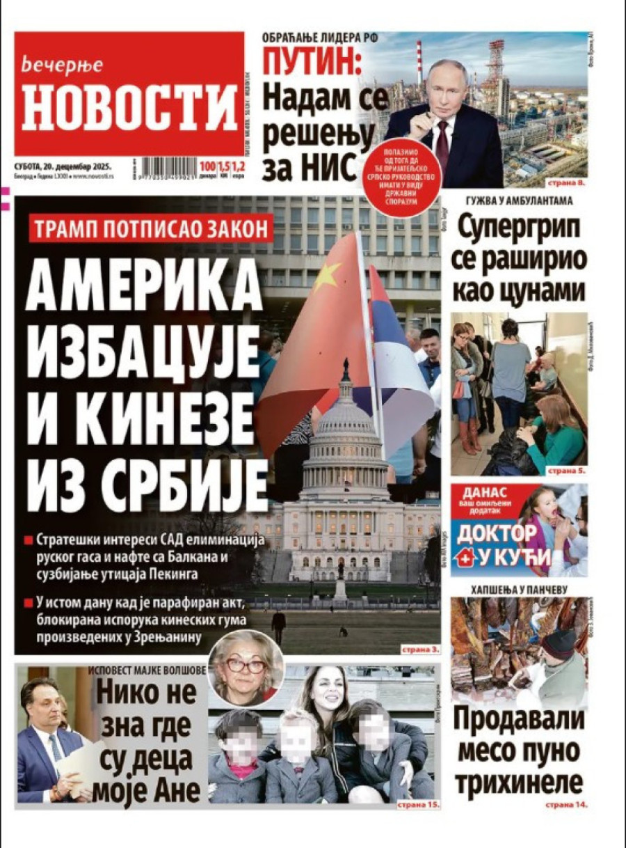 Naslovne strane dnevnih novina: Prelistavanje štampe za 20. decembar 2025. godine