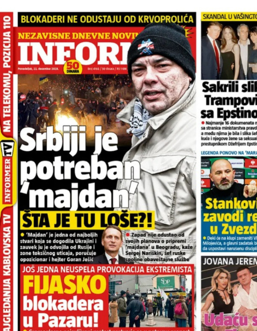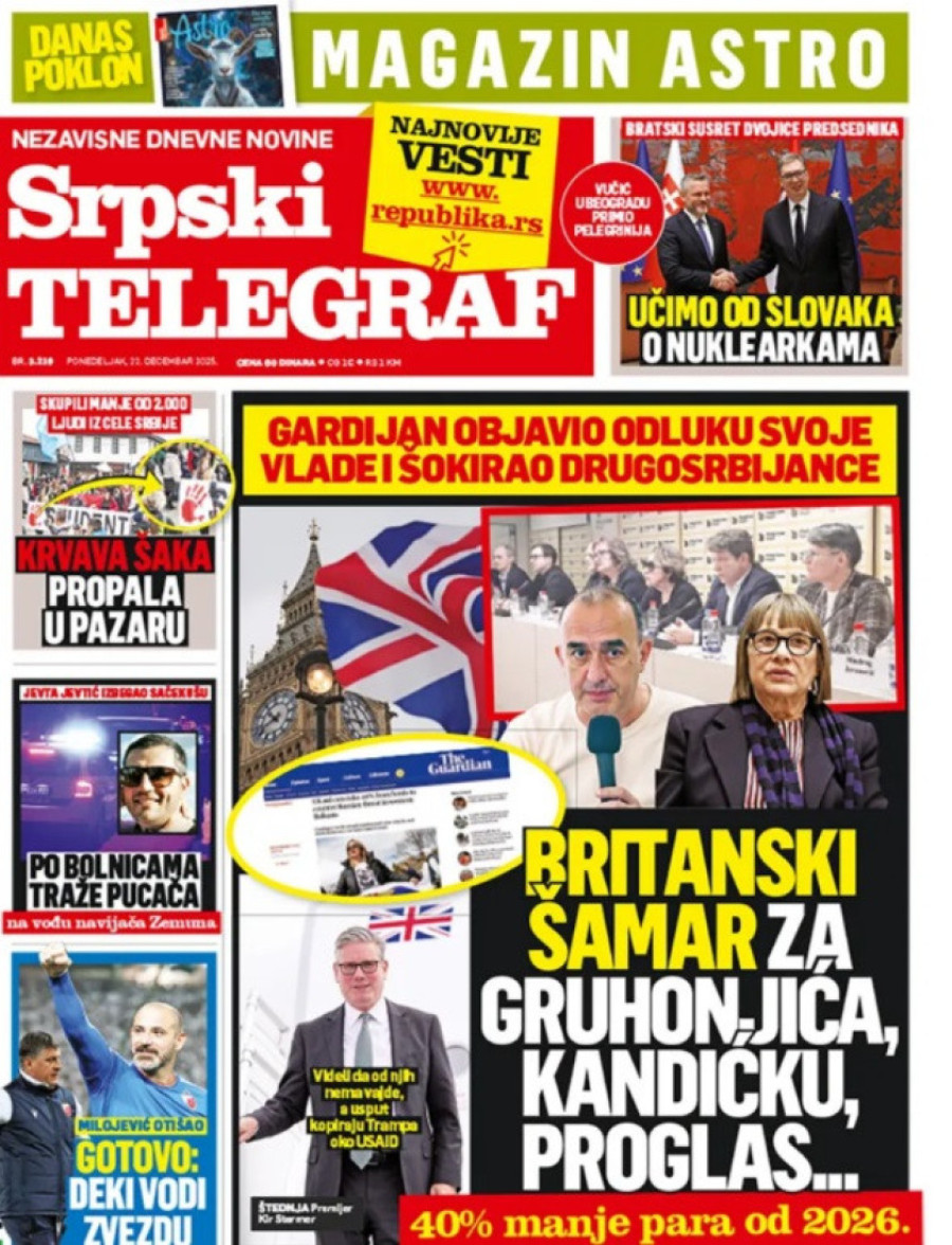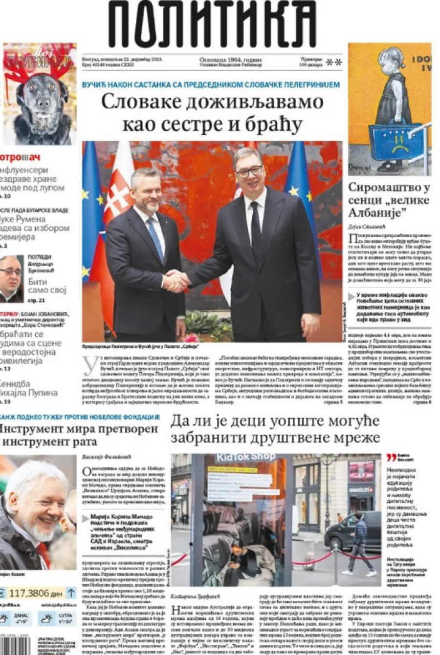 Naslovne strane dnevnih novina: Prelistavanje štampe za 22. decembar 2025. godine