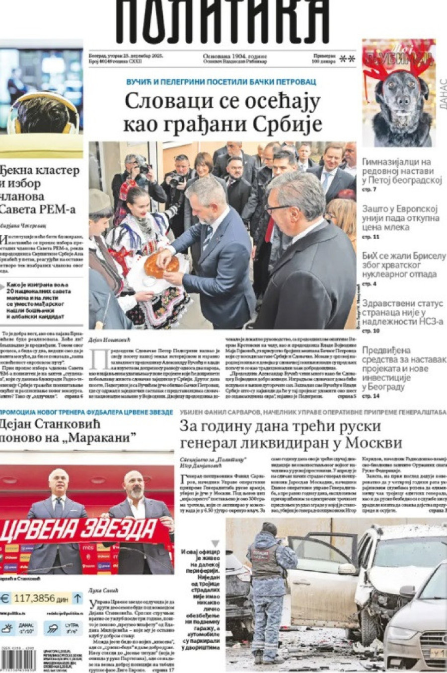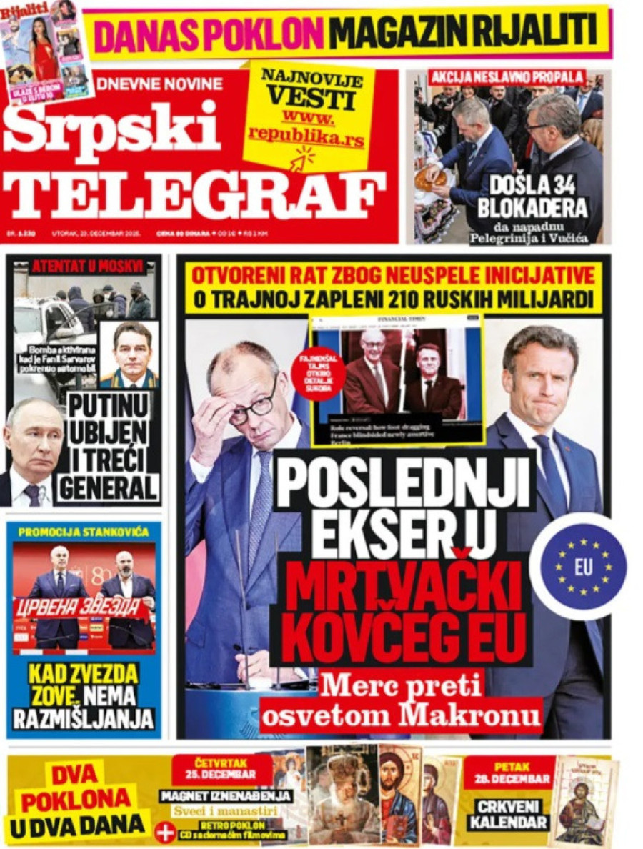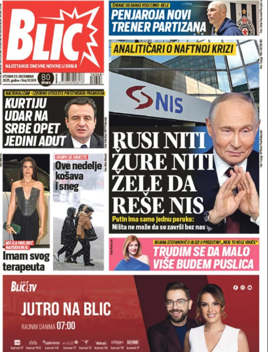 Naslovne strane dnevnih novina: Prelistavanje štampe za 23. decembar 2025. godine