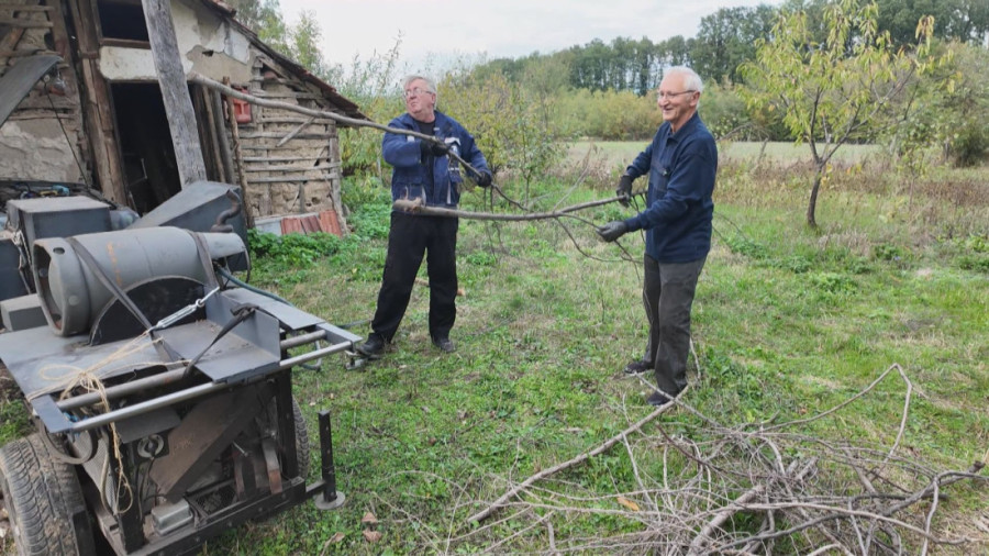 - Godinu dana moj prijatelj Vuk i ja radili smo na ovoj mašini. Napravljena je od pancirnog čelika i ima četiri pogona. Može da radi na benzin, na gas, na kardan, a pokrećemo je tako što je kačimo na pogonski točak Pasata starog 40 godina, koji radi na prerađeno ulje. Veoma je efikasna — svo granje u selu možemo da preradimo za jedan dan, kaže Milan.