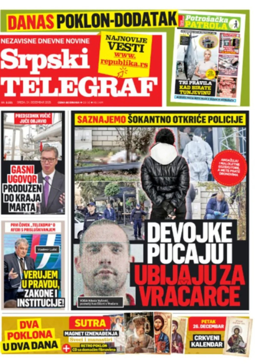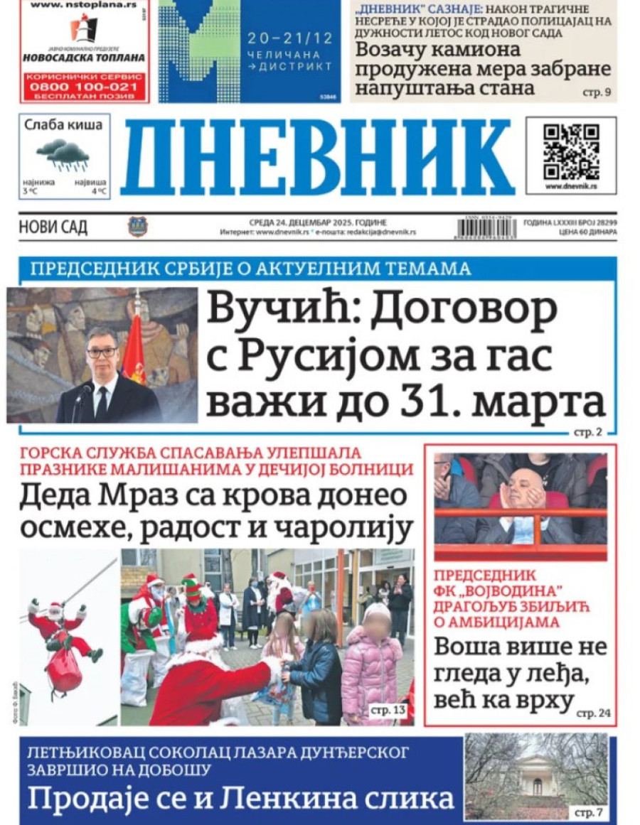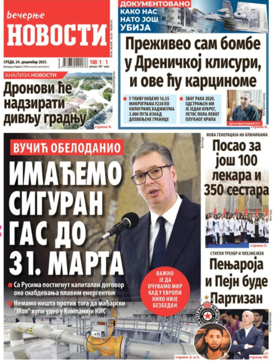 Naslovne strane dnevnih novina: Prelistavanje štampe za 24. decembar 2025. godine