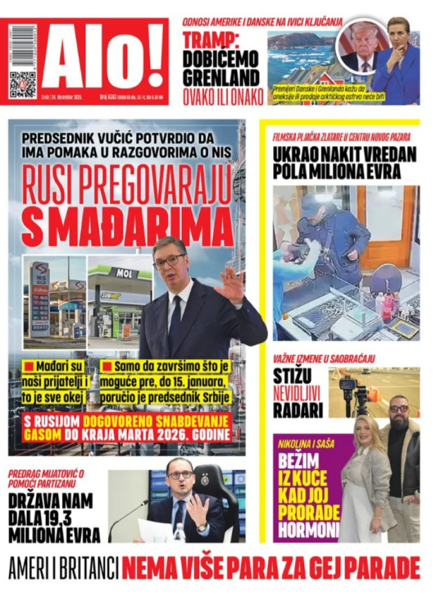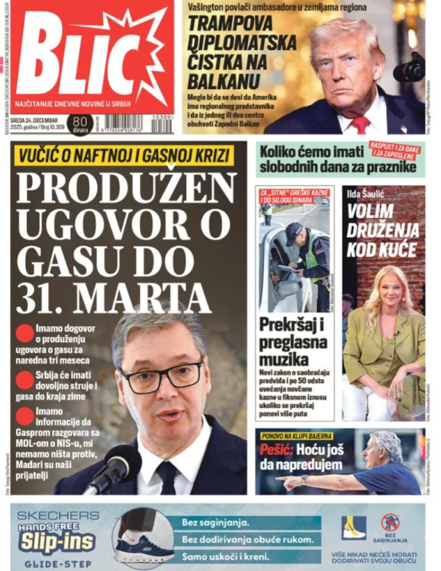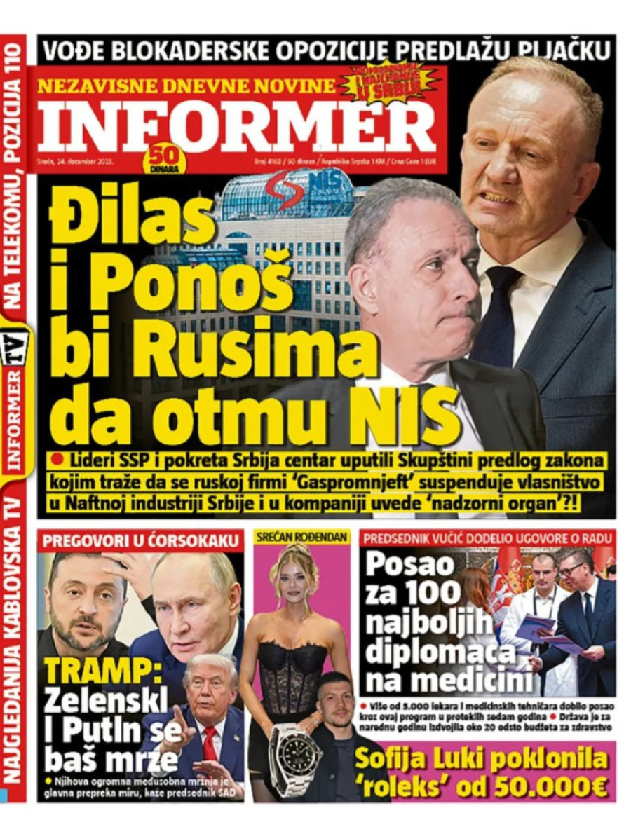 Naslovne strane dnevnih novina: Prelistavanje štampe za 24. decembar 2025. godine