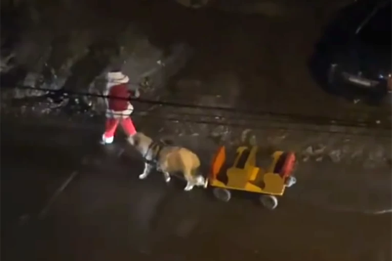 Jedan od njihovih sugrađana, ponesen prazničnom euforijom, preobukao se u Deda Mraza, ali on nije bio najveća atrakcija. Najveću pažnju, naročito na društvenim mrežama, privukao je njegov saputnik koji je hodao pored njega.