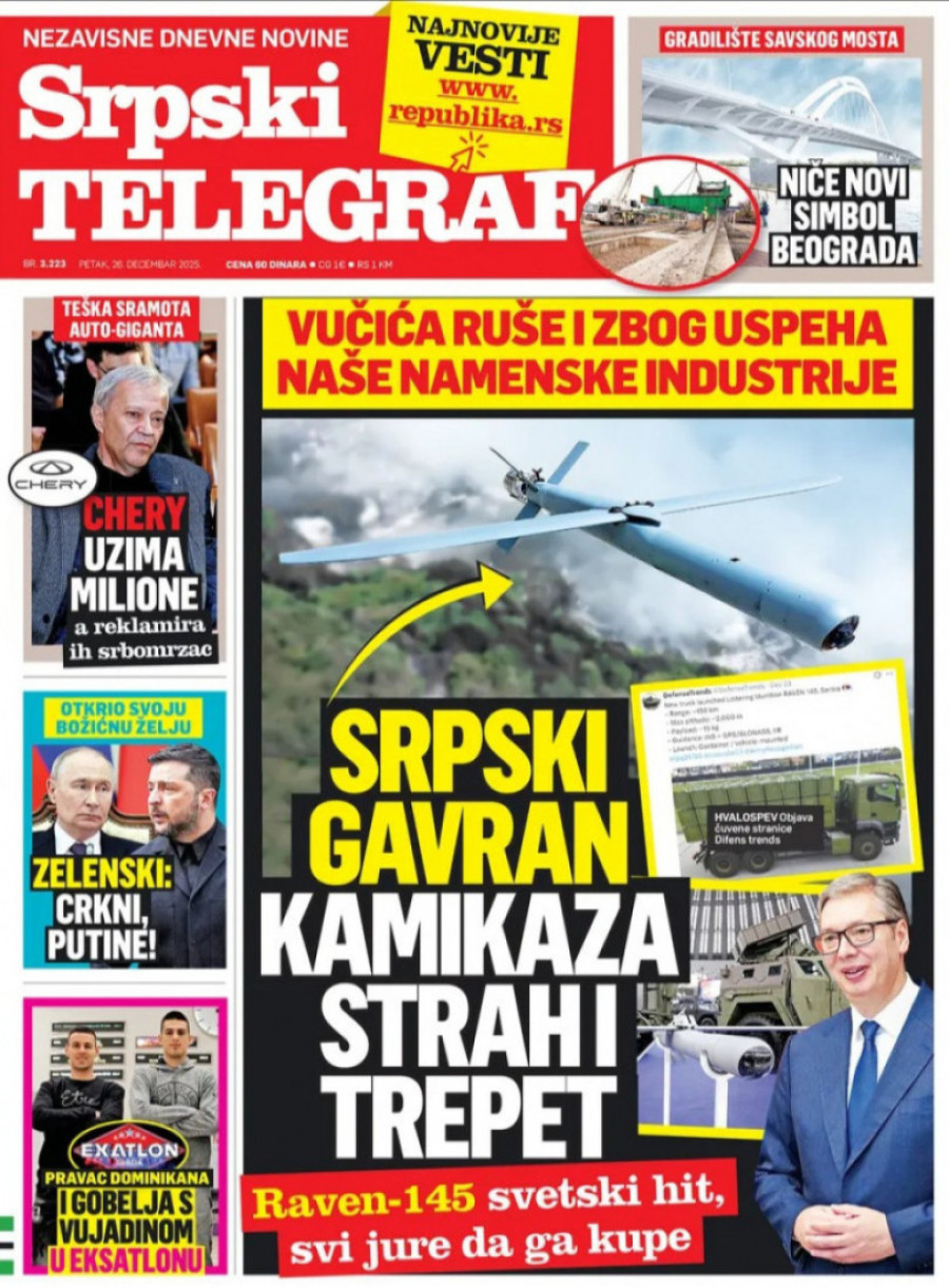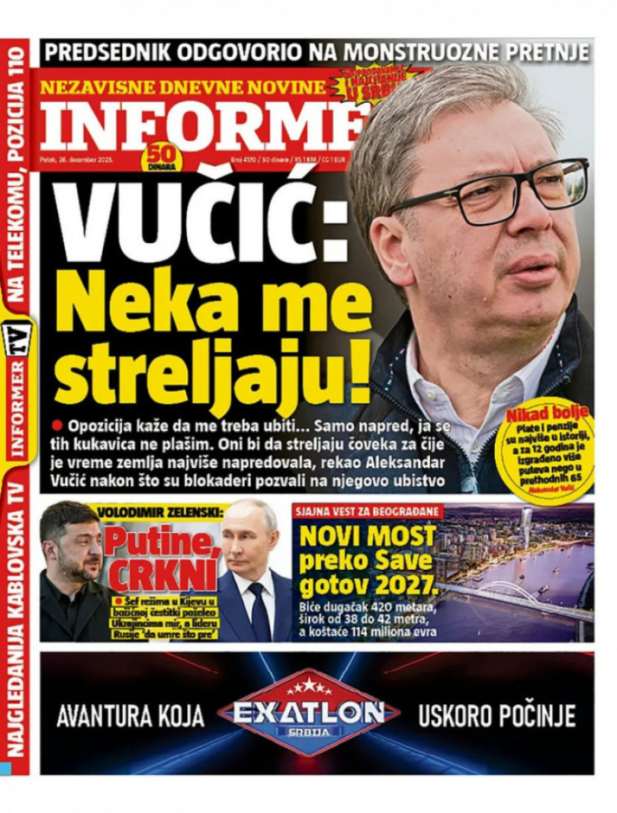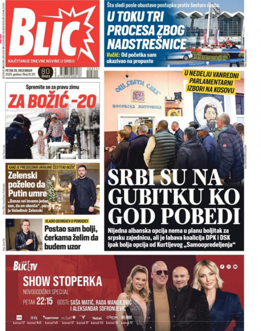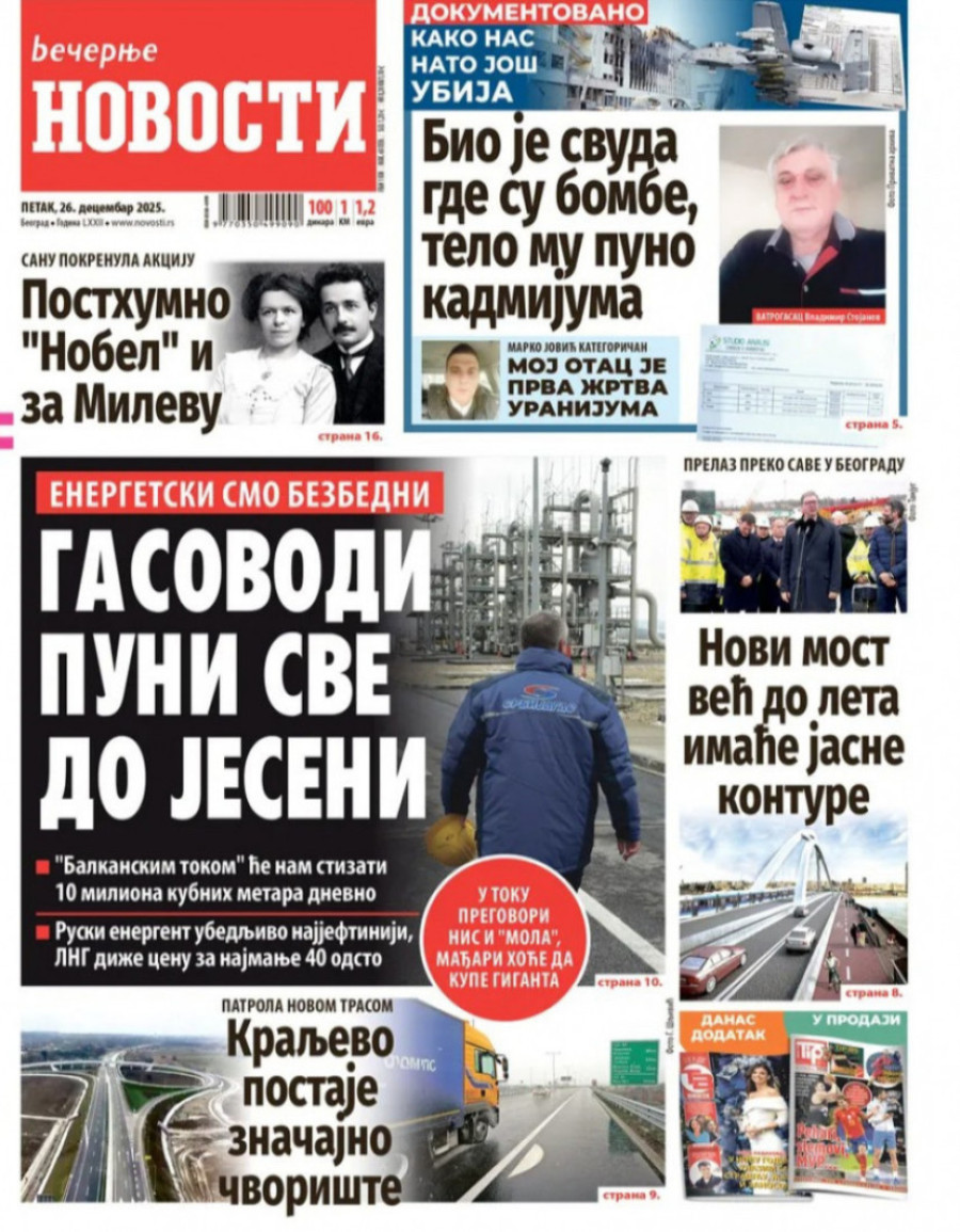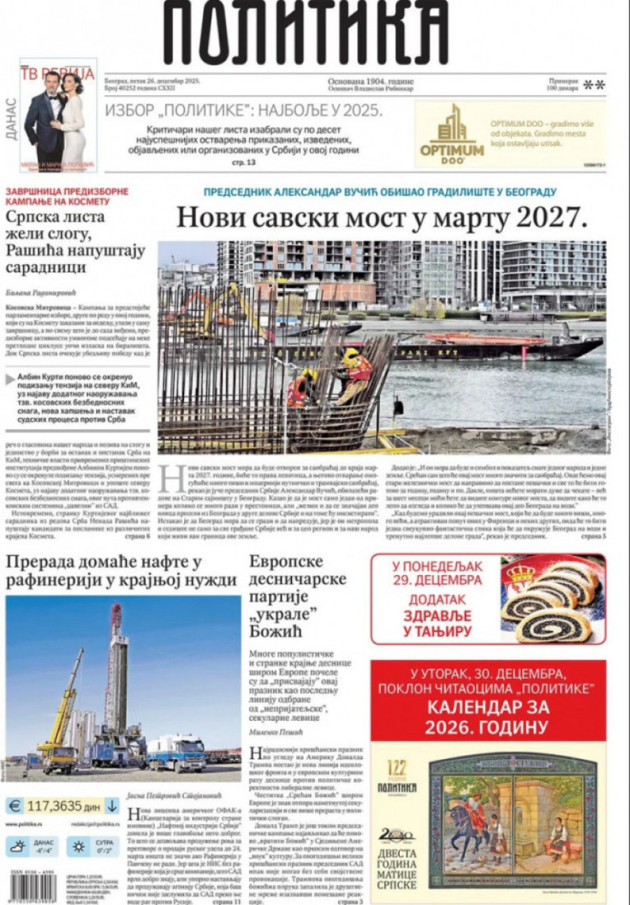 Naslovne strane dnevnih novina: Prelistavanje štampe za 26. decembar 2025. godine