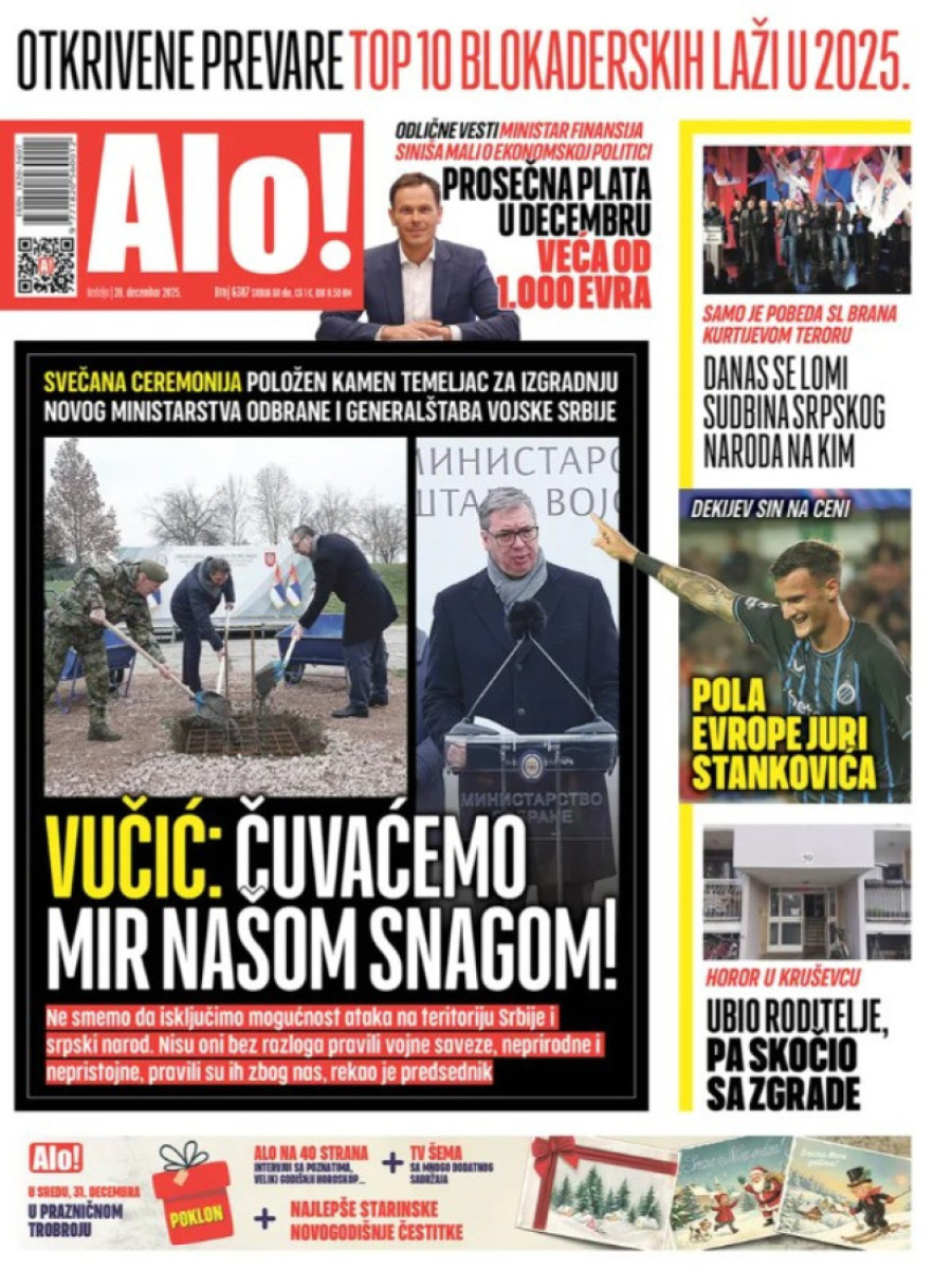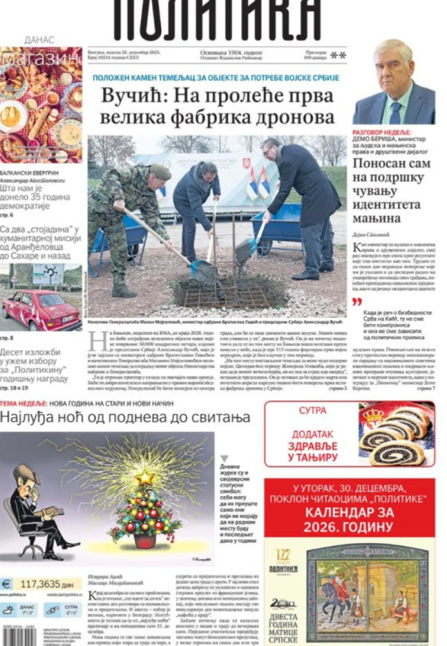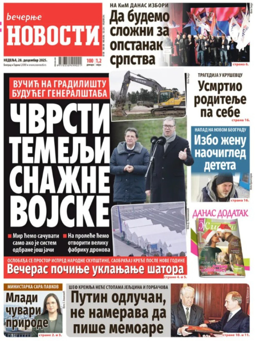 Naslovne strane dnevnih novina: Prelistavanje štampe za 28. decembar 2025. godine