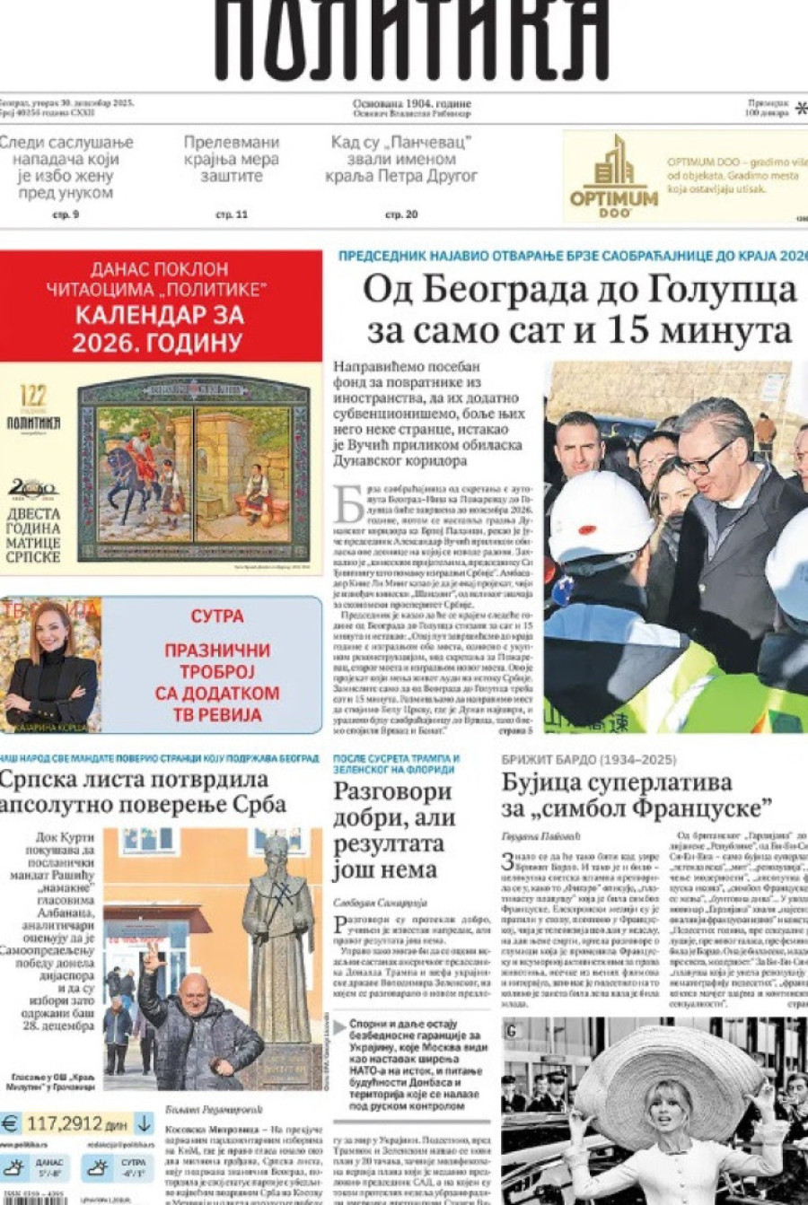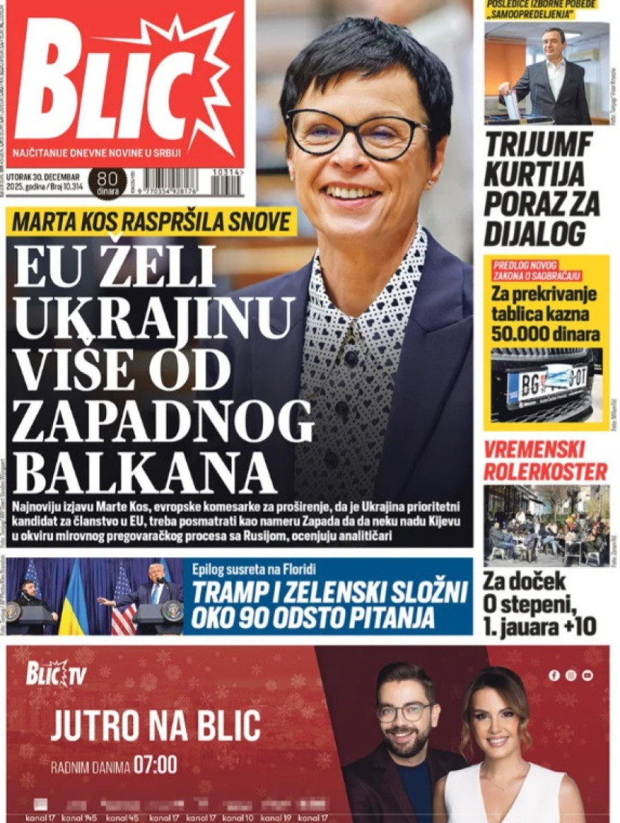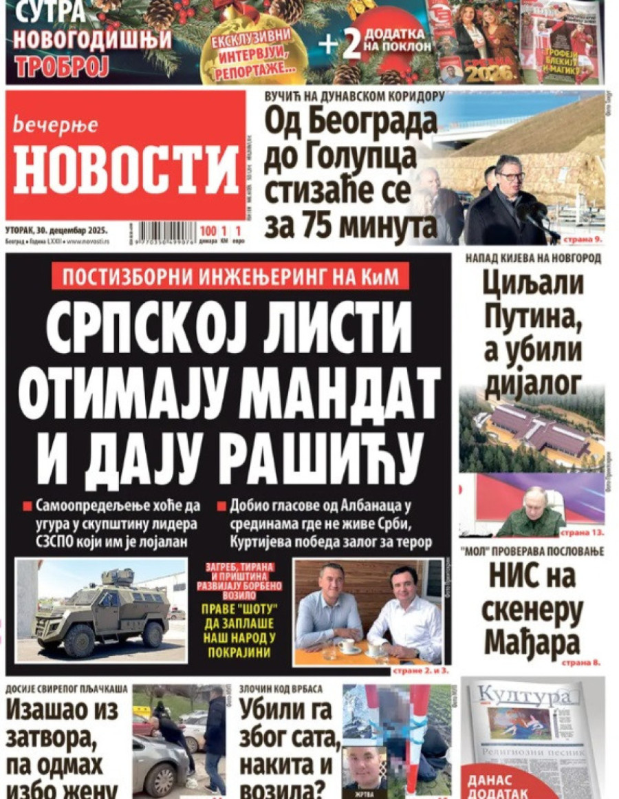 Naslovne strane dnevnih novina: Prelistavanje štampe za 30. decembar 2025. godine