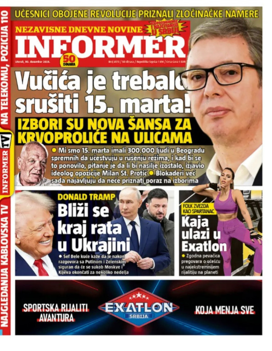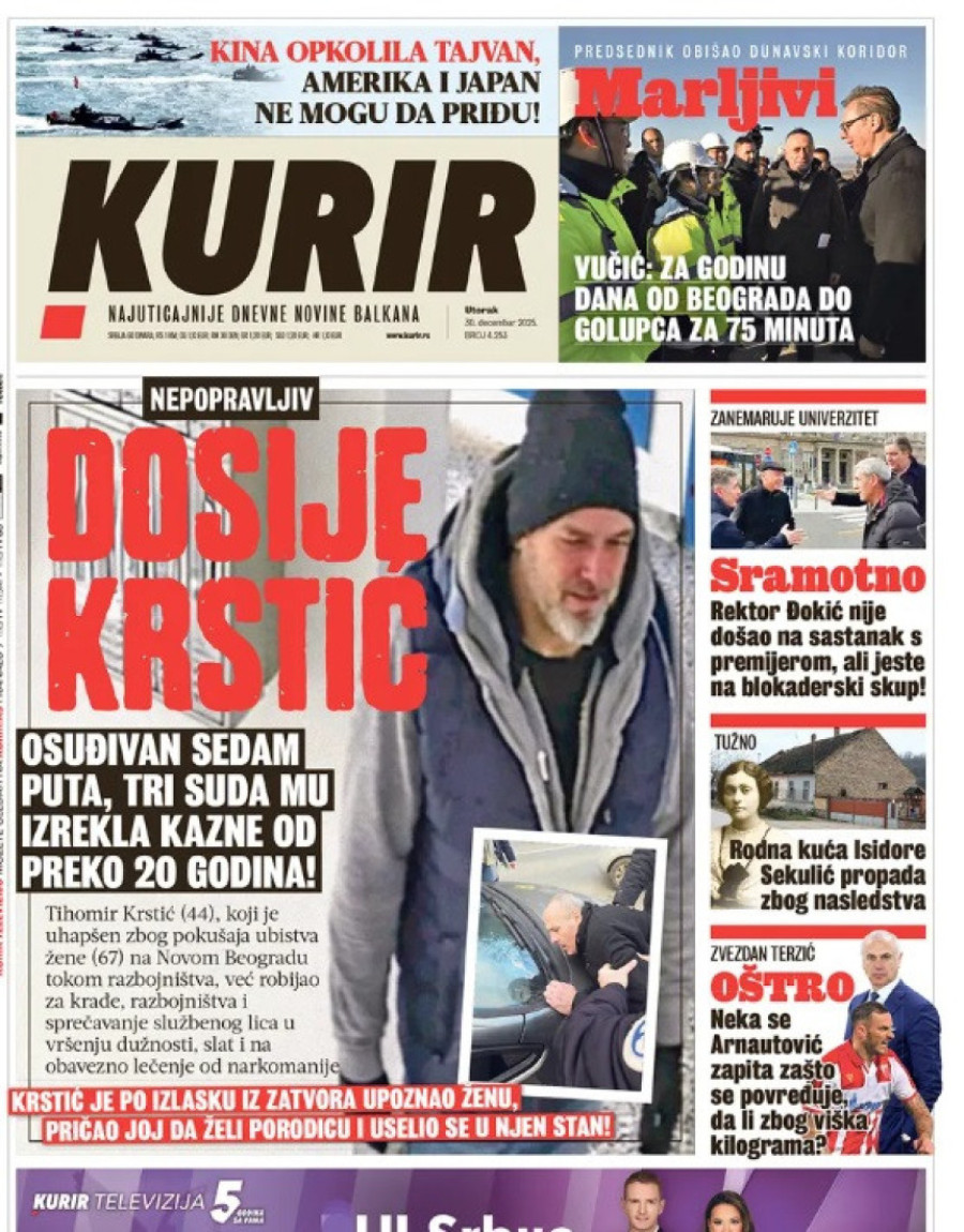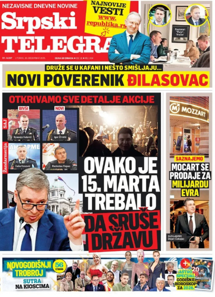 Naslovne strane dnevnih novina: Prelistavanje štampe za 30. decembar 2025. godine