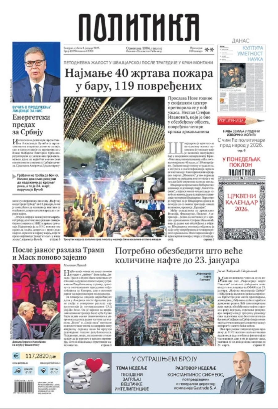 Naslovne strane dnevnih novina: Prelistavanje štampe za 3. januar 2026. godine