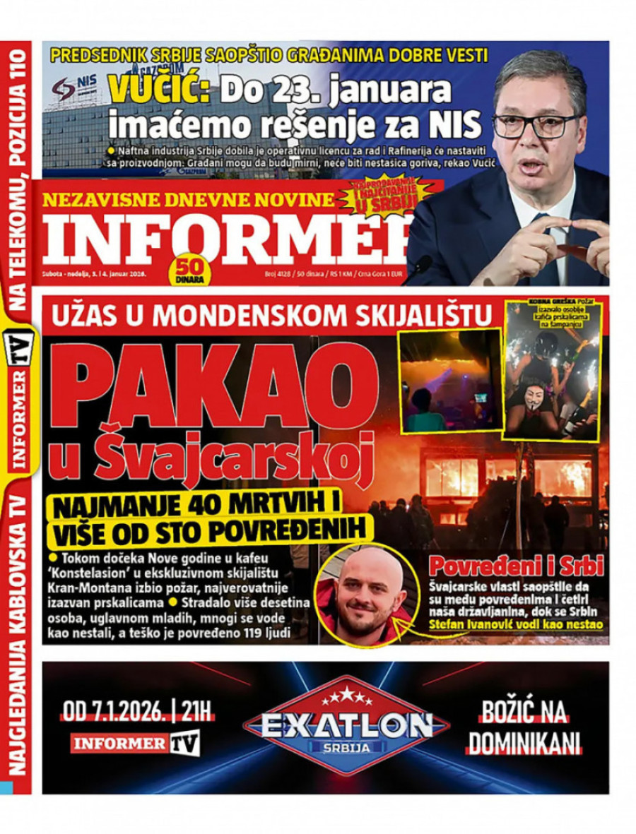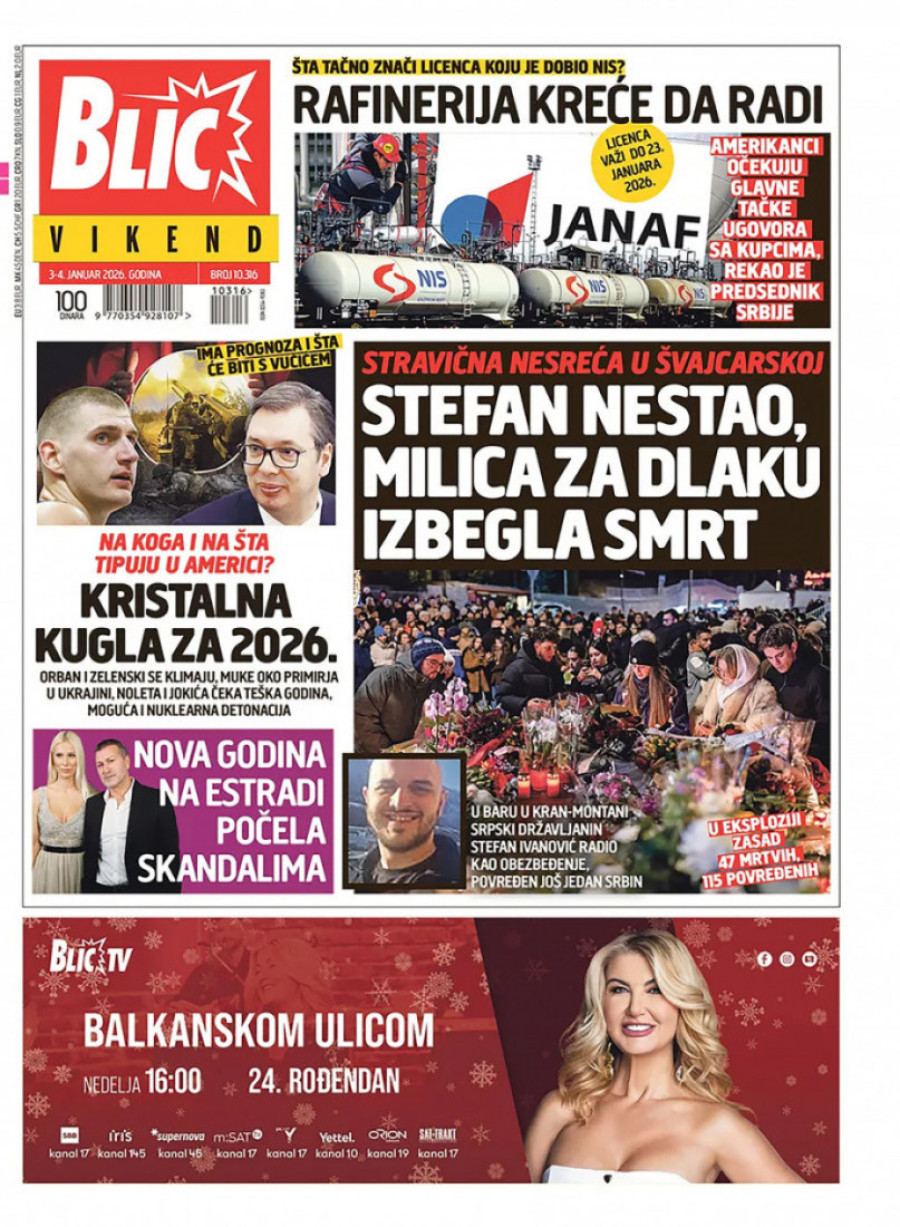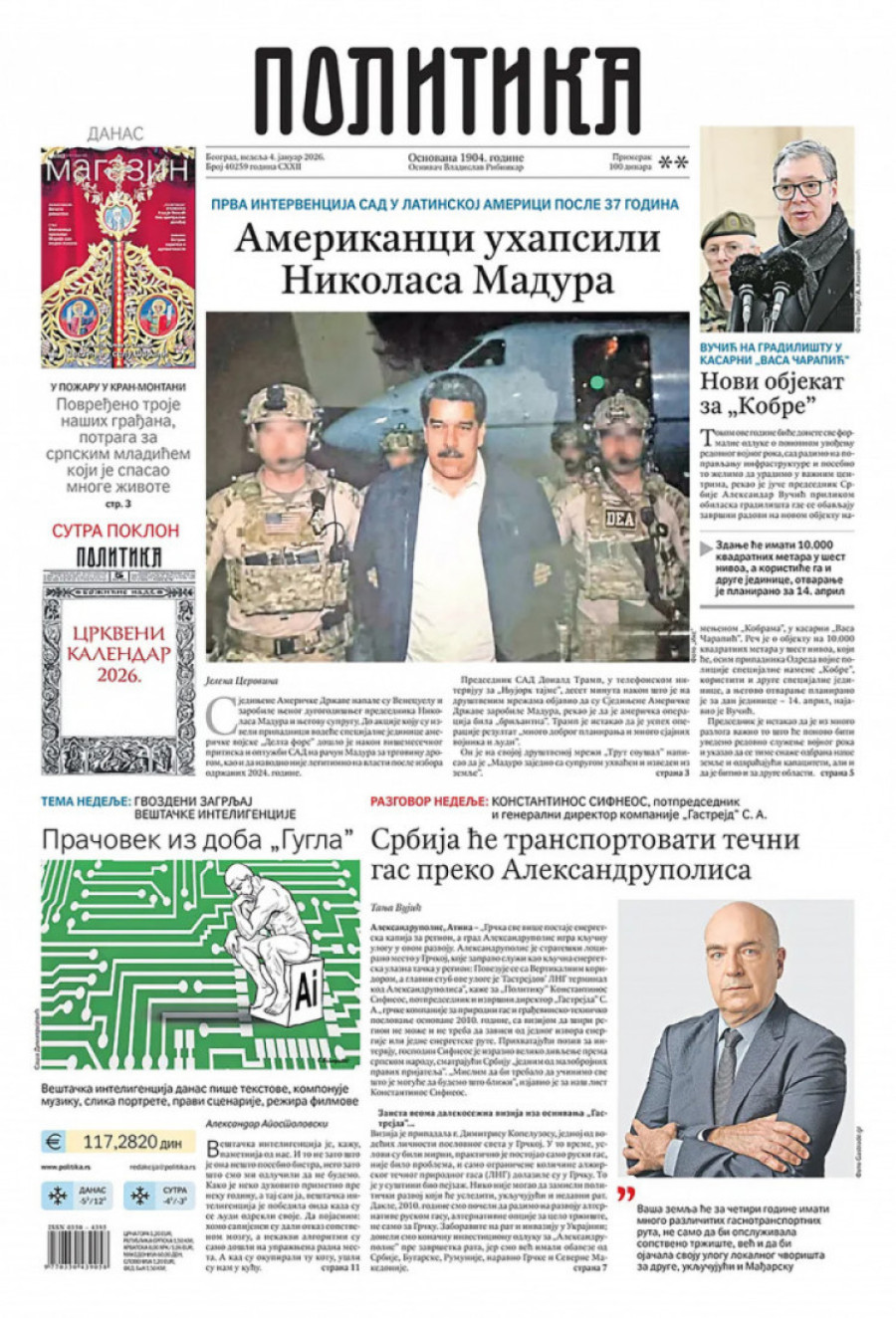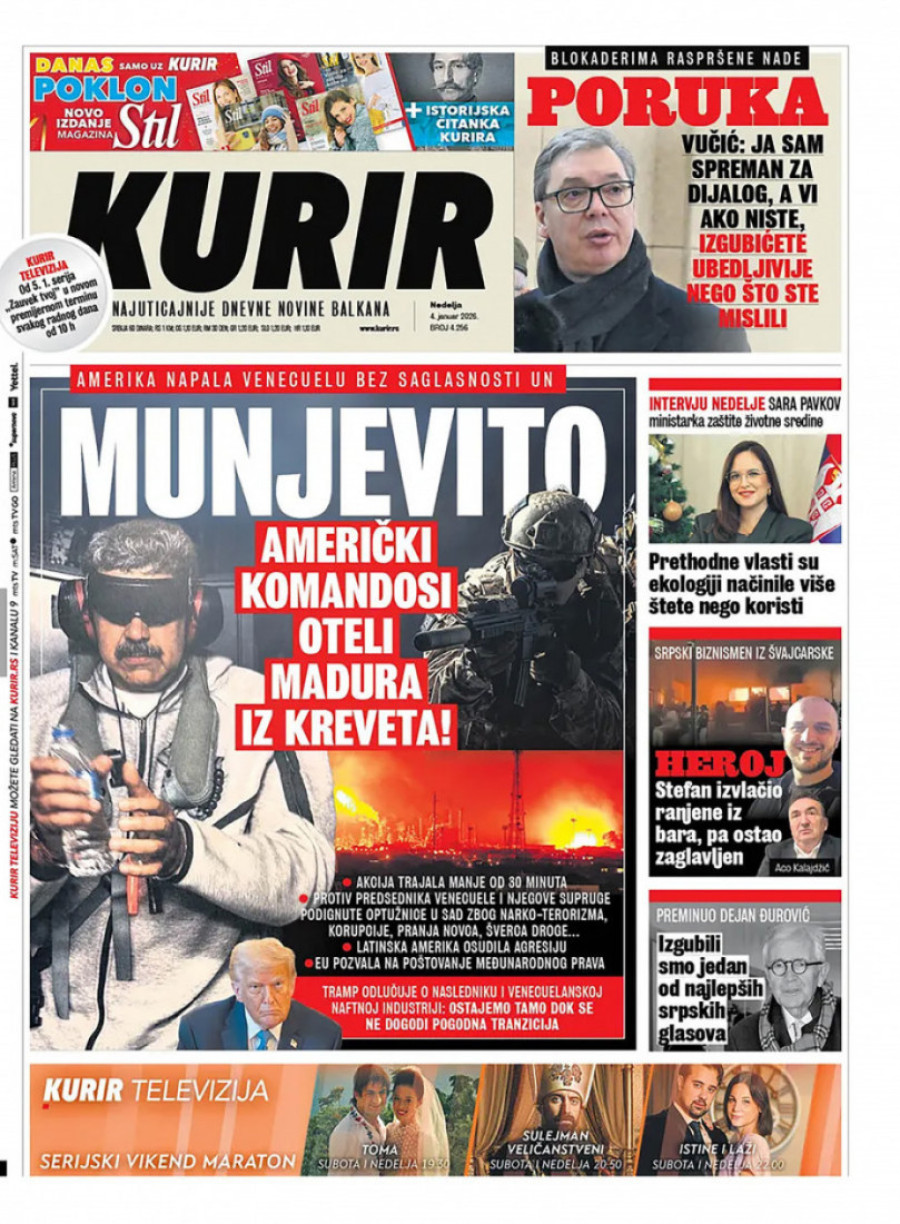 Dnevne novine u Srbiji za nedelju 4.januar 2026. godine na naslovnim stranama najavljuju brojne aktuelne društveno-političke teme.