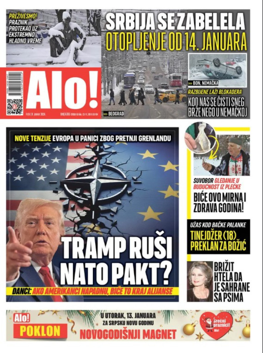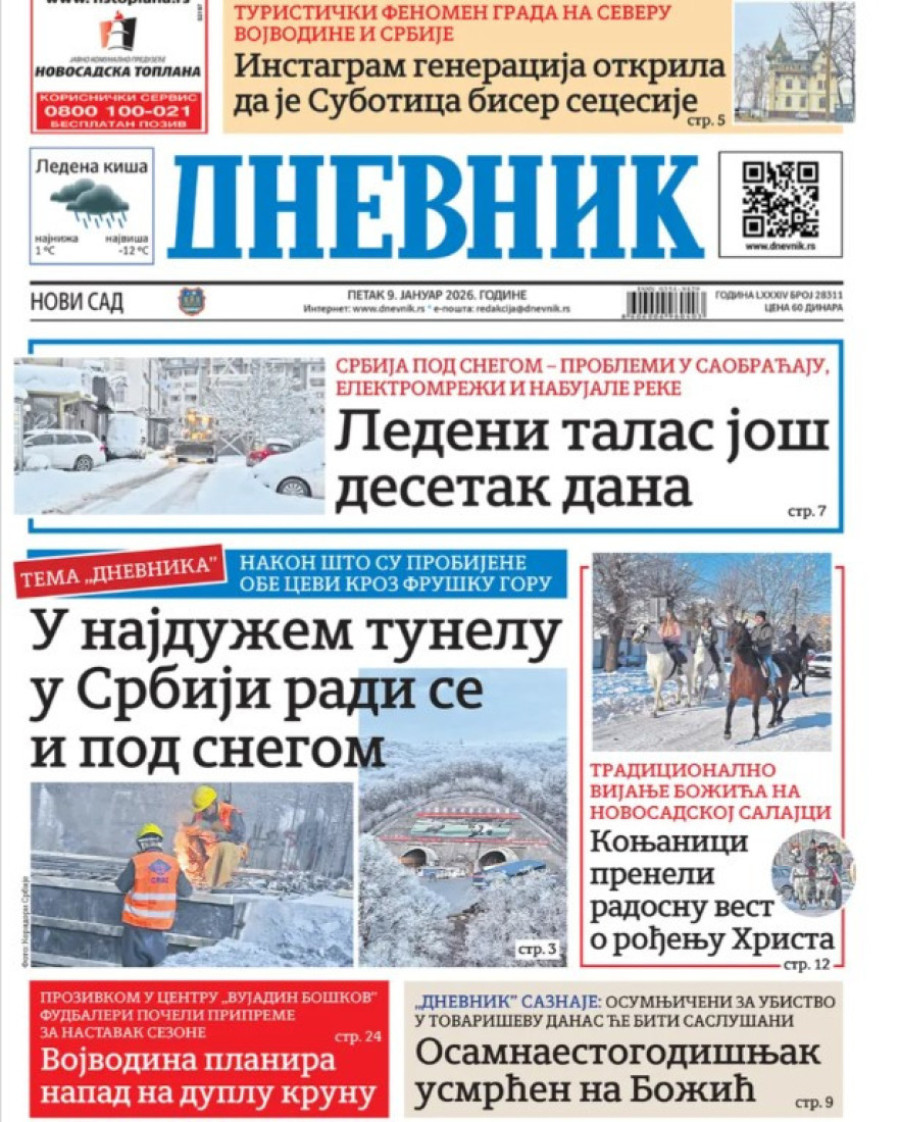 Naslovne strane dnevnih novina: Prelistavanje štampe za 9. januar 2026. godine