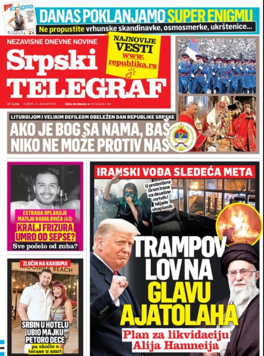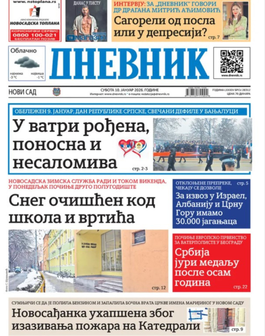 Dnevne novine u Srbiji za subotu 10. januar 2026. godine na naslovnim stranama najavljuju brojne aktuelne društveno-političke teme.