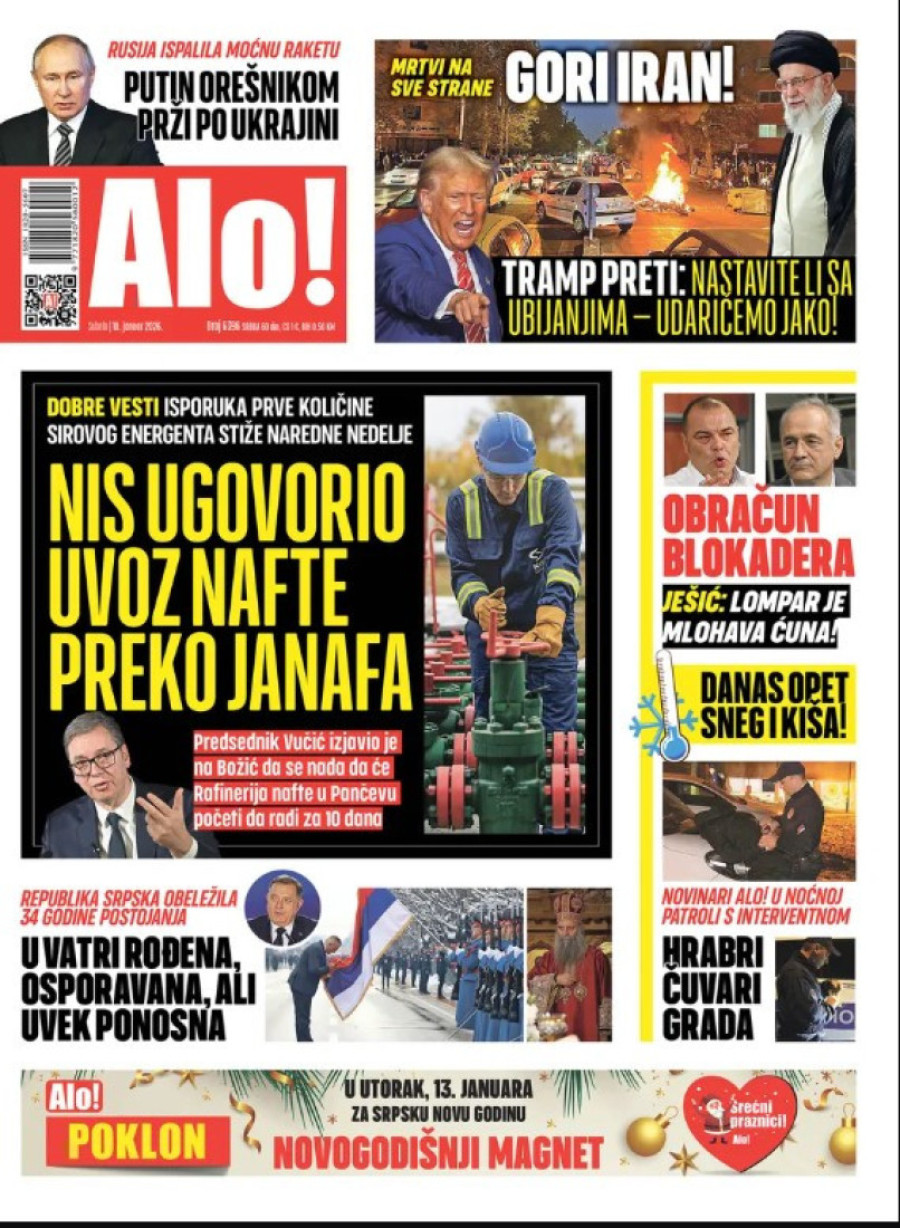 Naslovne strane dnevnih novina: Prelistavanje štampe za 10. januar 2026. godine