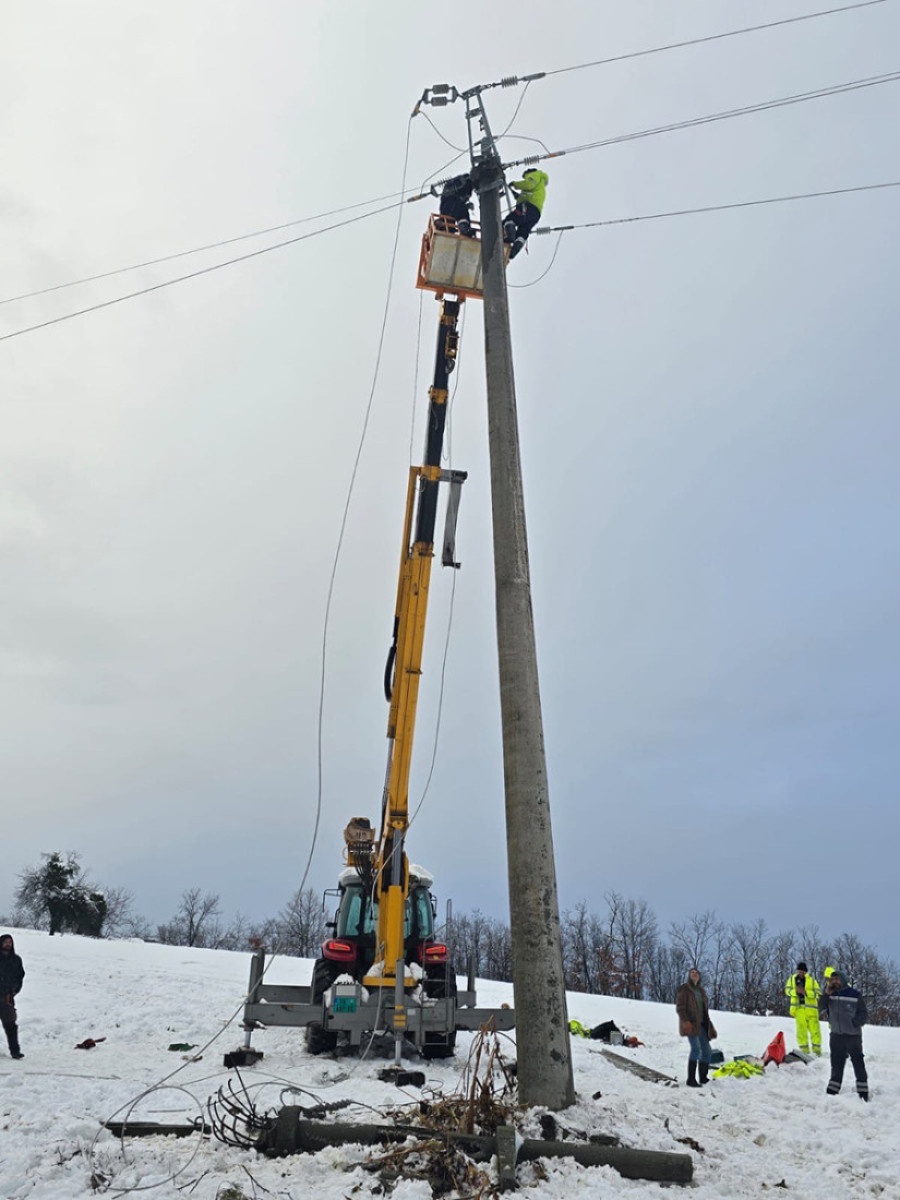 Monteri su tokom cele noći, kao i prethodnih dana, radili na sanaciji kvarova koje su izazvali težak i mokar sneg, pad velikih stabala van zone dalekovoda, kidanje provodnika, kao i lom stubova usled višeslojnih naslaga leda.