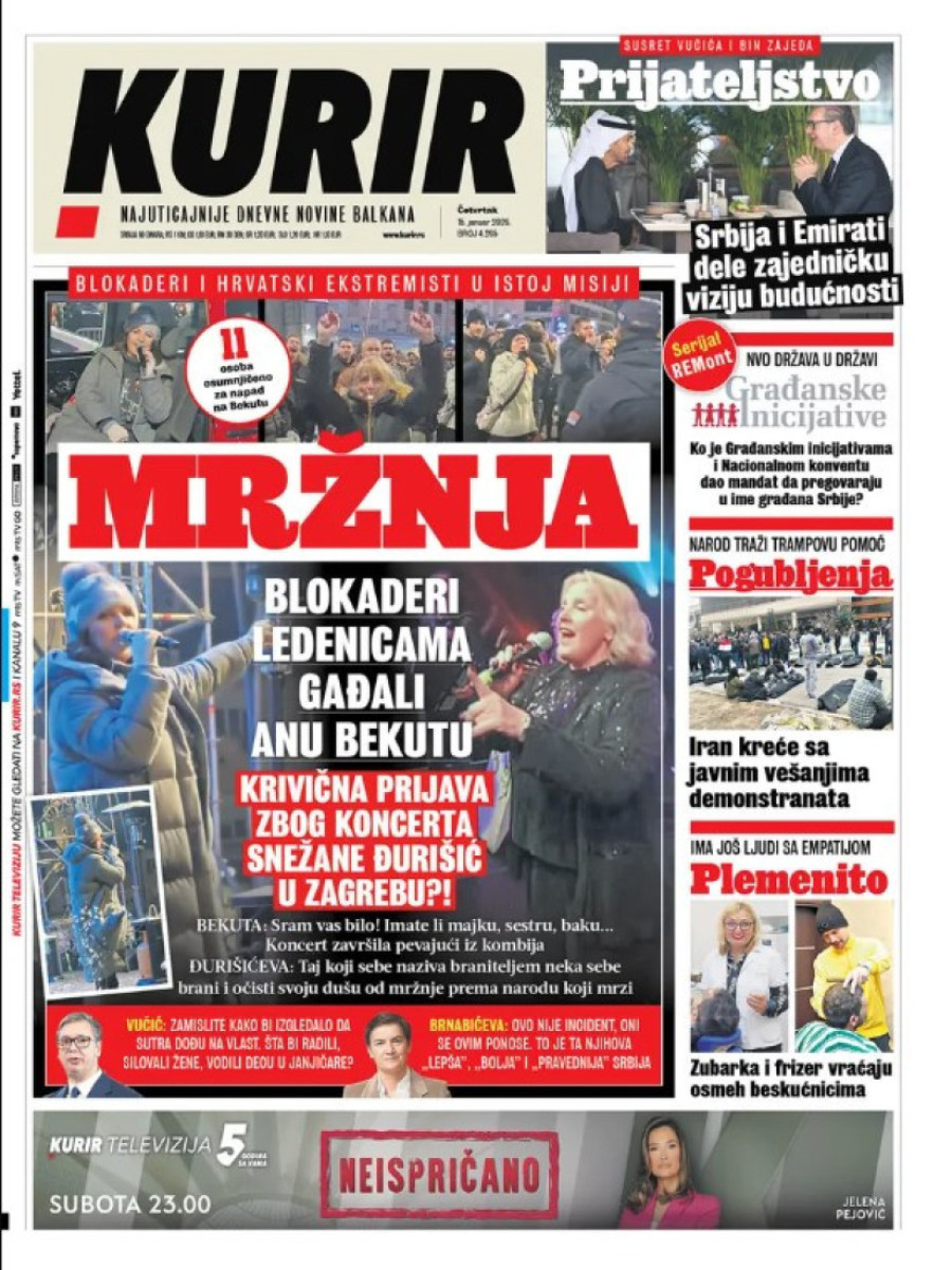 Naslovne strane dnevnih novina: Prelistavanje štampe za 15. januar 2026. godine