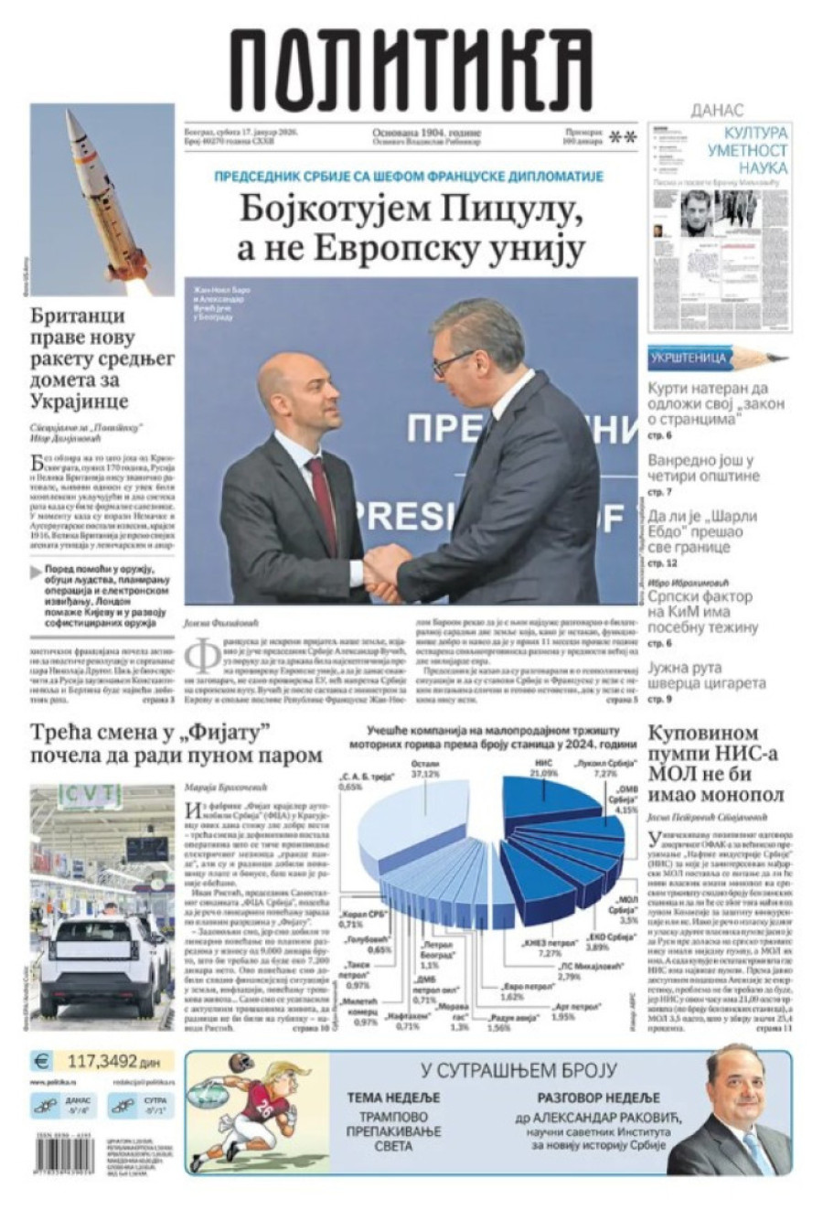 Naslovne strane dnevnih novina: Prelistavanje štampe za 17. januar 2026. godine