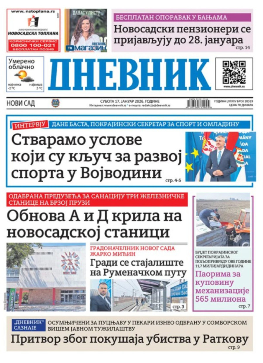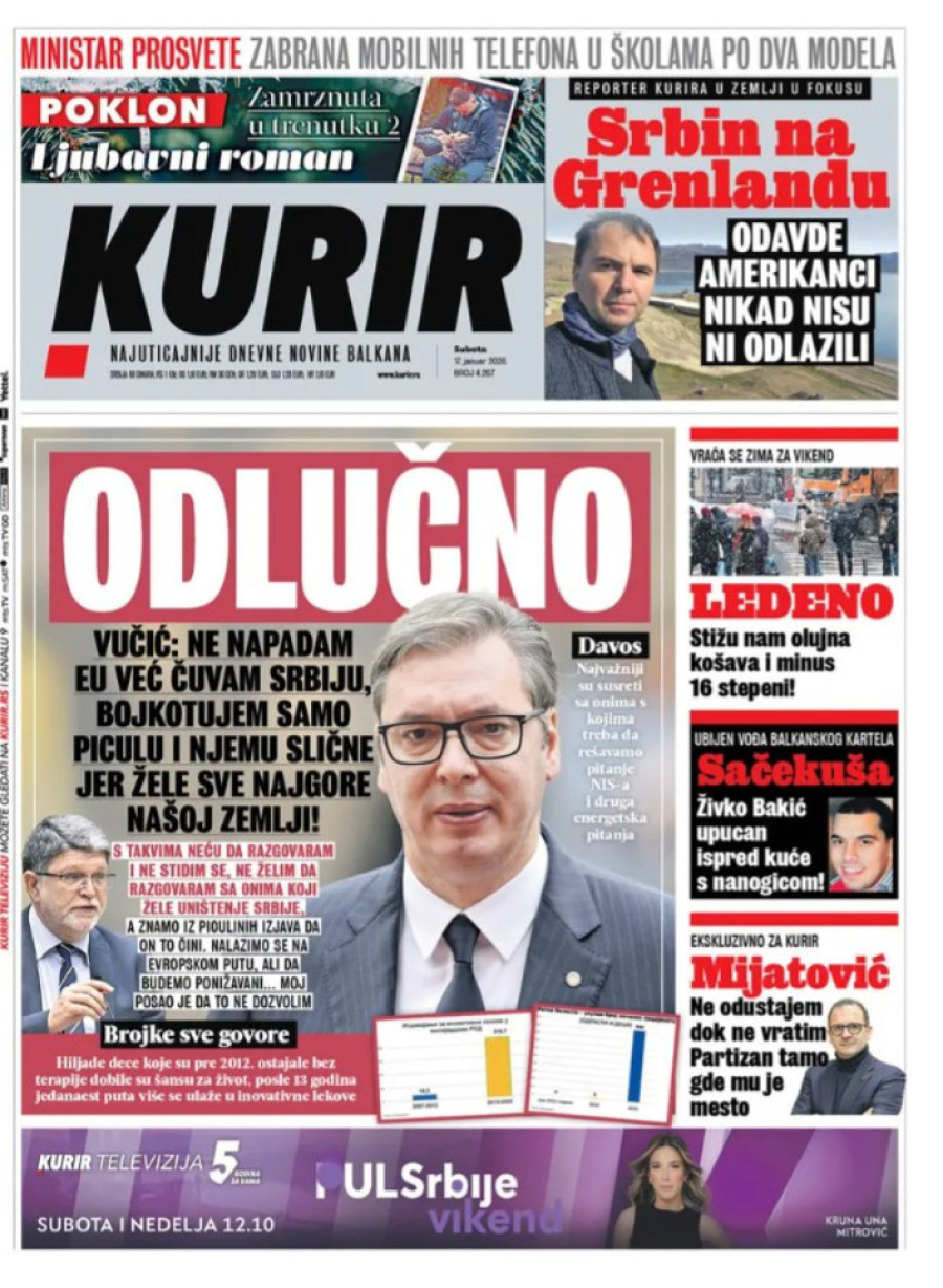 Dnevne novine u Srbiji za subotu 17. januar 2026. godine na naslovnim stranama najavljuju brojne aktuelne društveno-političke teme.