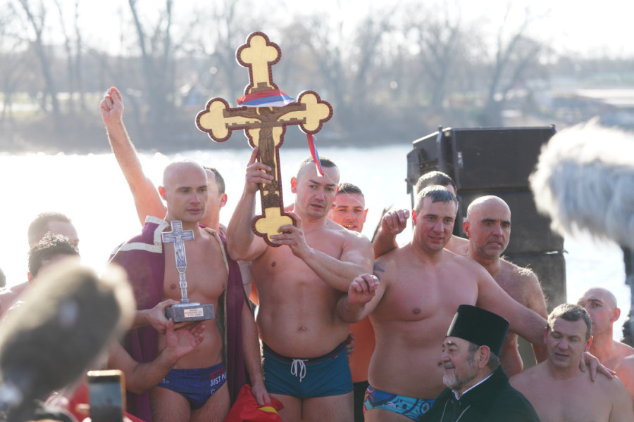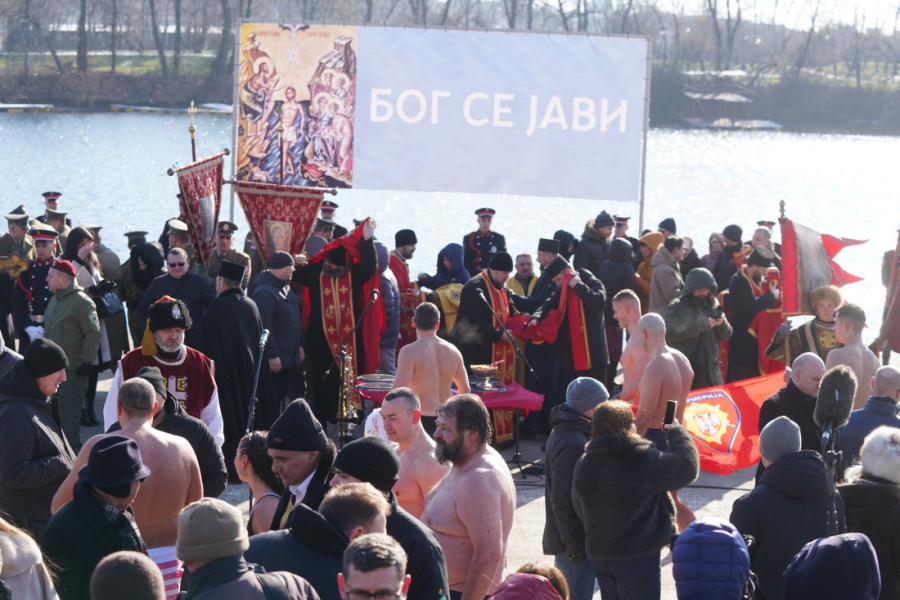 Pre plivanja, u Hramu Svetog Đorđa na Banovom brdu služena je sveta liturgija i osvećena bogojavljenska voda.