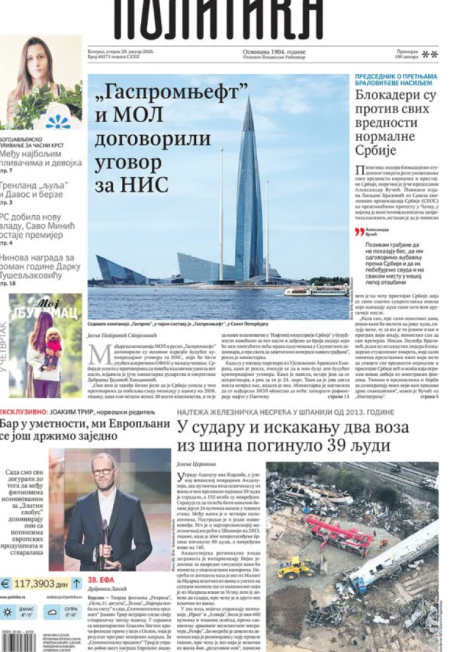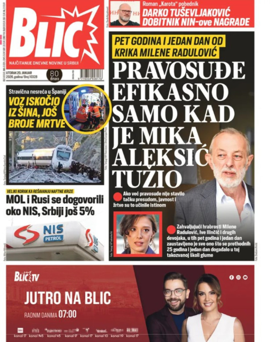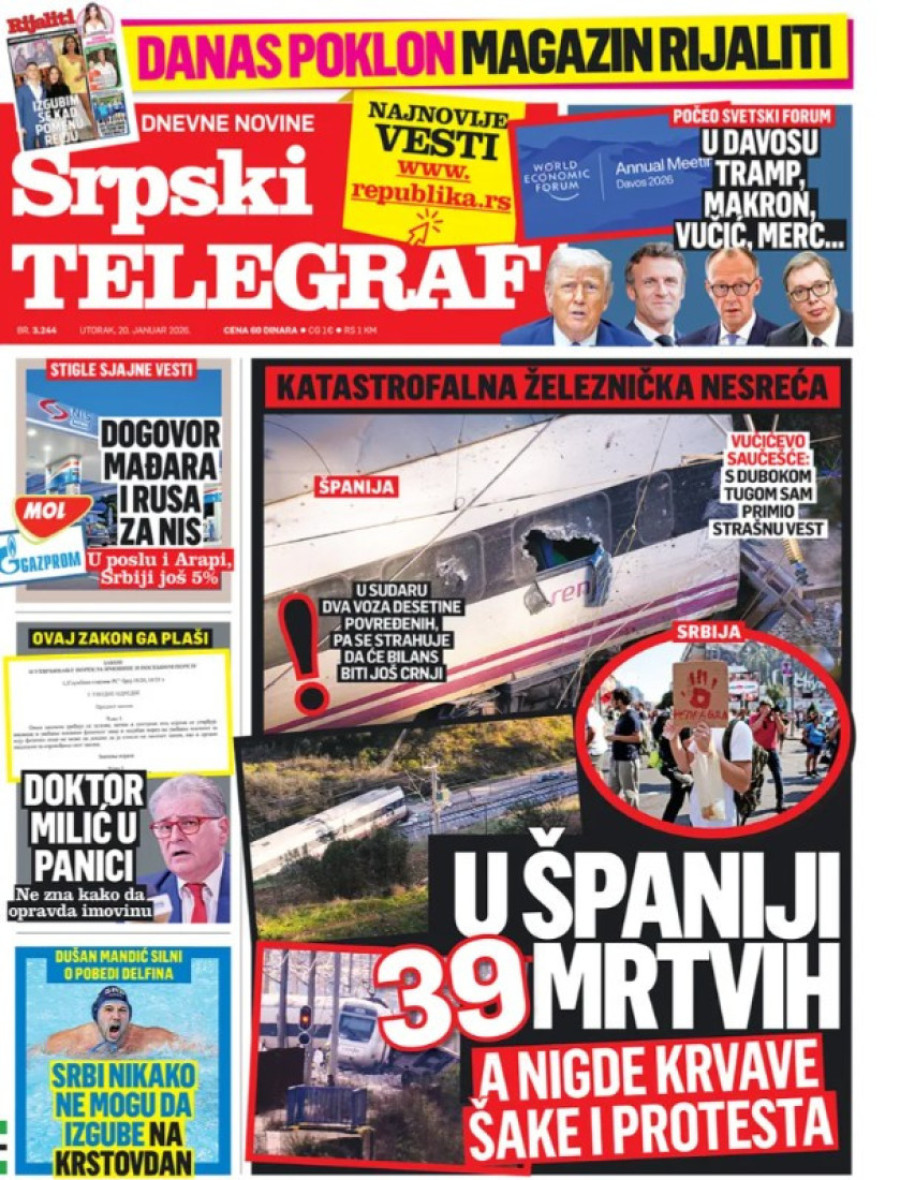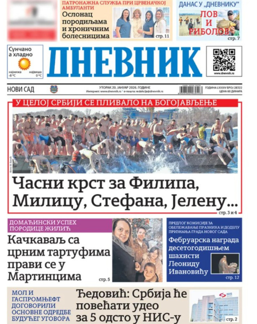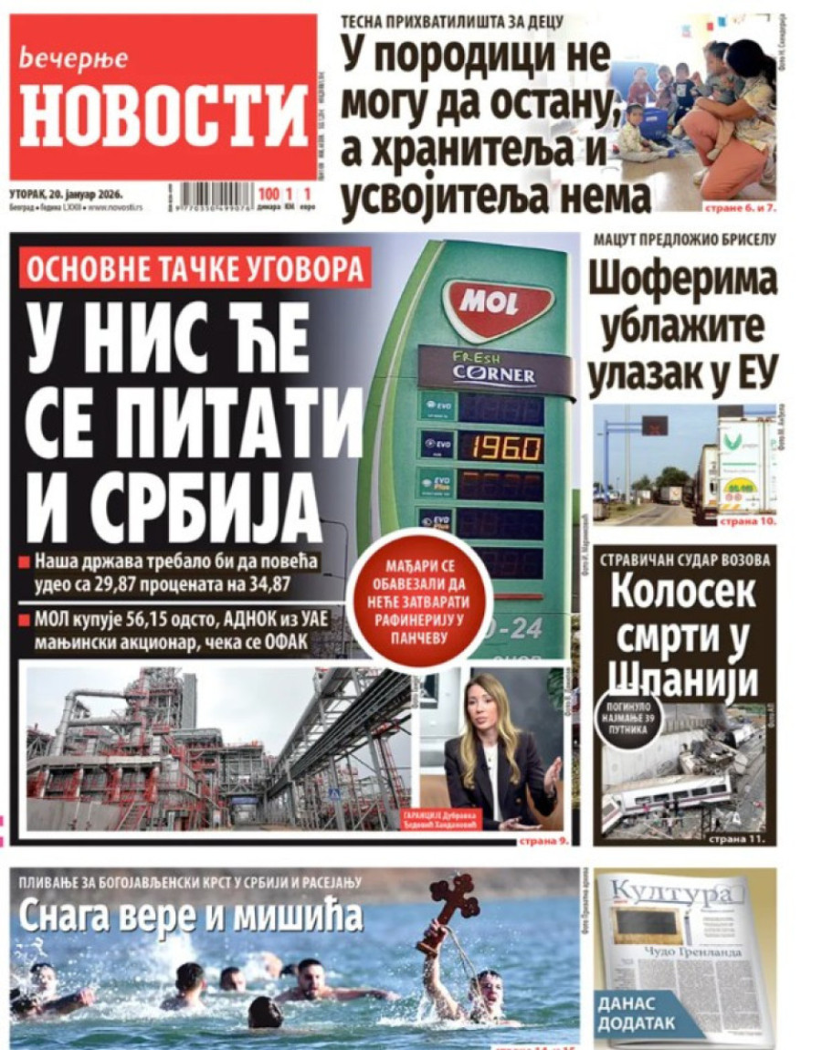 Naslovne strane dnevnih novina: Prelistavanje štampe za 20. januar 2026. godine