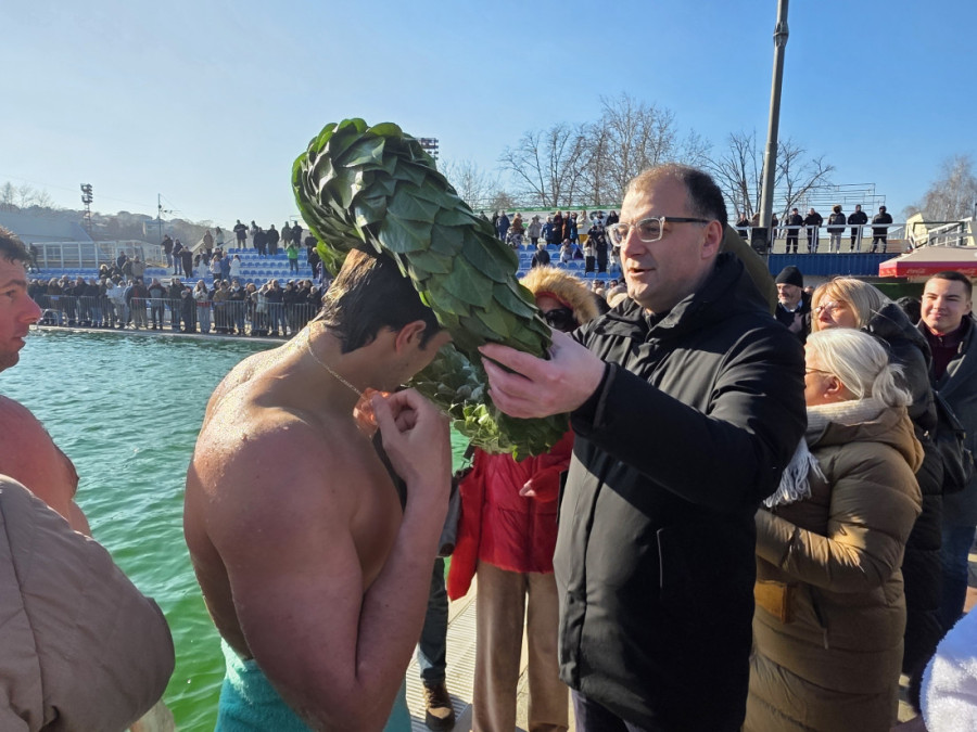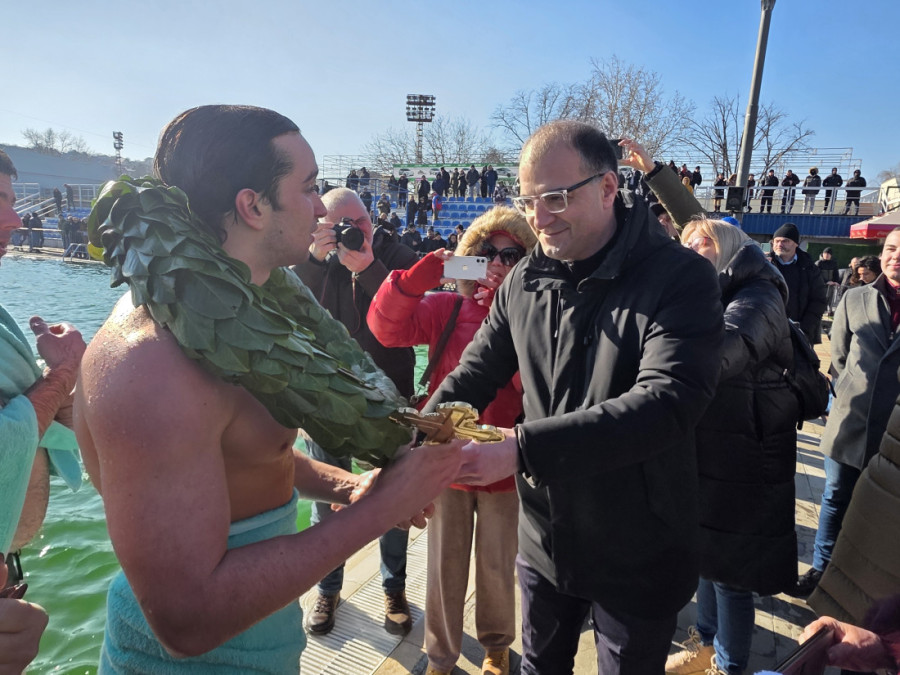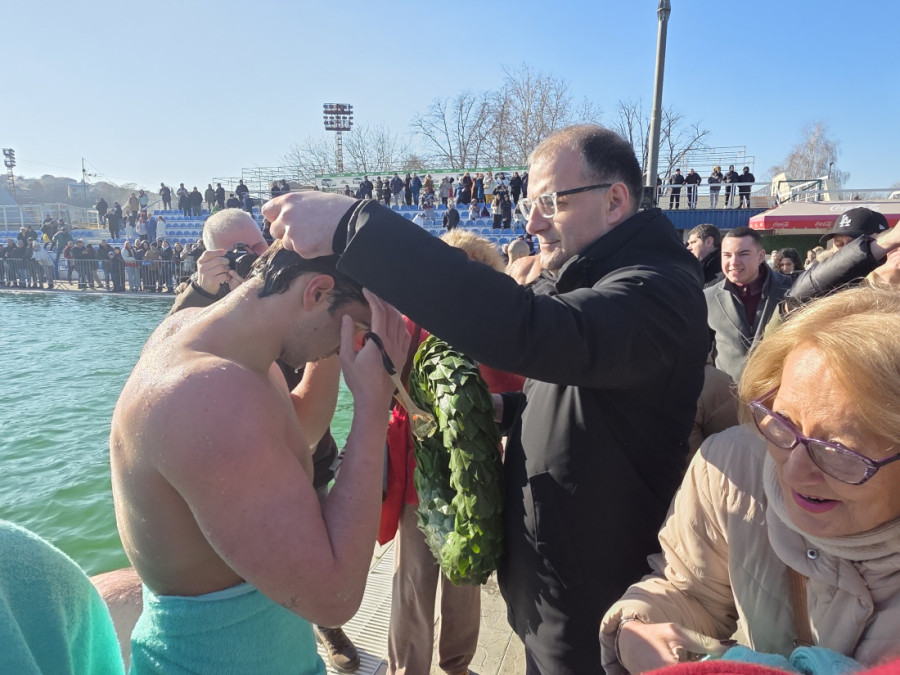 Do Časnog krsta u reci Nišavi, kod naselja Ženeva u Niškoj Banji, prvi je doplivao Žarko Martinović.