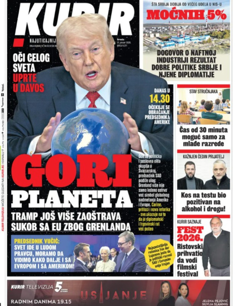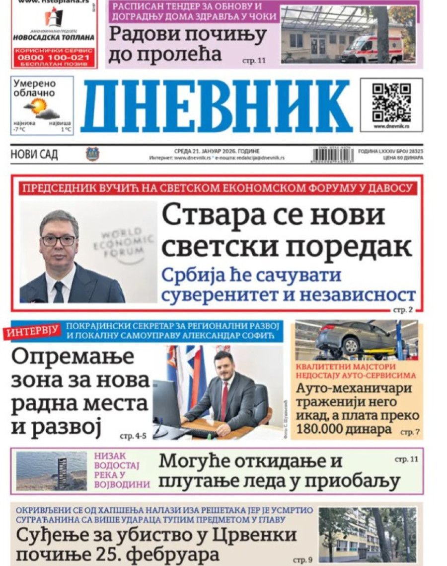 Naslovne strane dnevnih novina: Prelistavanje štampe za 21. januar 2026. godine