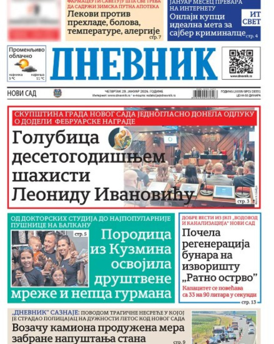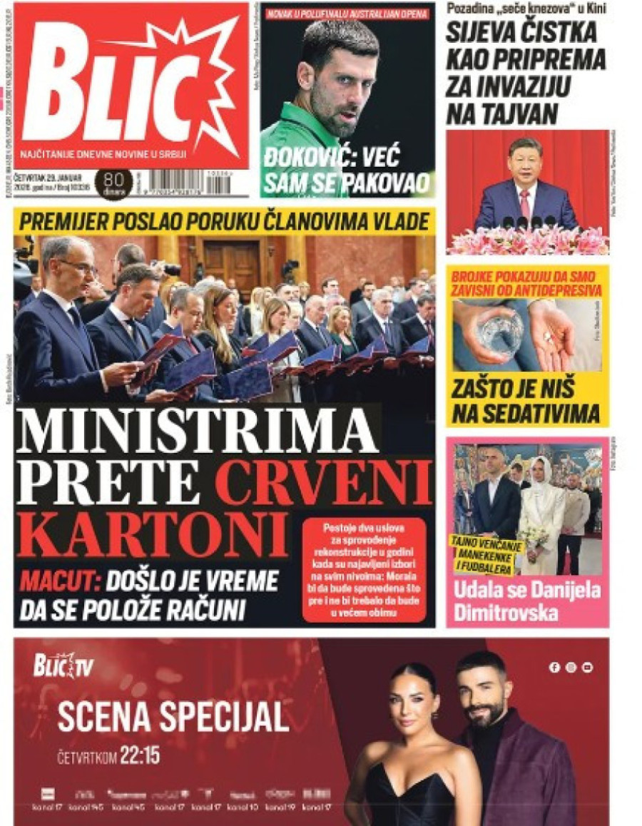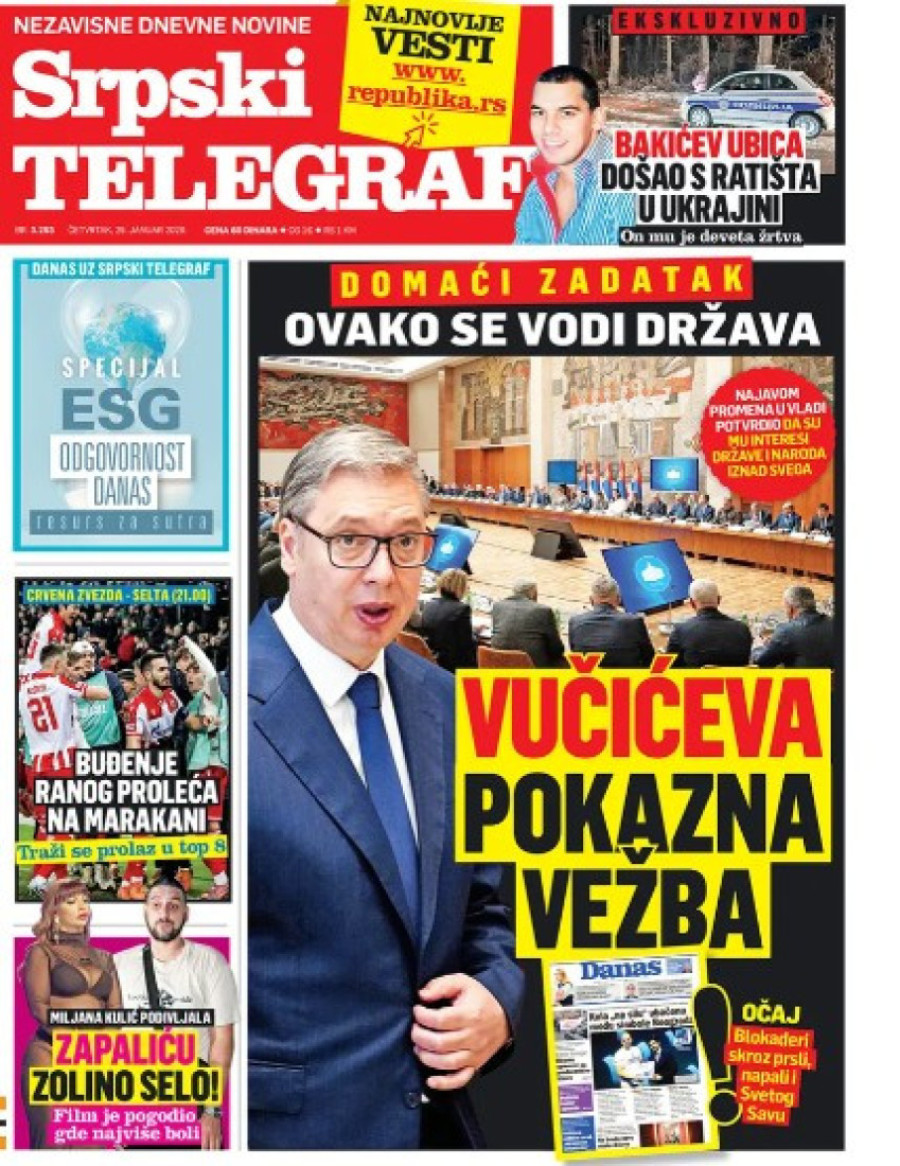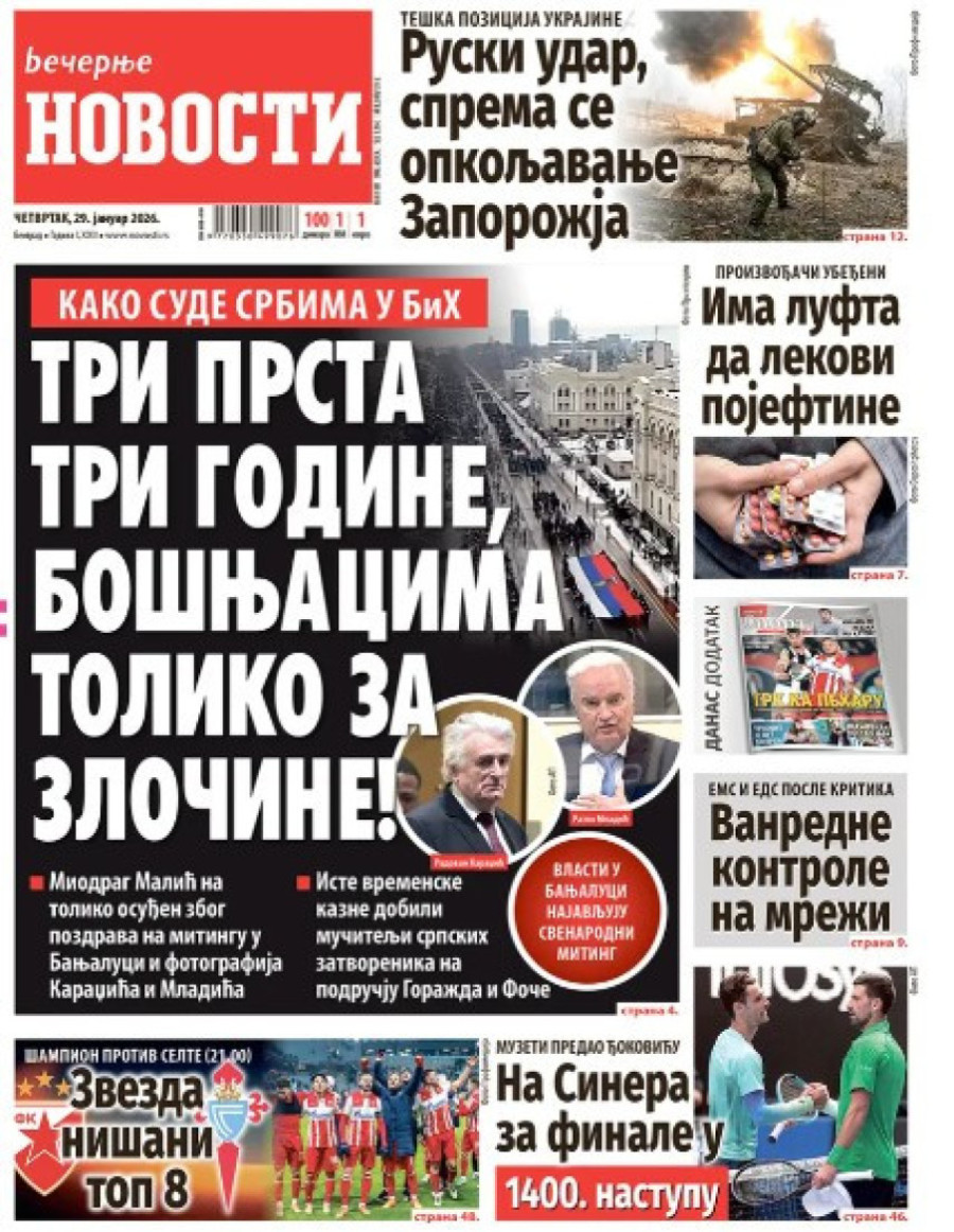 Dnevne novine u Srbiji za četvrtak, 29. januar 2026. godine na naslovnim stranama najavljuju brojne aktuelne društveno-političke teme.