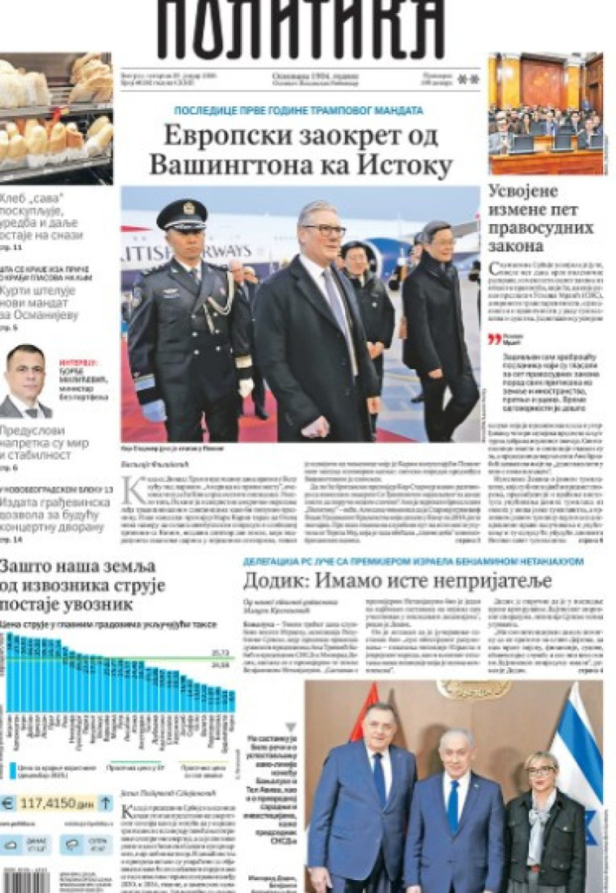 Naslovne strane dnevnih novina: Prelistavanje štampe za 29. januar 2026. godine