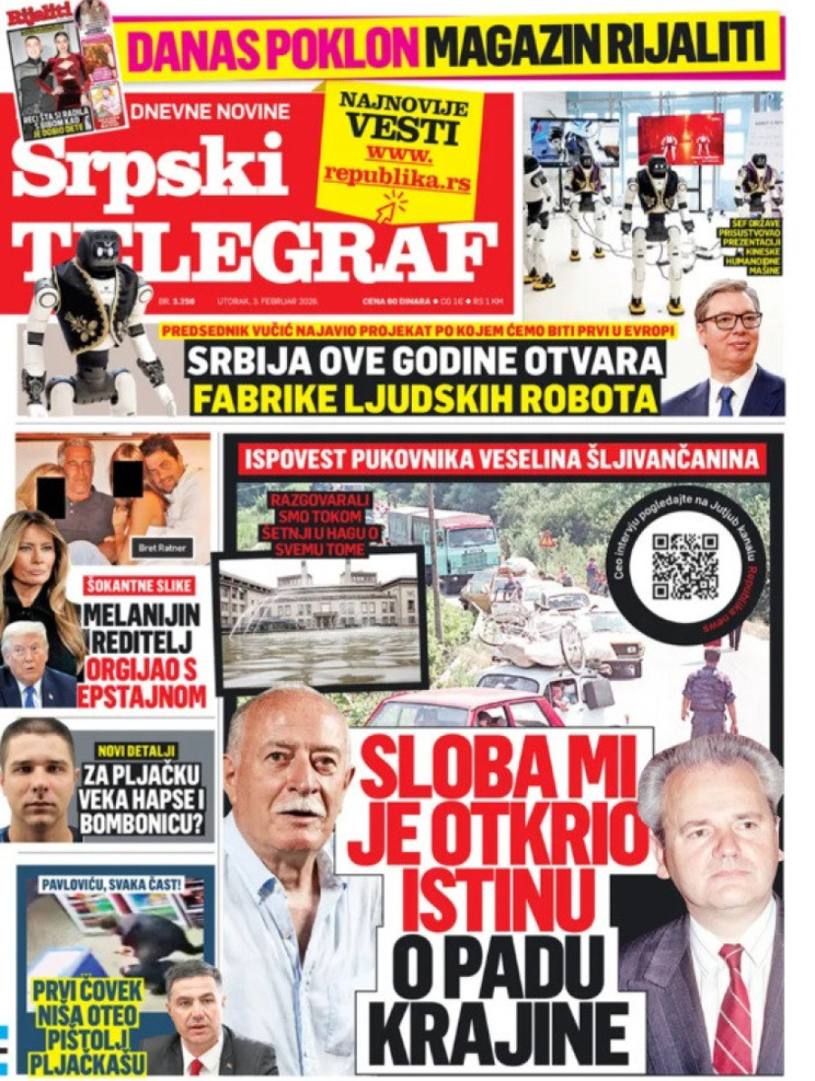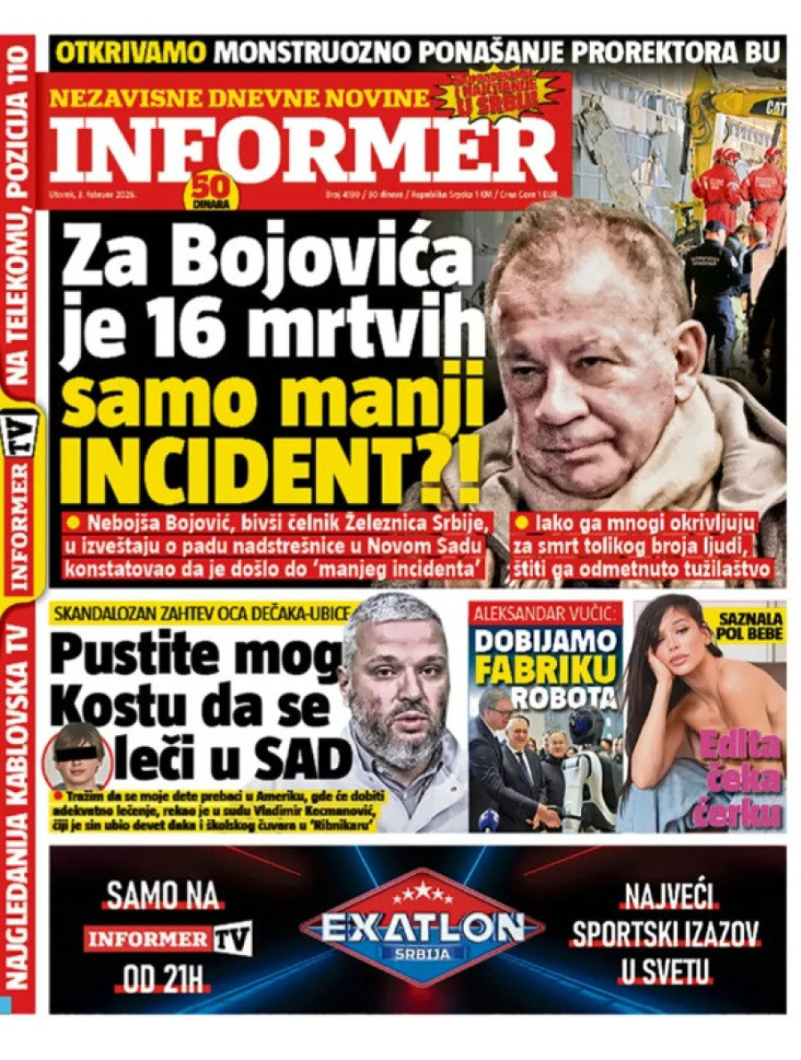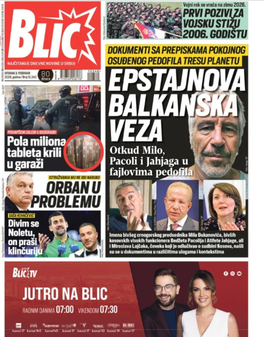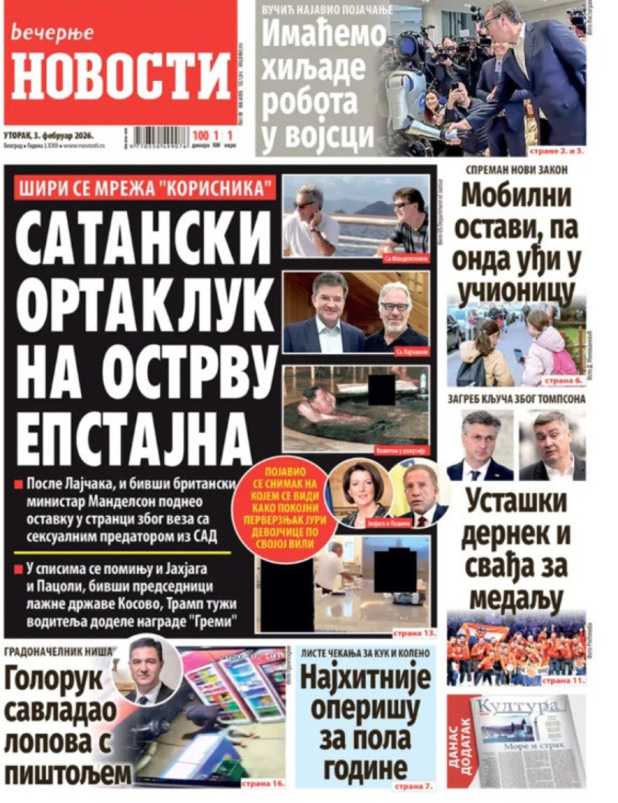 Dnevne novine u Srbiji za utorak, 3. februar 2026. godine na naslovnim stranama najavljuju brojne aktuelne društveno-političke teme.