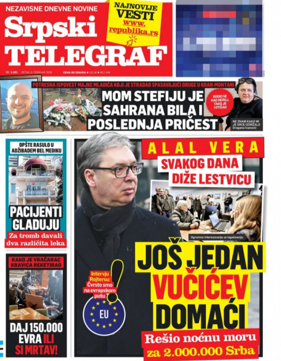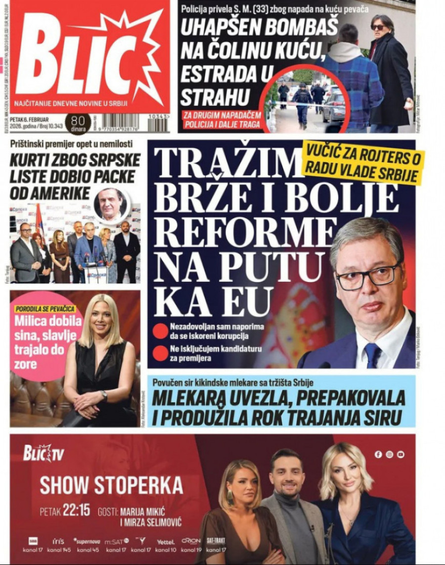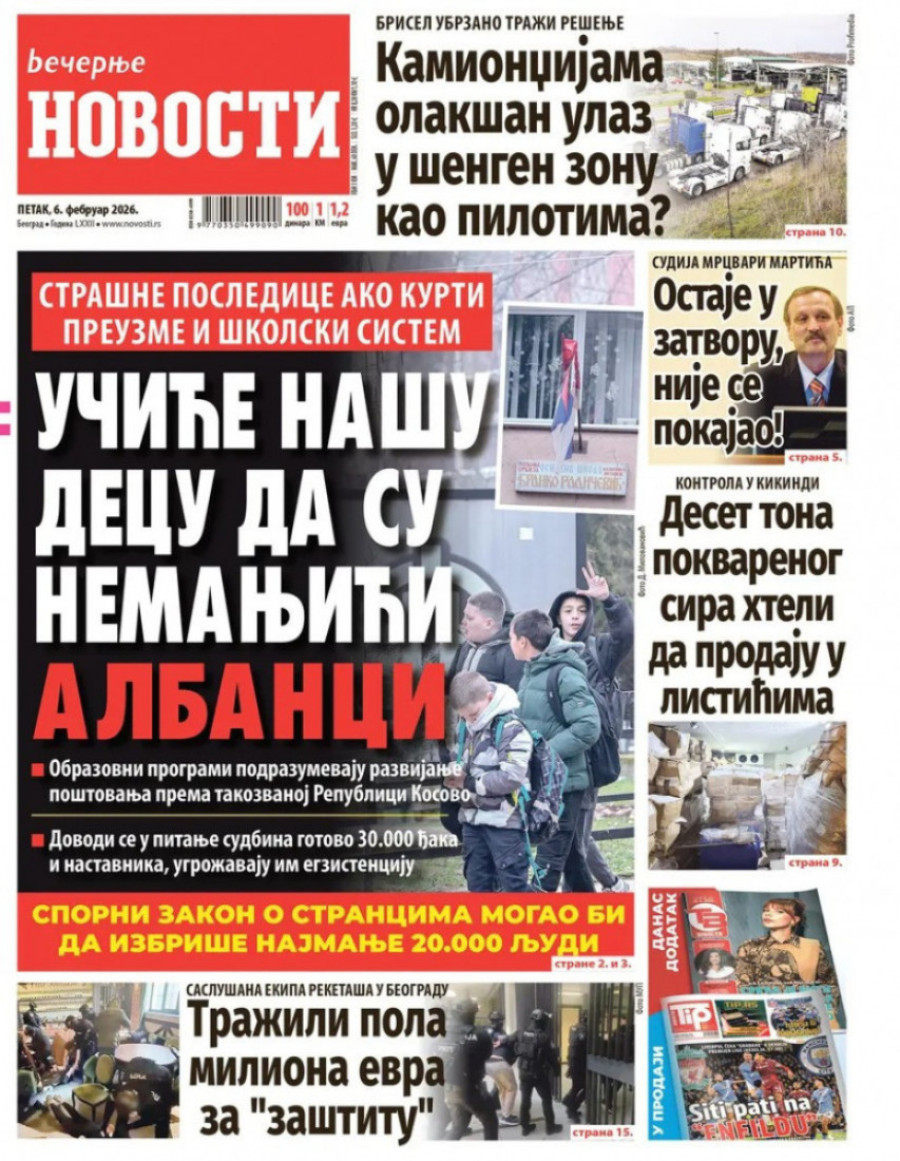 Naslovne strane dnevnih novina: Prelistavanje štampe za 6. februar 2026. godine