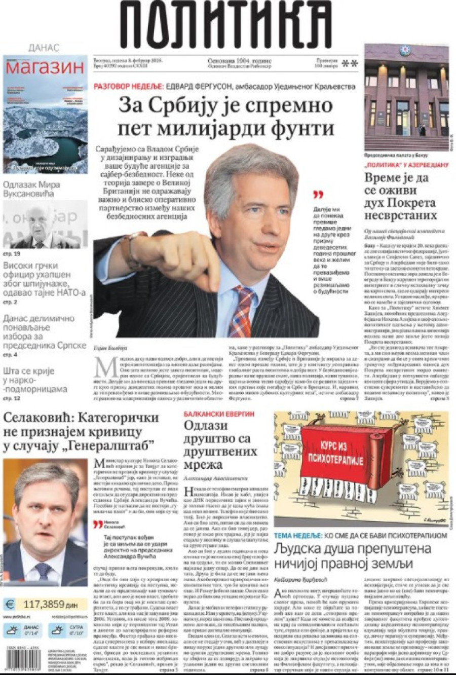 Naslovne strane dnevnih novina: Prelistavanje štampe za 8. februar 2026. godine