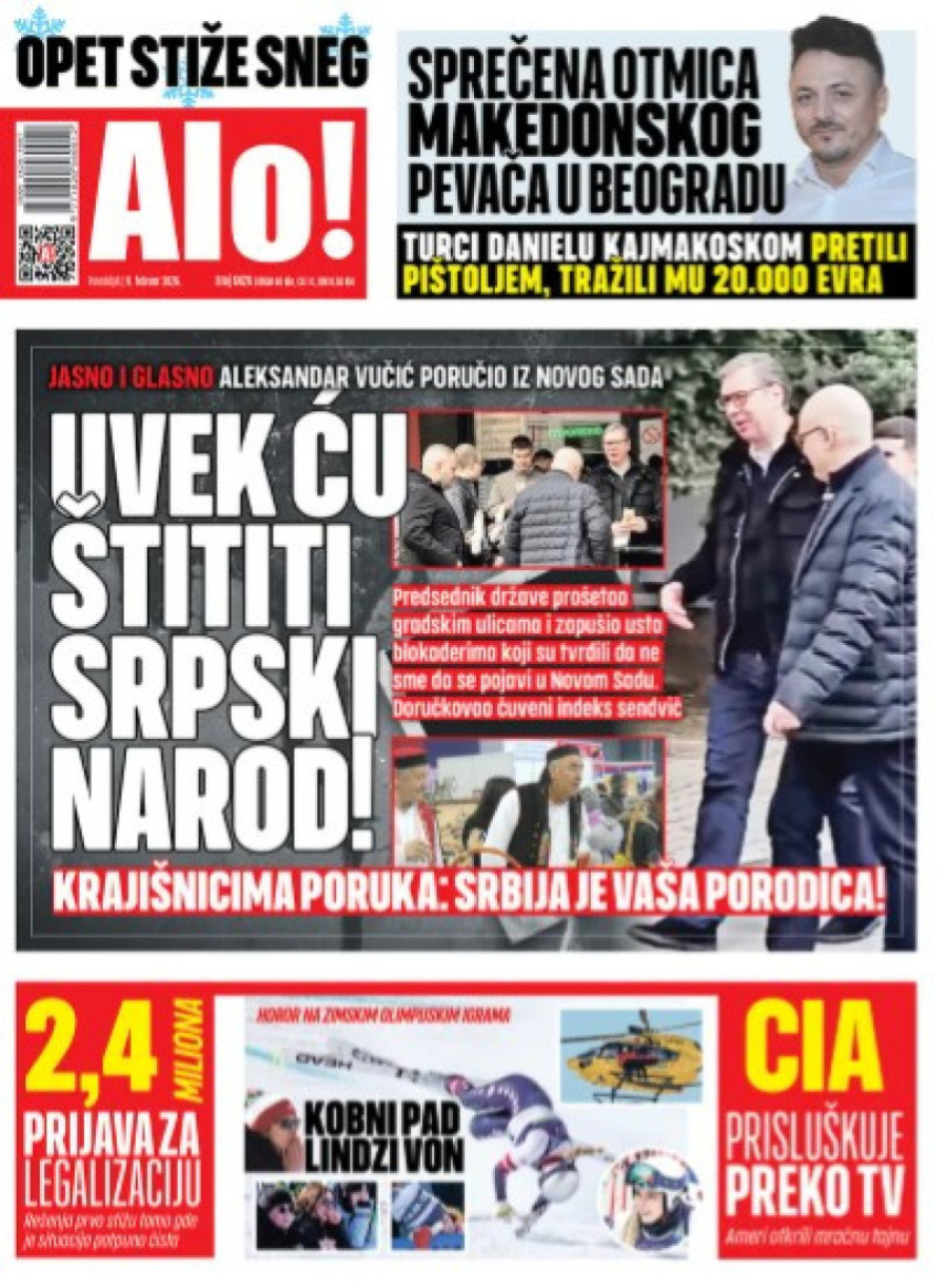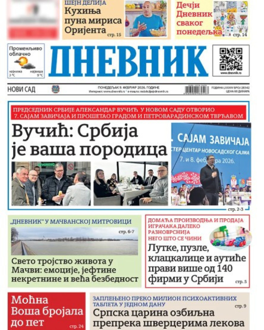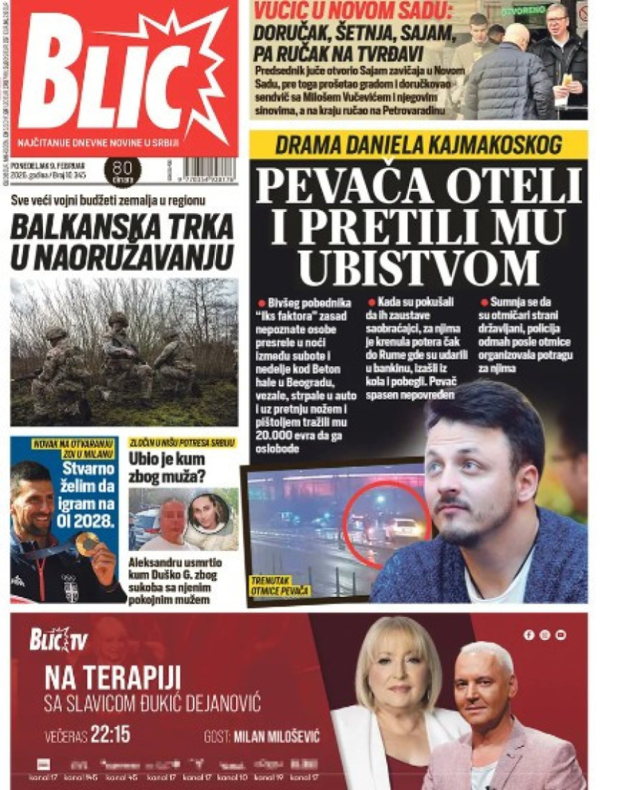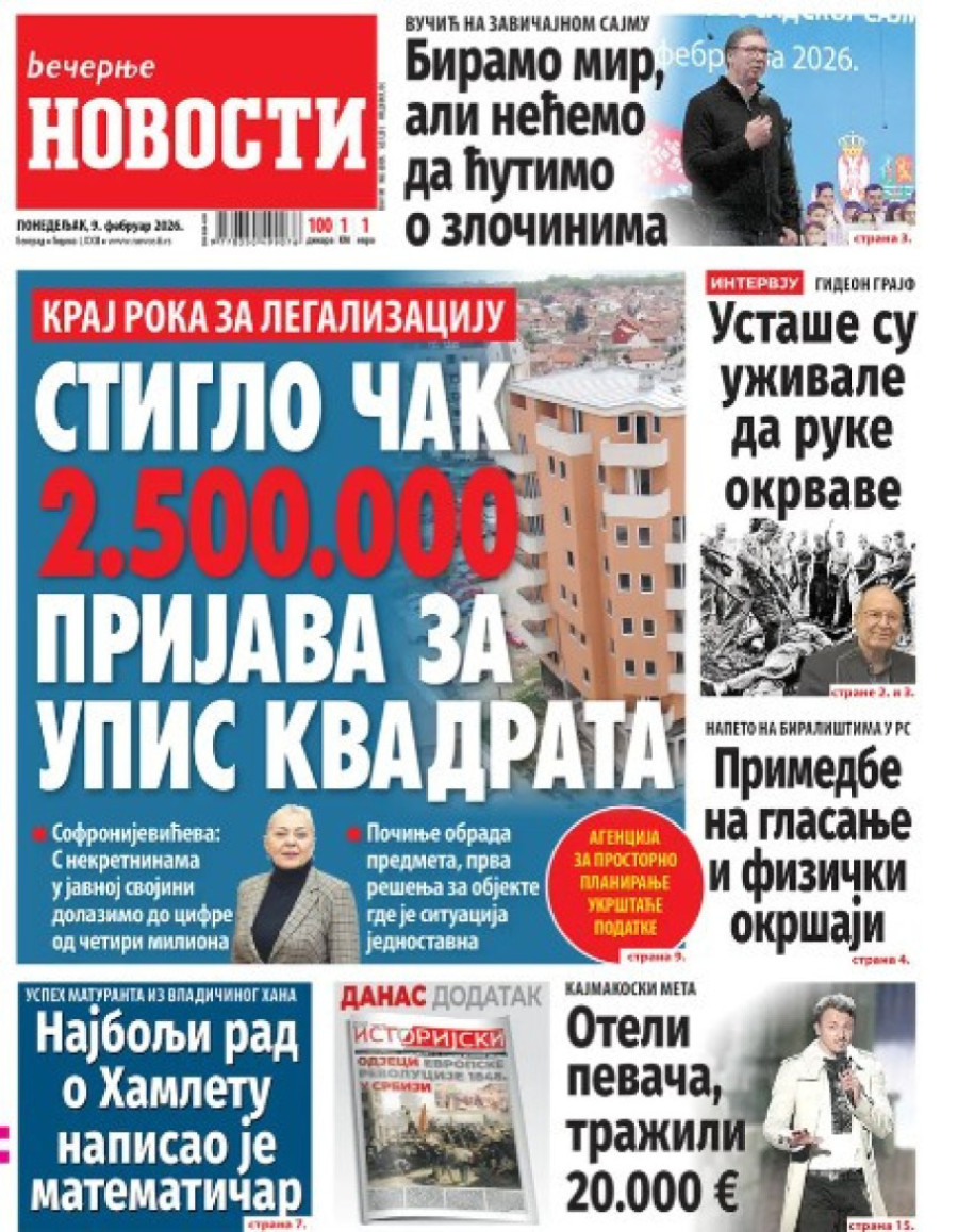 Naslovne strane dnevnih novina: Prelistavanje štampe za 9. februar 2026. godine