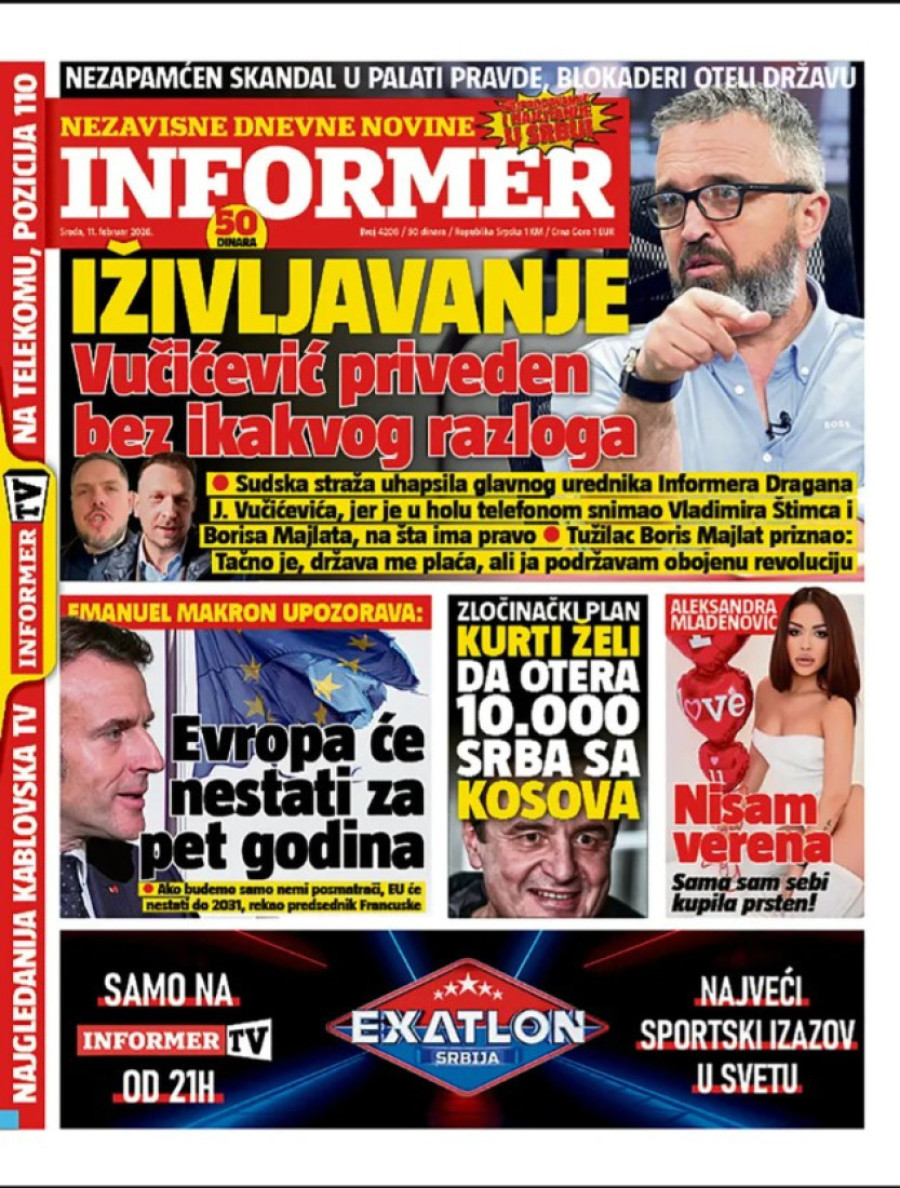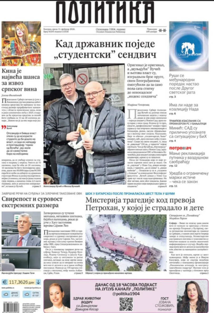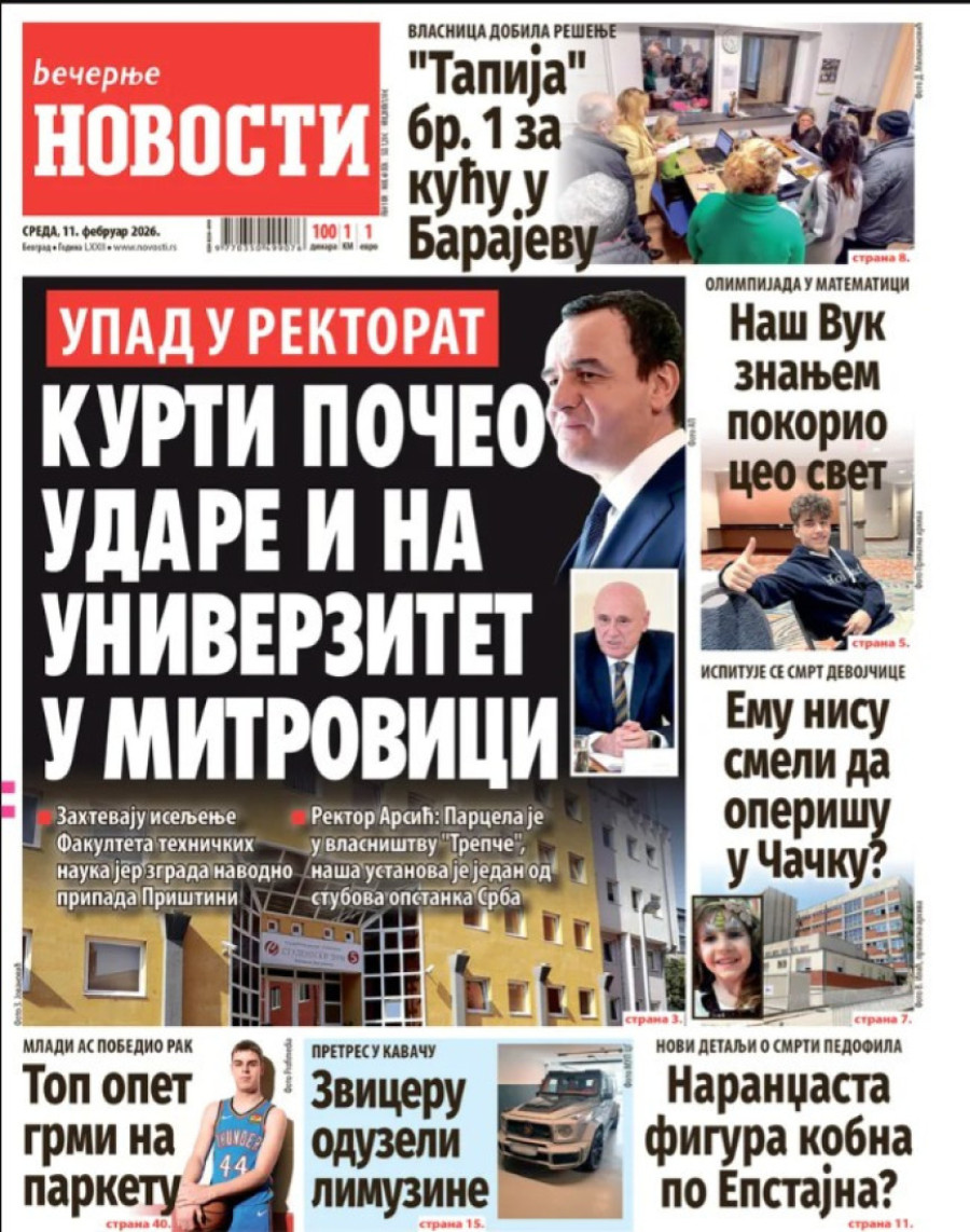 Naslovne strane dnevnih novina: Prelistavanje štampe za 11. februar 2026. godine