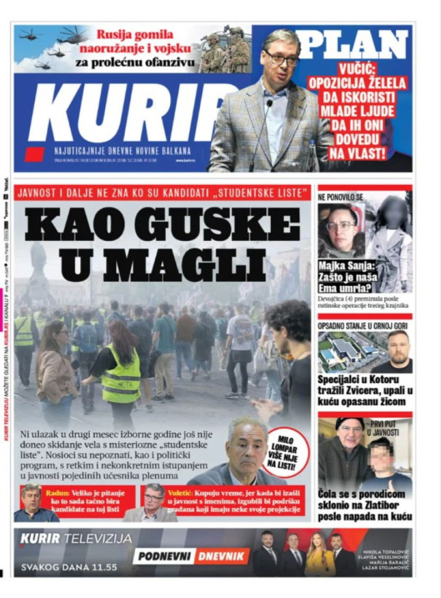 Dnevne novine u Srbiji za ponedeljak, 10. februar 2026. godine na naslovnim stranama najavljuju brojne aktuelne društveno-političke teme.