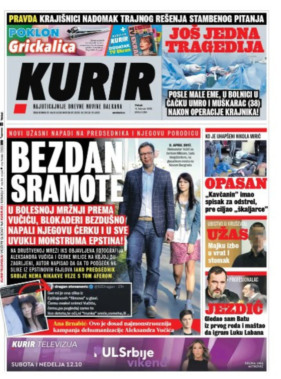 Naslovne strane dnevnih novina: Prelistavanje štampe za 13. februar 2026. godine