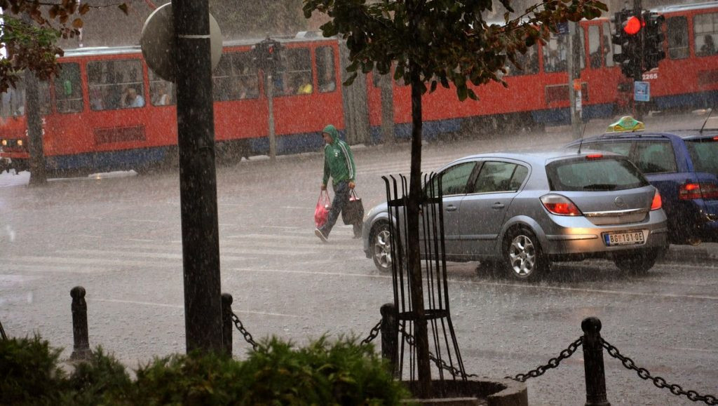 Pre desetak minuta sa neba iznad srpske prestonice začula se snažna grmljavina i na grad se sručila obilna kiša