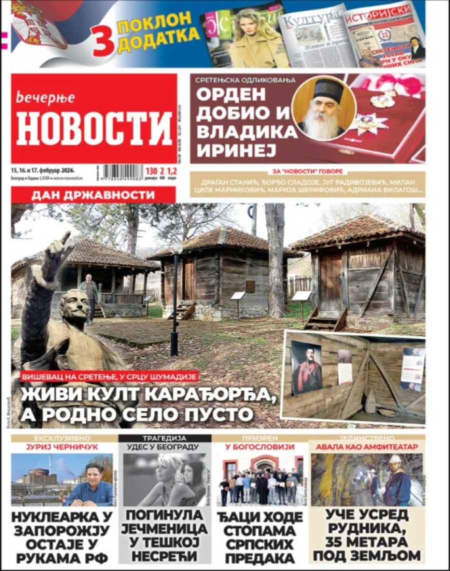 Naslovne strane dnevnih novina: Prelistavanje štampe za 15. februar 2026. godine