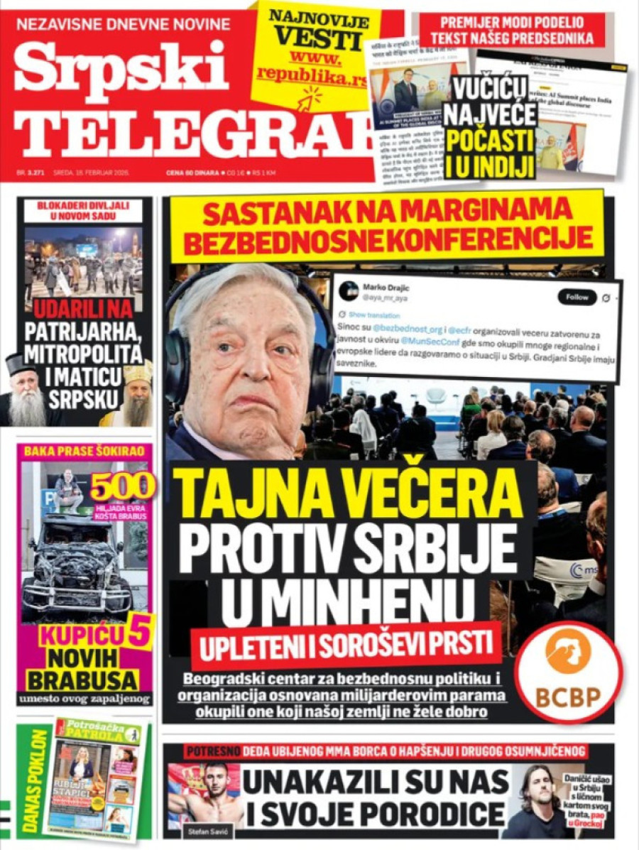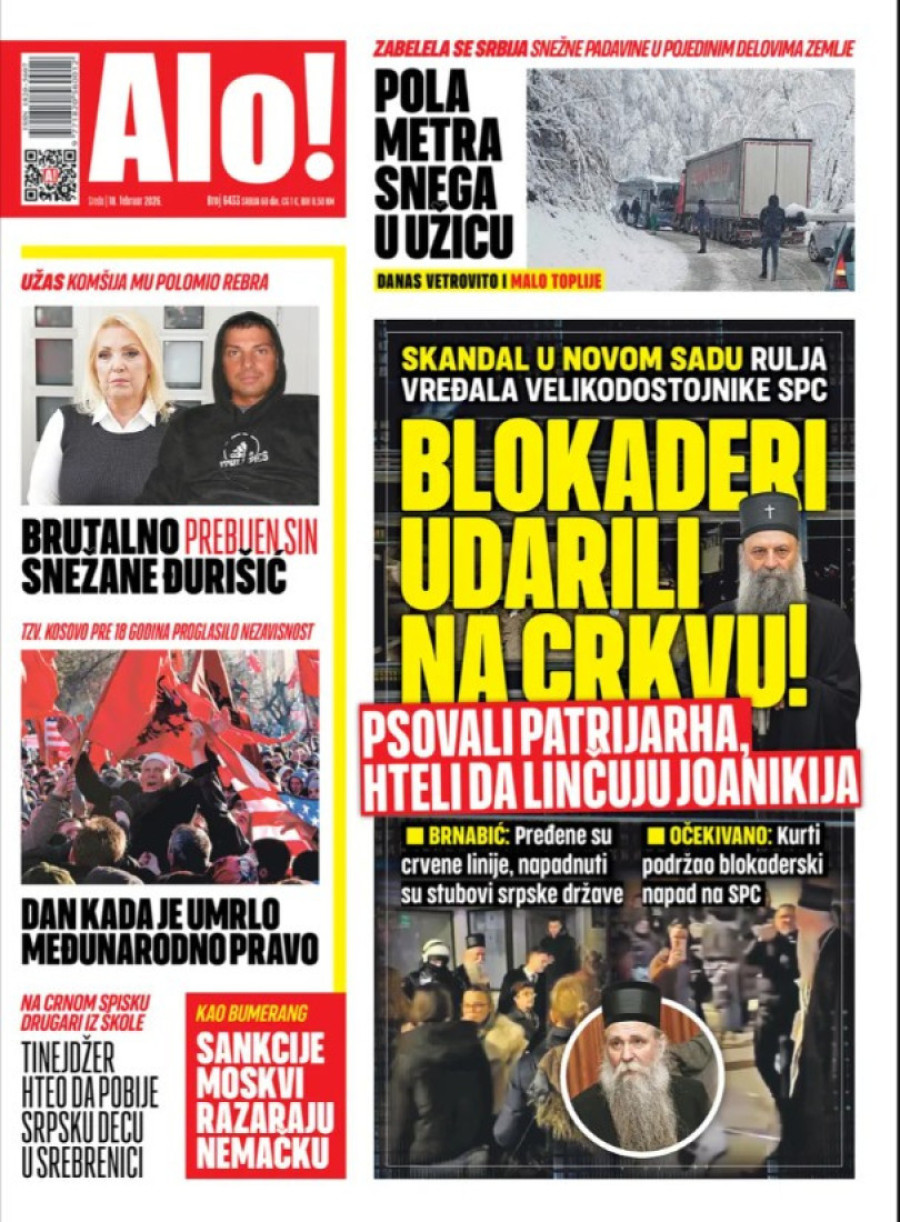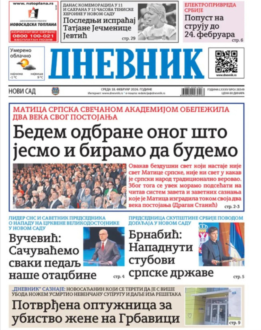 Dnevne novine u Srbiji za sredu 18. februar 2026. godine na naslovnim stranama najavljuju brojne aktuelne društveno-političke teme.
