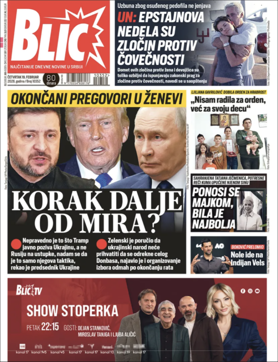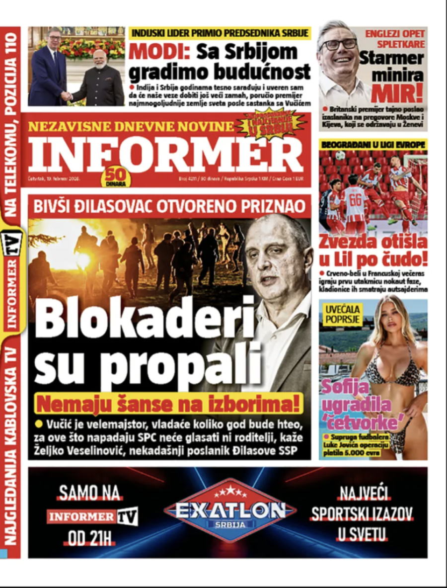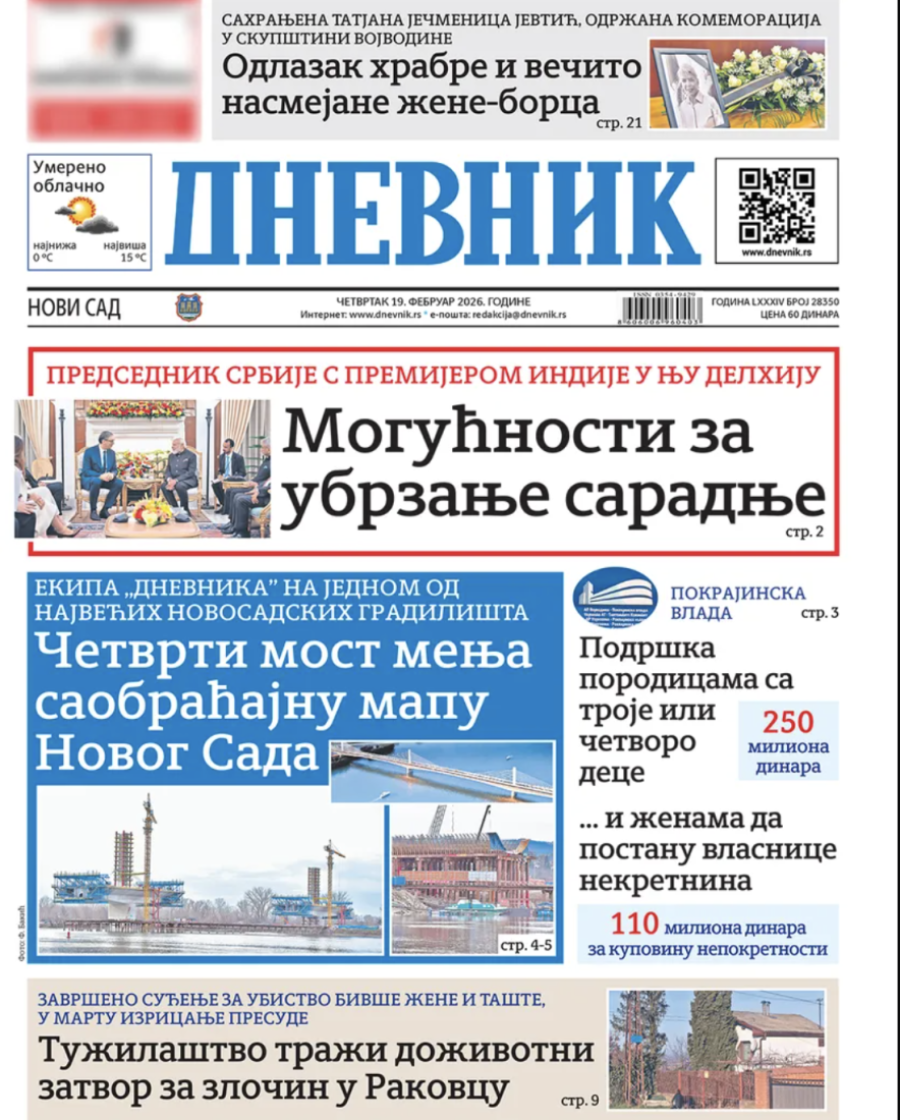 Naslovne strane dnevnih novina: Prelistavanje štampe za 19. februar 2026. godine