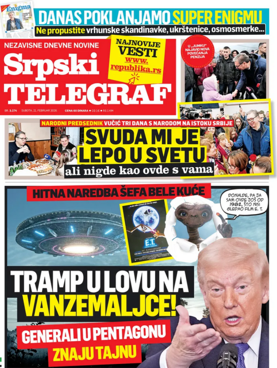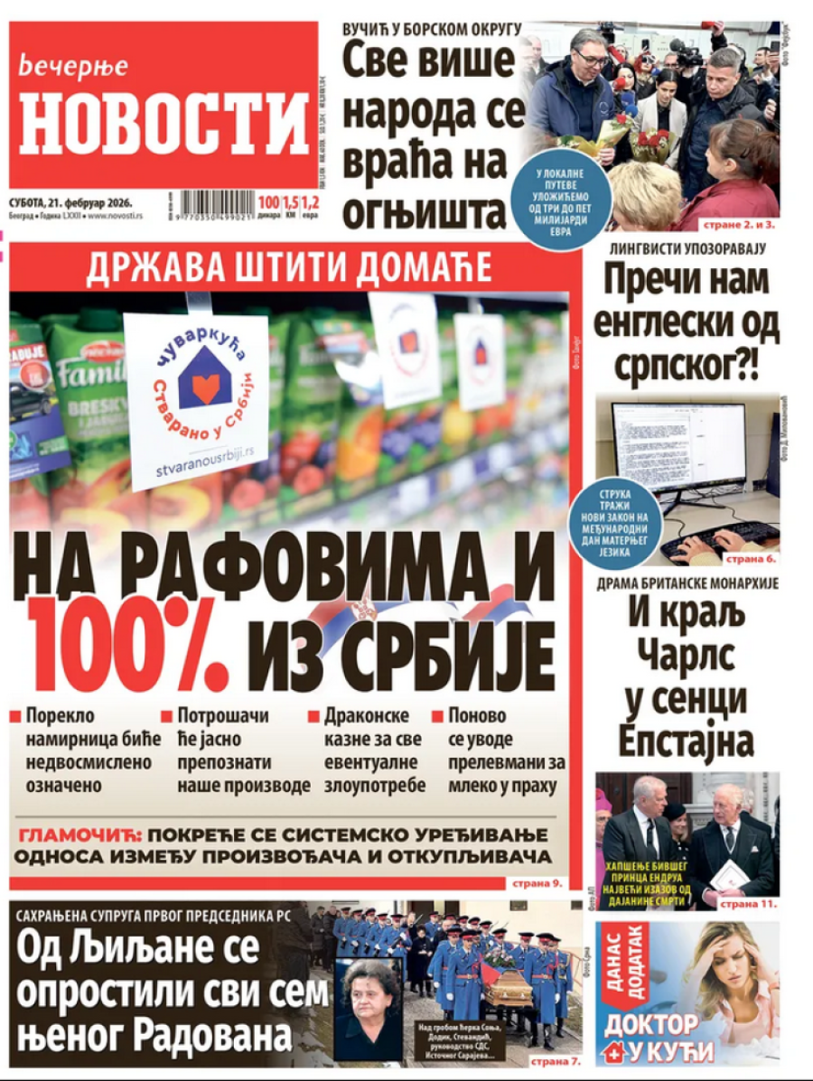 Naslovne strane dnevnih novina: Prelistavanje štampe za 21. februar 2026. godine