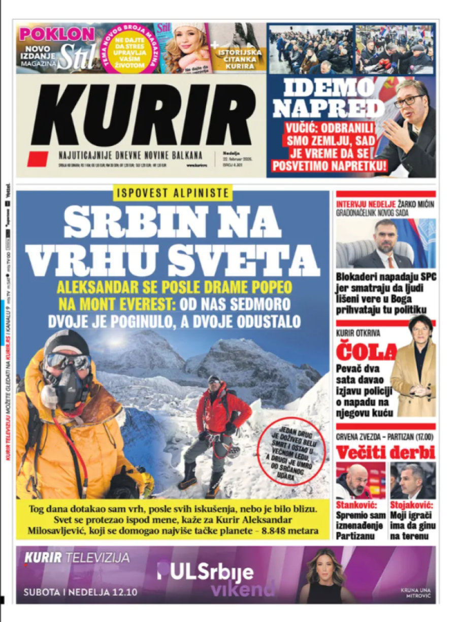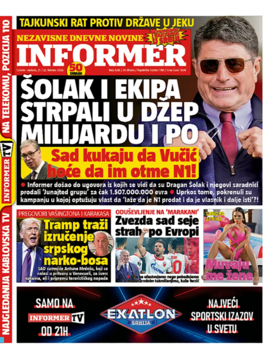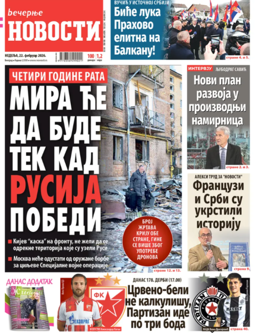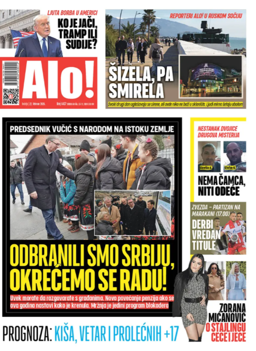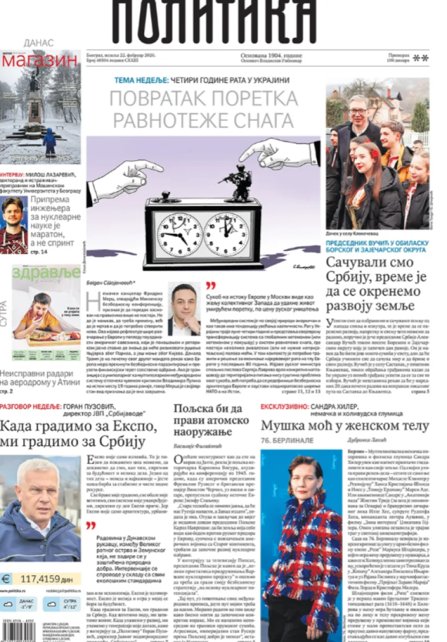 Dnevne novine u Srbiji za petak 22. februar 2026. godine na naslovnim stranama najavljuju brojne aktuelne društveno-političke teme.