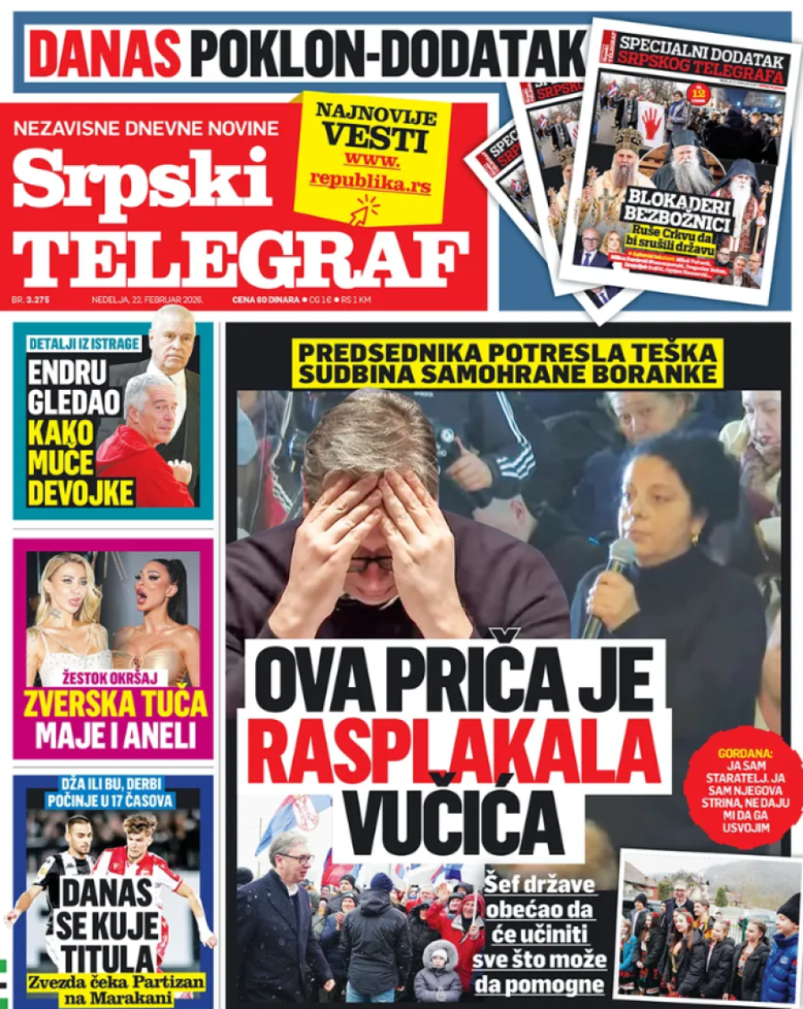 Naslovne strane dnevnih novina: Prelistavanje štampe za 22. februar 2026. godine