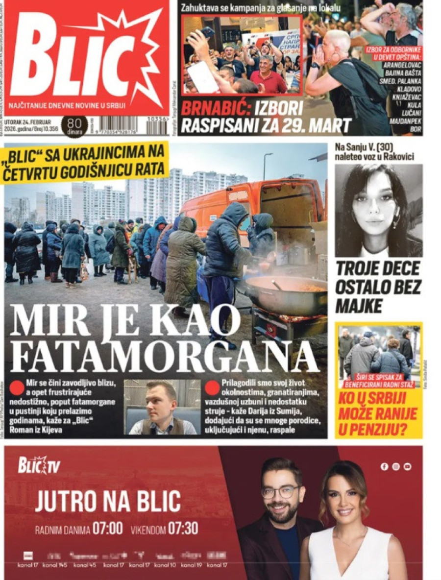 Naslovne strane dnevnih novina: Prelistavanje štampe za 24. februar 2026. godine