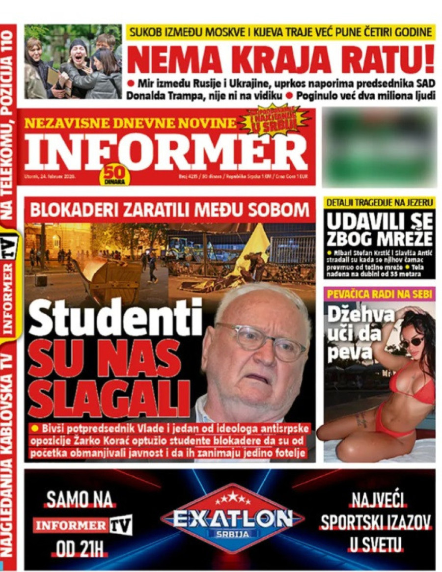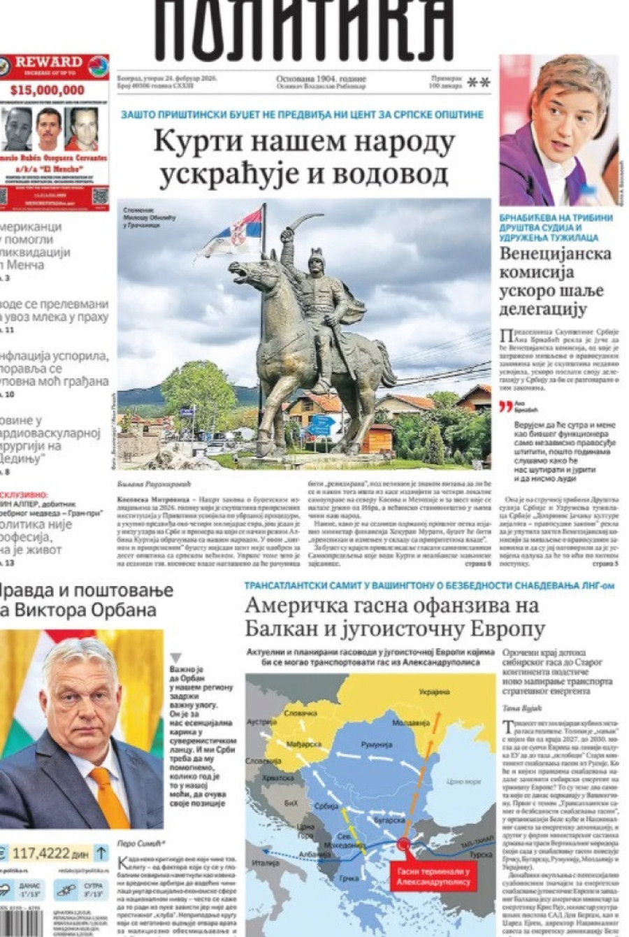 Dnevne novine u Srbiji za 24. februar 2026. godine na naslovnim stranama najavljuju brojne aktuelne društveno-političke teme.