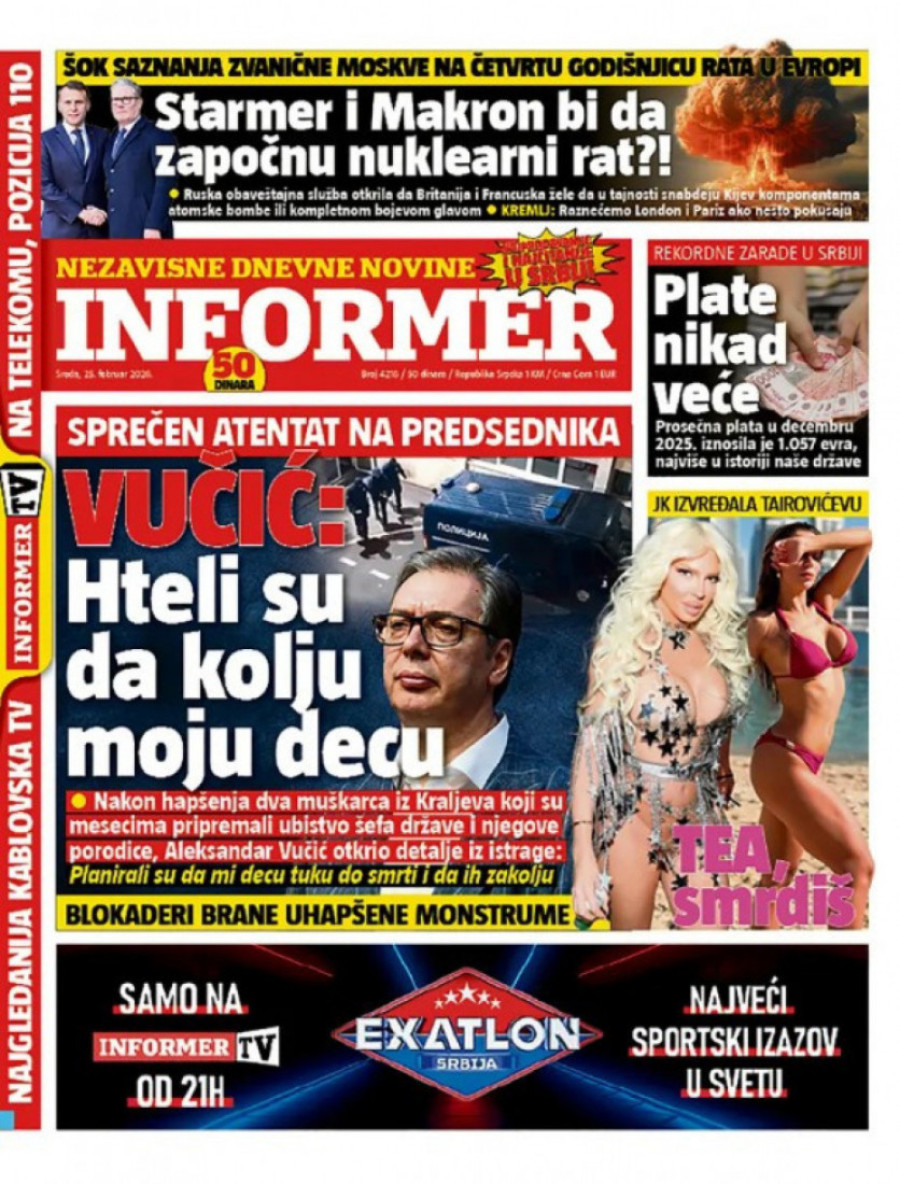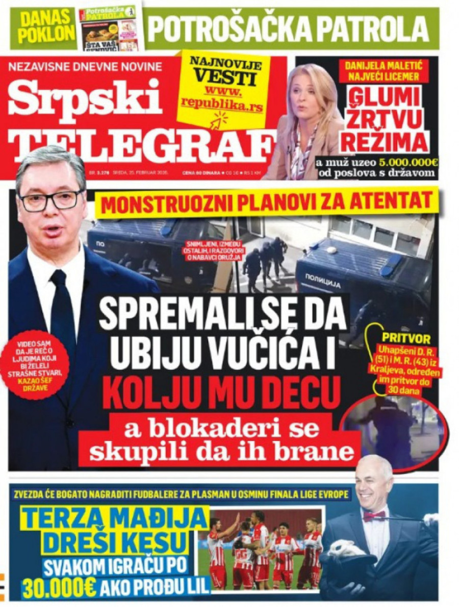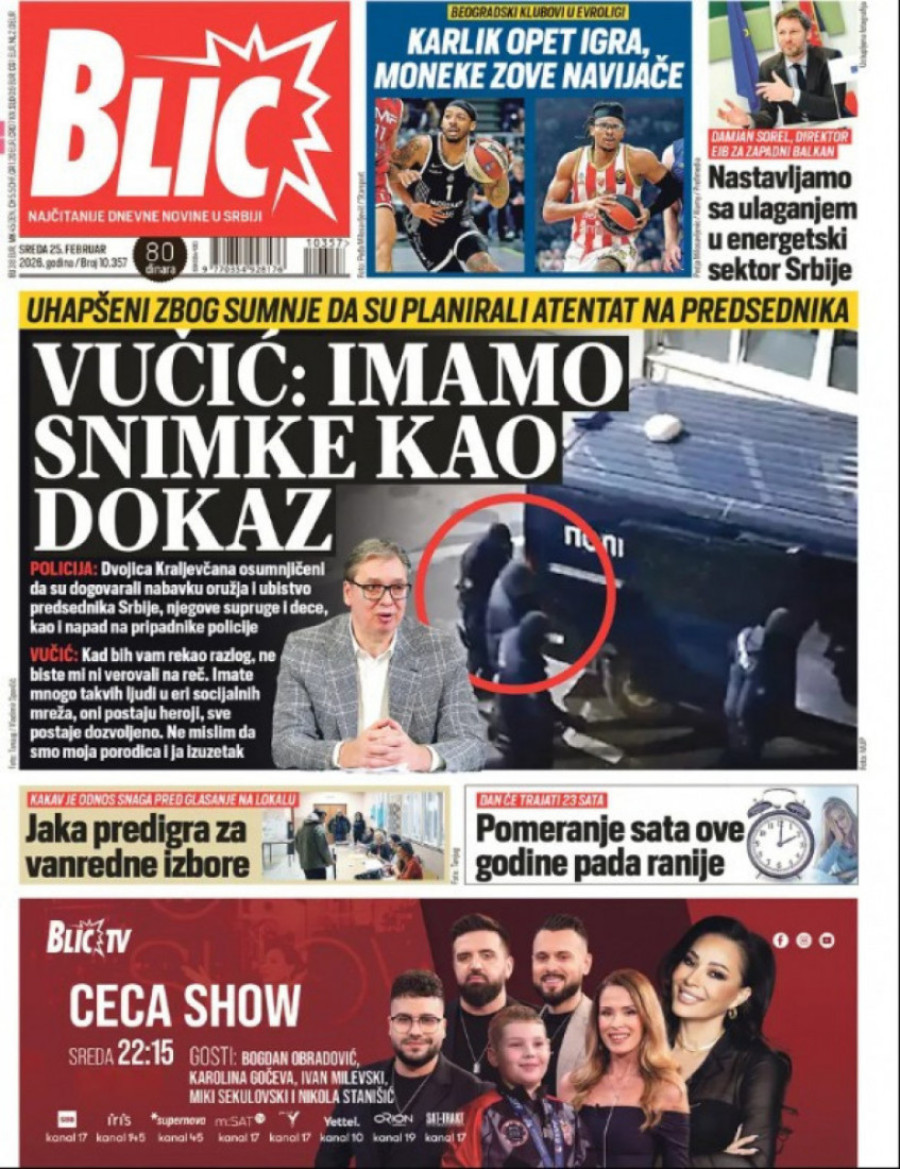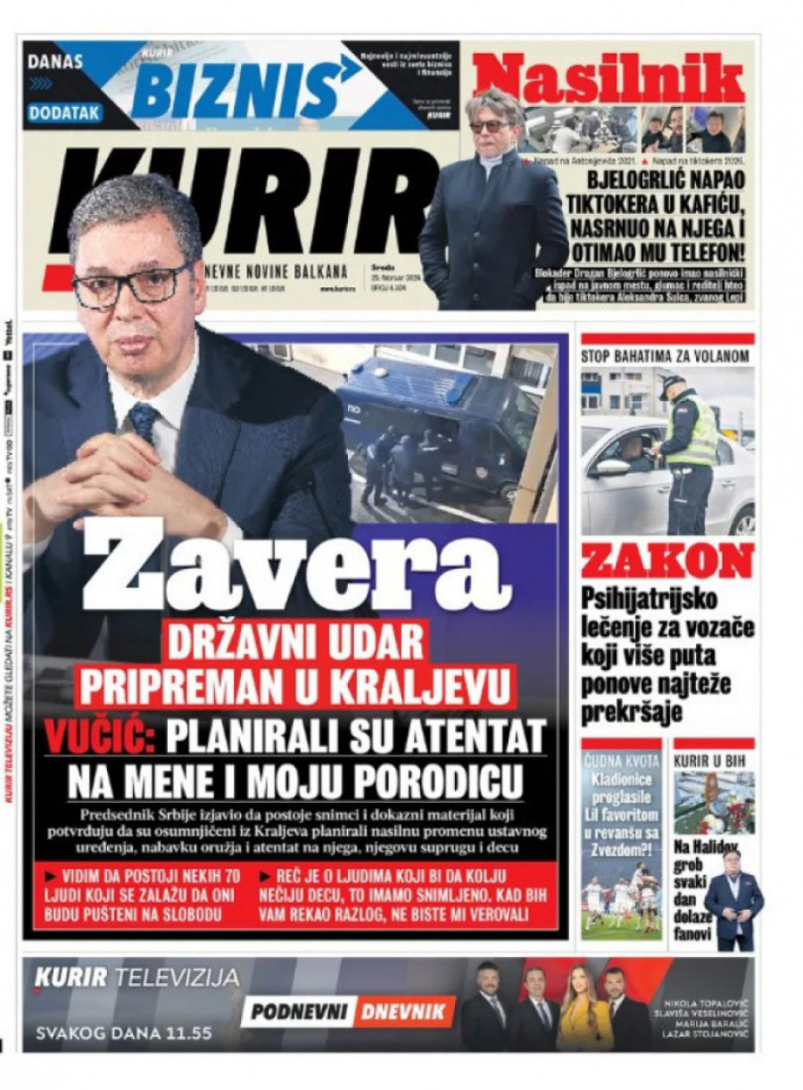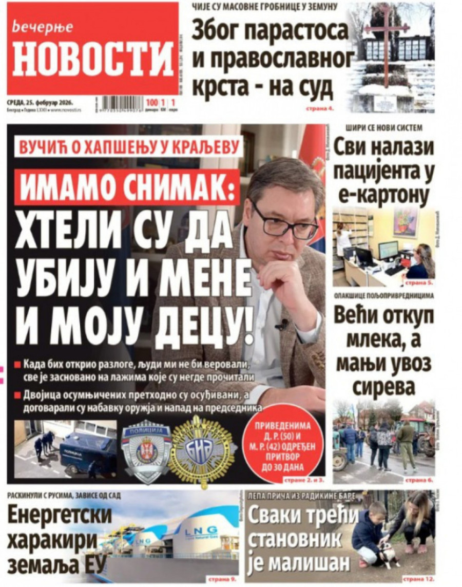 Naslovne strane dnevnih novina: Prelistavanje štampe za 25. februar 2026. godine