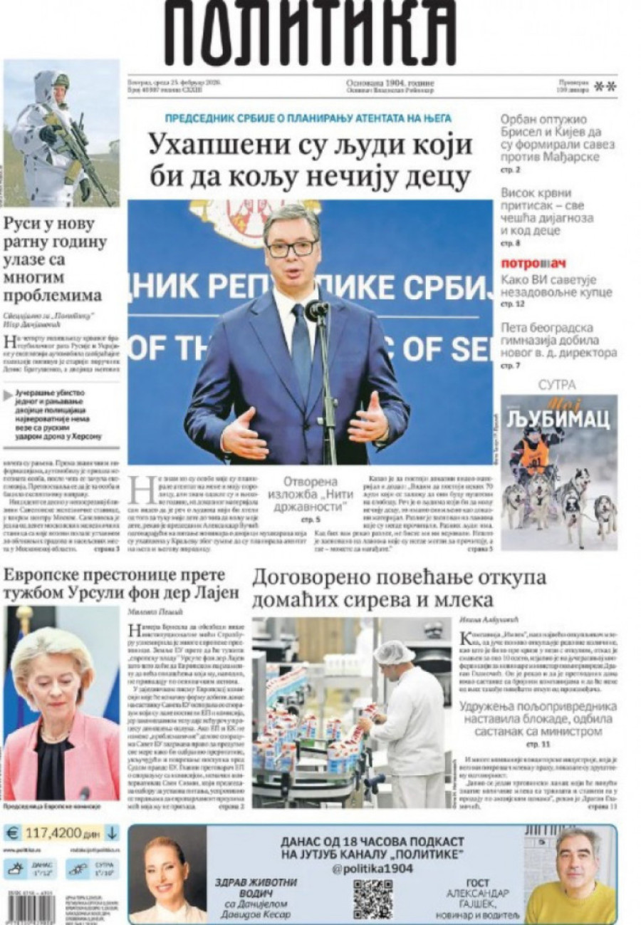 Dnevne novine u Srbiji za 25. februar 2026. godine na naslovnim stranama najavljuju brojne aktuelne društveno-političke teme.