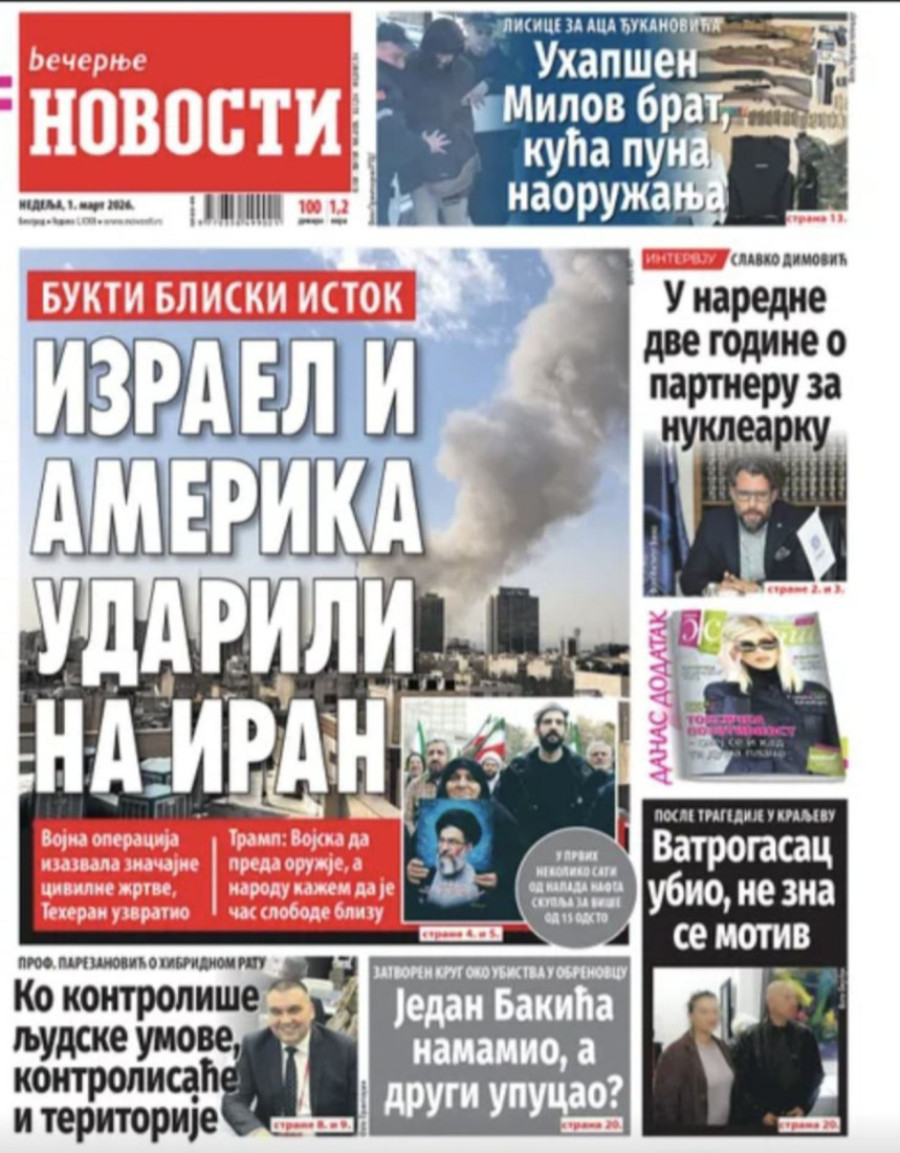 Naslovne strane dnevnih novina: Prelistavanje štampe za 1. mart 2026. godine